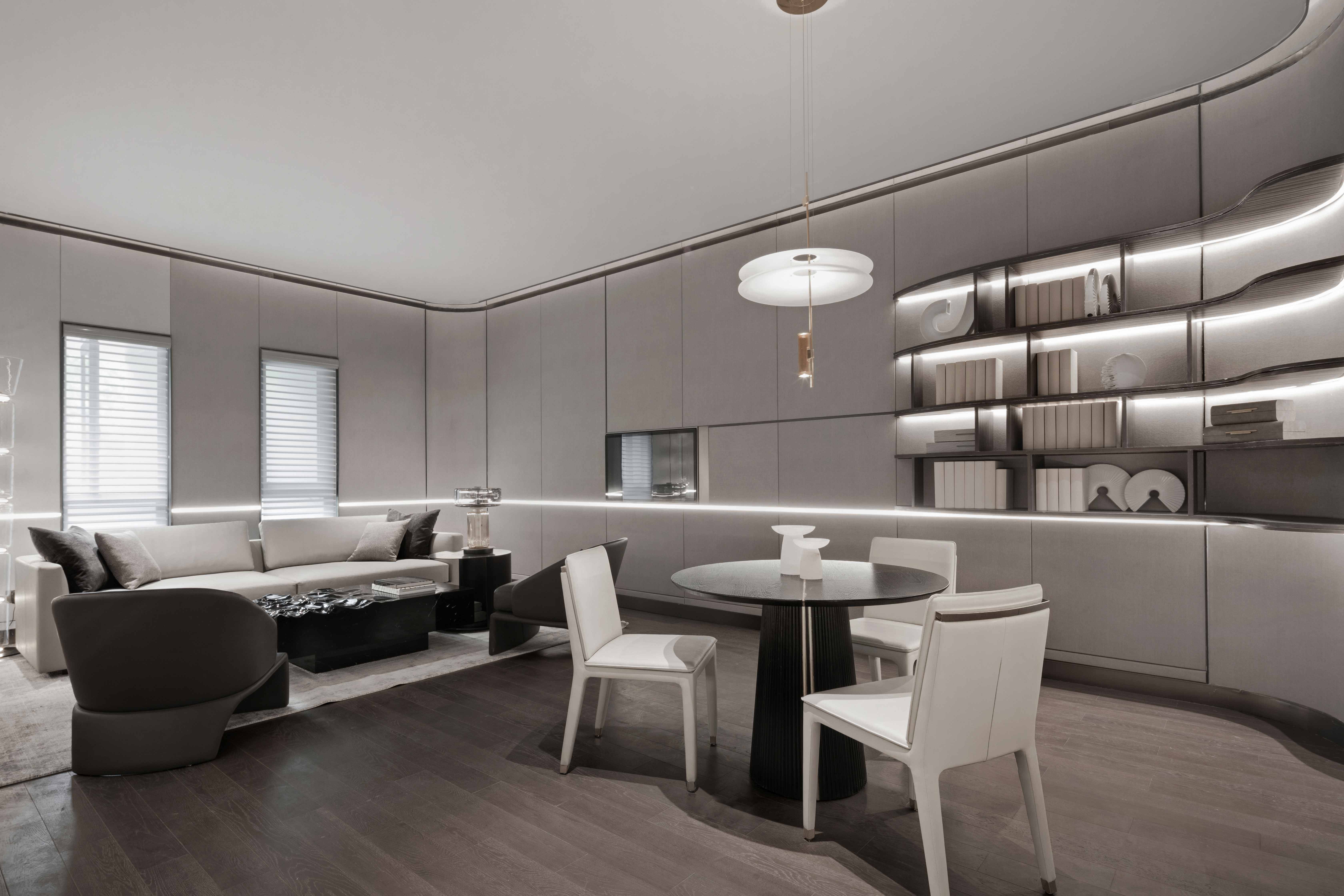 고대의 많은 지식인이 거주했던 이창(Yichang)은 산샤(Three Gorges)로 가는 관문이었고, 그에 따라 다양한 문화가 형성된 지역이다. 이 프로젝트는 이창의 핵심 지역인 차오허링(Qiaohuling)에 위치한 주택개발회사인 센트럴 맨션의 판매 센터다. 이곳의 전체적인 디자인은 흑백 톤을 기반으로 하고 있으며, 지역의 산과 물의 풍경을 보여주는 현대적인 맥락을 가지고 있다. 검은색, 흰색, 회색은 소재의 질감을 잘 나타내며, 기하학적인 이미지와 질감의 디테일은 각 영역에서 독보적인 장면을 만들어낸다. 공간 배치는 견고함과 공허함, 현실과 가상, 그리고 리듬감 있는 동선으로 공간 경험을 강화한다.