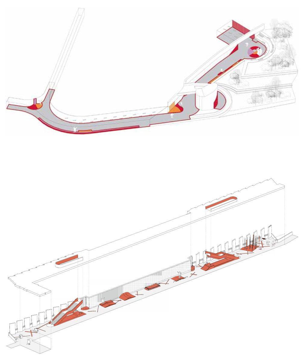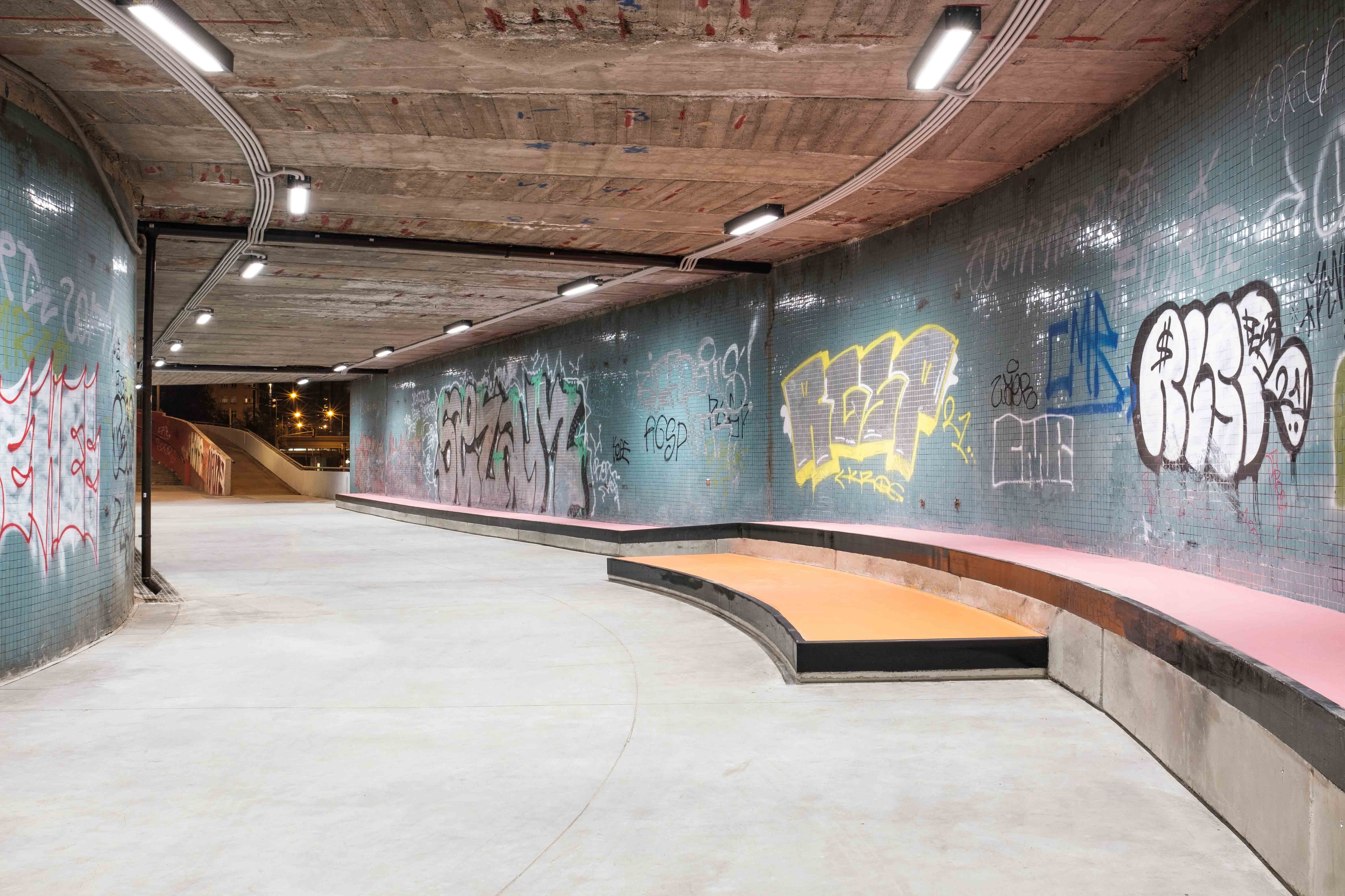 건축가는 보행자와 자전거 이용자, 시설 사용자에게 안전한 공유 공간을 만들기 위해 교차로 하부공간을 전체적으로 개선했다. 내구성과 유지·보수의 용이성을 위해 강철과 콘크리트를 주요 재료로 사용했으며, 전체 영역에 걸쳐 선형 조명을 설치하여 시각적인 안정감을 더했다. 전체 공간은 스트릿볼 구역, 댄스플로어, 폴댄스, 프리스타일 스포츠를 위한 구역, 공공미술 갤러리 등 다양한 여가 및 놀이 활동을 지원하는 공간들로 계획되었으며, 대중교통의 접근성이 좋은 입구에는 팝업 바와 비스트로를 계획하여 방문자를 유도한다.