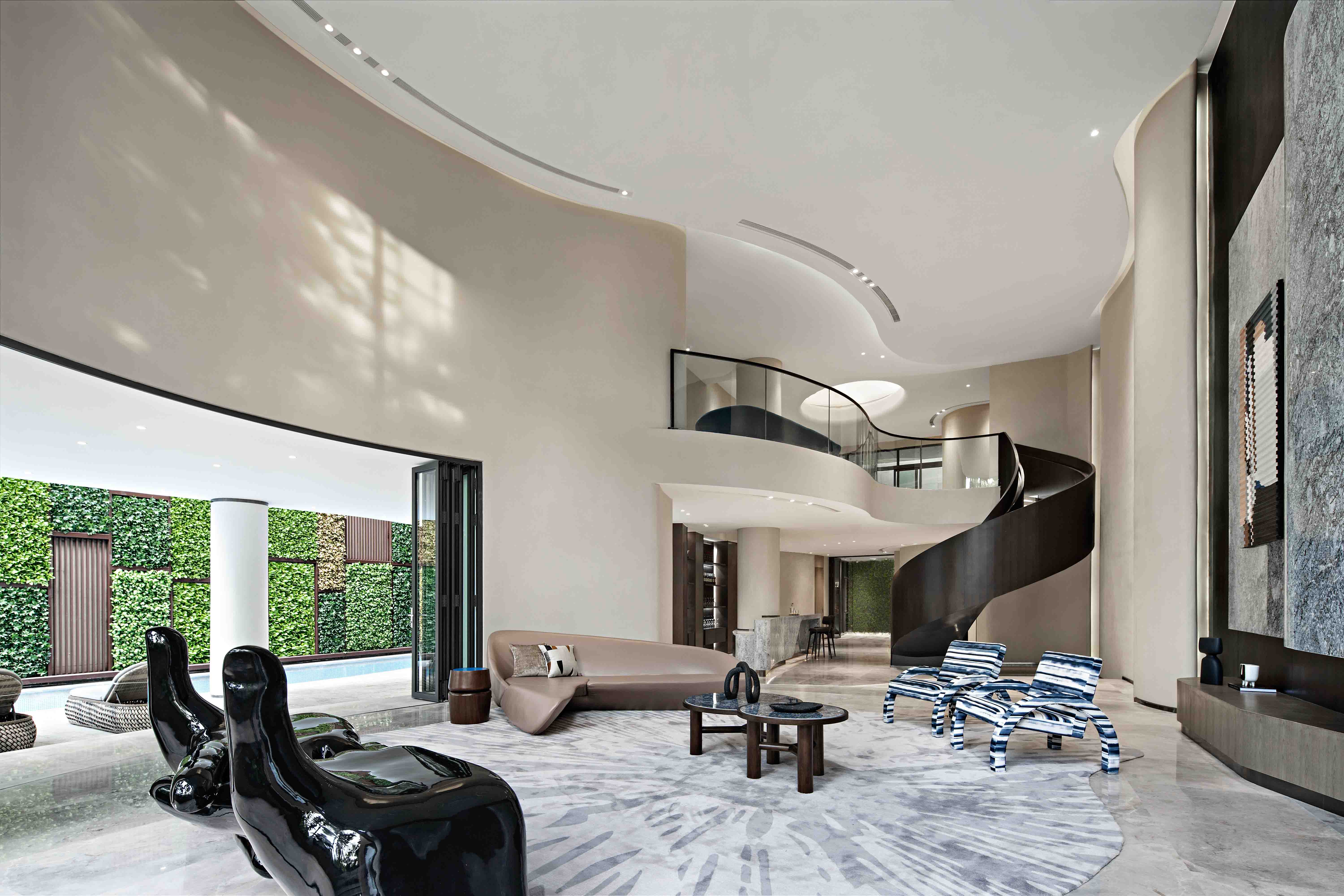 비순 그레이트 랜드 아트 빌라는 대지의 환경과 조건을 고려하여 자연과 공존하고 자유롭게 여가 생활과 예술을 즐길 수 있는 공간이다. 건축가는 복잡한 장식적인 요소를 배제하고, 단순한 표현을 통해 삶의 본질로 돌아갈 수 있는 이상적인 생활 공간을 만들었다. 기능적 배치, 자연환경과 결합한 동선, 자연스럽고 소박한 소재의 사용은 자연에 대한 시각적인 경험을 제공한다. 야외 수영장, 홈 시네마, 체육 시설, 와인 저장실 등의 레저 시설은 역동적인 느낌을 주며, 조각적인 나선 계단을 따라 이어지는 전망은 사생활을 보장하면서 예술적인 감성을 불어넣는다.