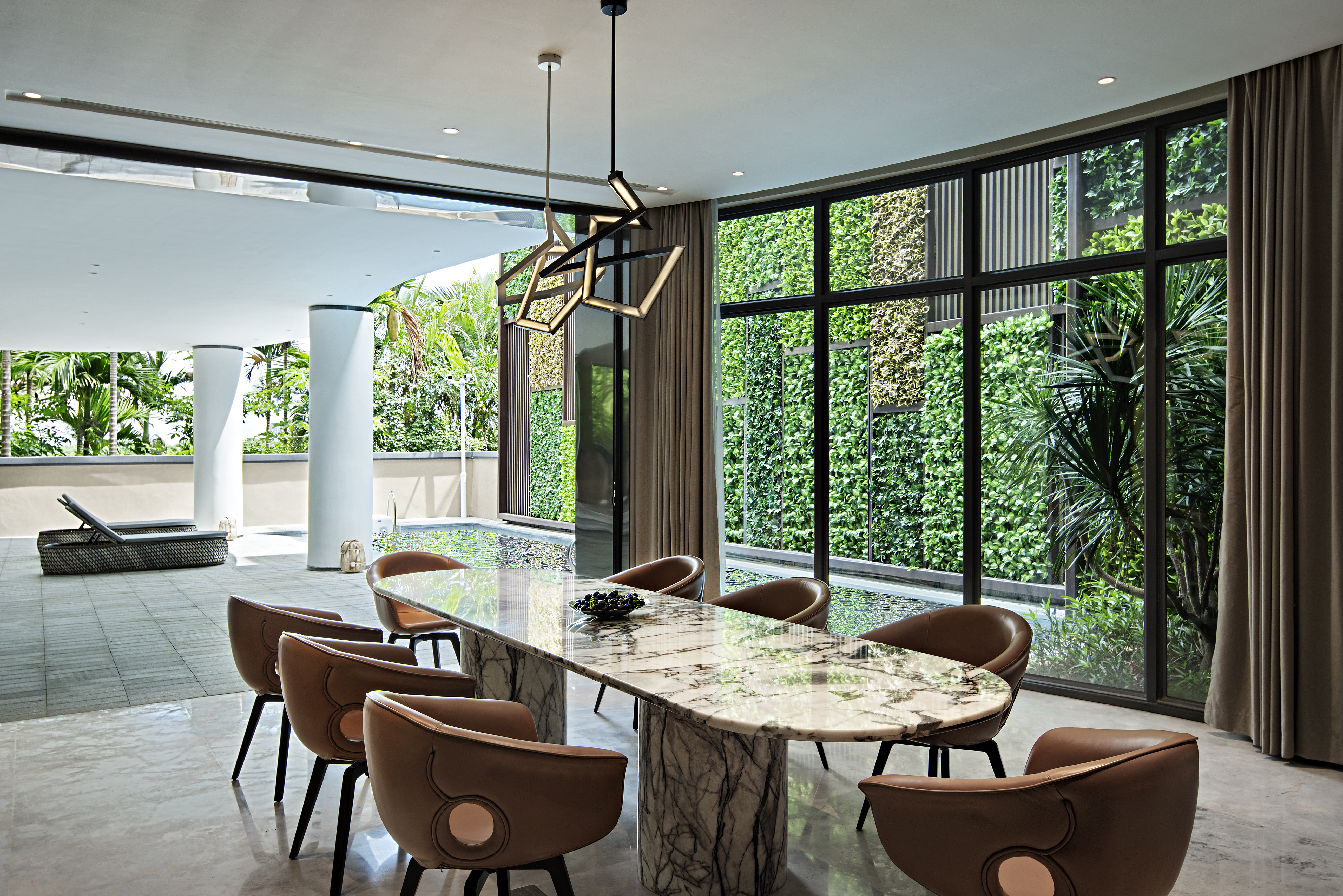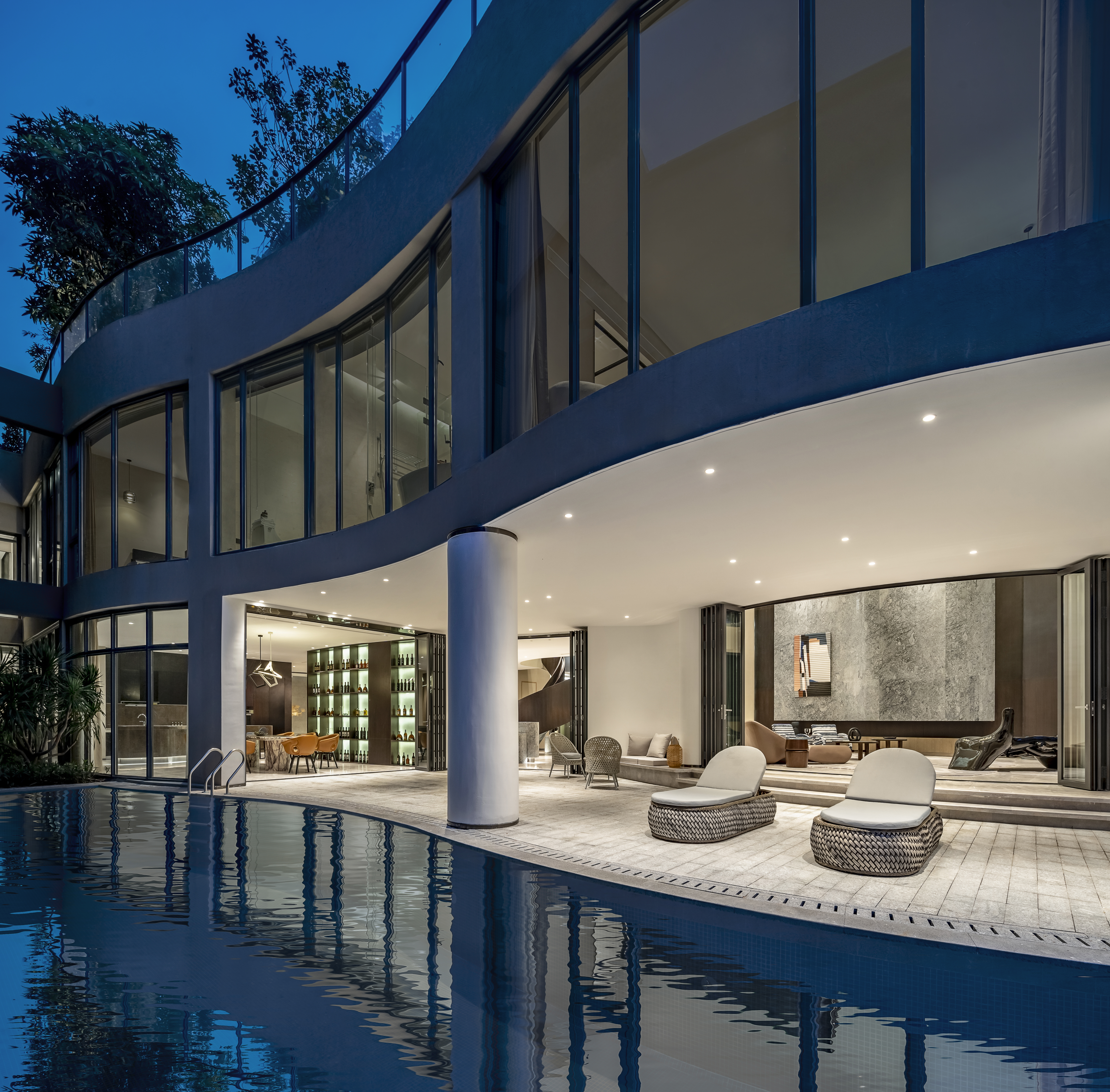 비순 그레이트 랜드 아트 빌라는 대지의 환경과 조건을 고려하여 자연과 공존하고 자유롭게 여가 생활과 예술을 즐길 수 있는 공간이다. 건축가는 복잡한 장식적인 요소를 배제하고, 단순한 표현을 통해 삶의 본질로 돌아갈 수 있는 이상적인 생활 공간을 만들었다. 기능적 배치, 자연환경과 결합한 동선, 자연스럽고 소박한 소재의 사용은 자연에 대한 시각적인 경험을 제공한다. 야외 수영장, 홈 시네마, 체육 시설, 와인 저장실 등의 레저 시설은 역동적인 느낌을 주며, 조각적인 나선 계단을 따라 이어지는 전망은 사생활을 보장하면서 예술적인 감성을 불어넣는다.