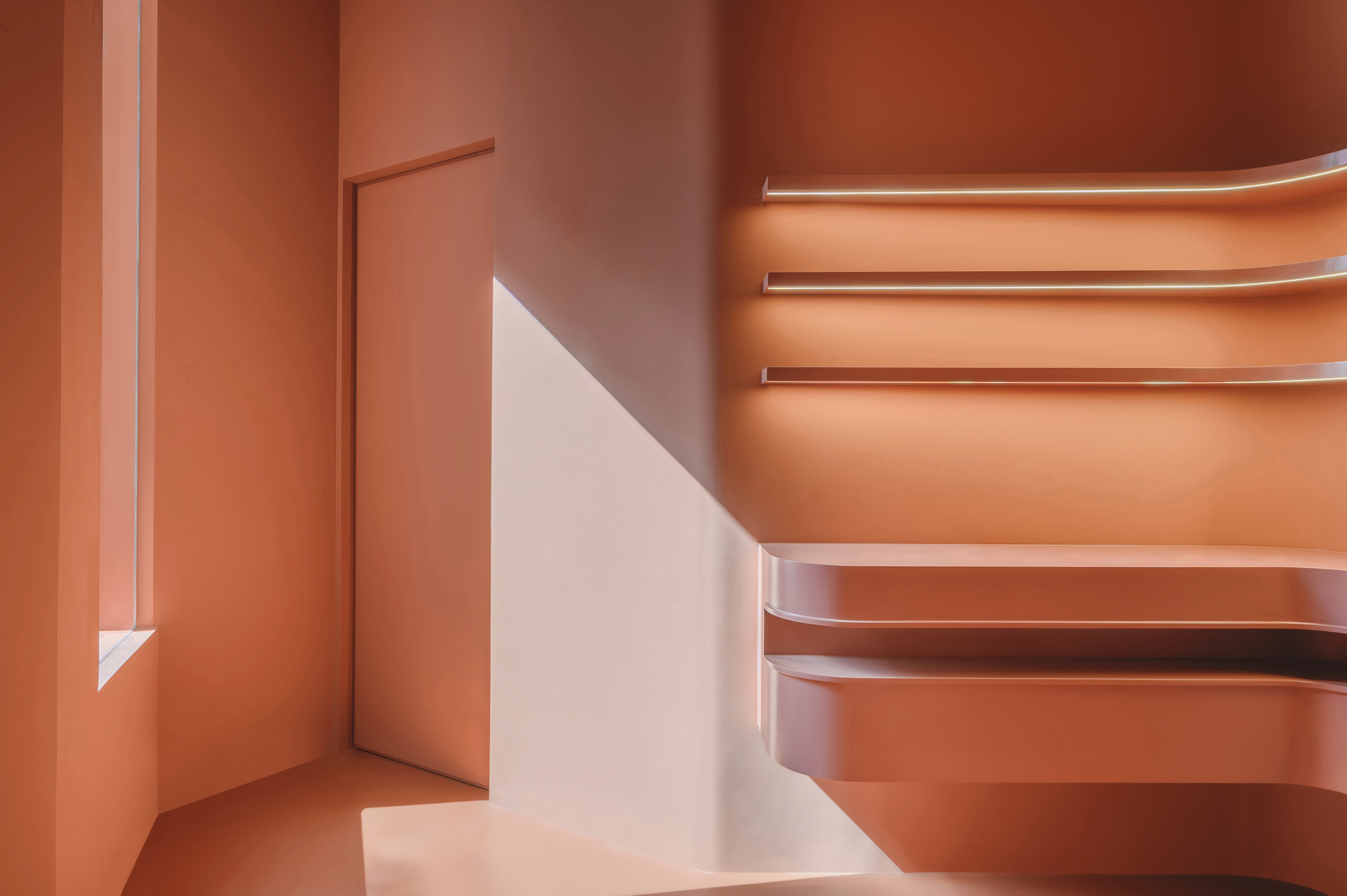 입지는 자연광이 적기 때문에 실내의 조도를 높이는 것이 숙제였다. 건축가는 가능한 다양한 각도에서 빛의 유입을 유도하기 위해 독특한 공간감을 표현했다. 파사드와 지붕, 천장, 벽, 지면의 각진 모서리는 외부의 빛을 유도하면서 다채로운 3차원적 원근감을 준다. 실내의 와이드 스크린 라이트 스트립은 경사를 통해 시각적으로 공간을 구분하고 레이어드 방식을 통해 구조적인 풍요로움을 느끼게 한다. 독특한 질감의 재활용 테라초를 활용하여 특별히 제작한 리셉션 데스크는 공간의 색감을 편안하고 쾌적하게 만들어 고급스러운 환경을 조성한다.