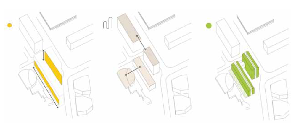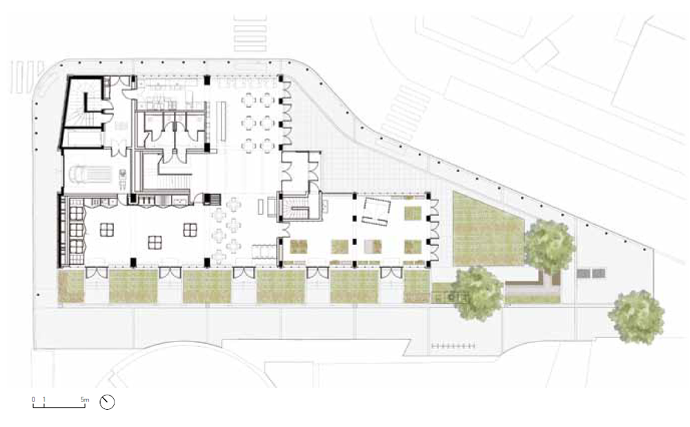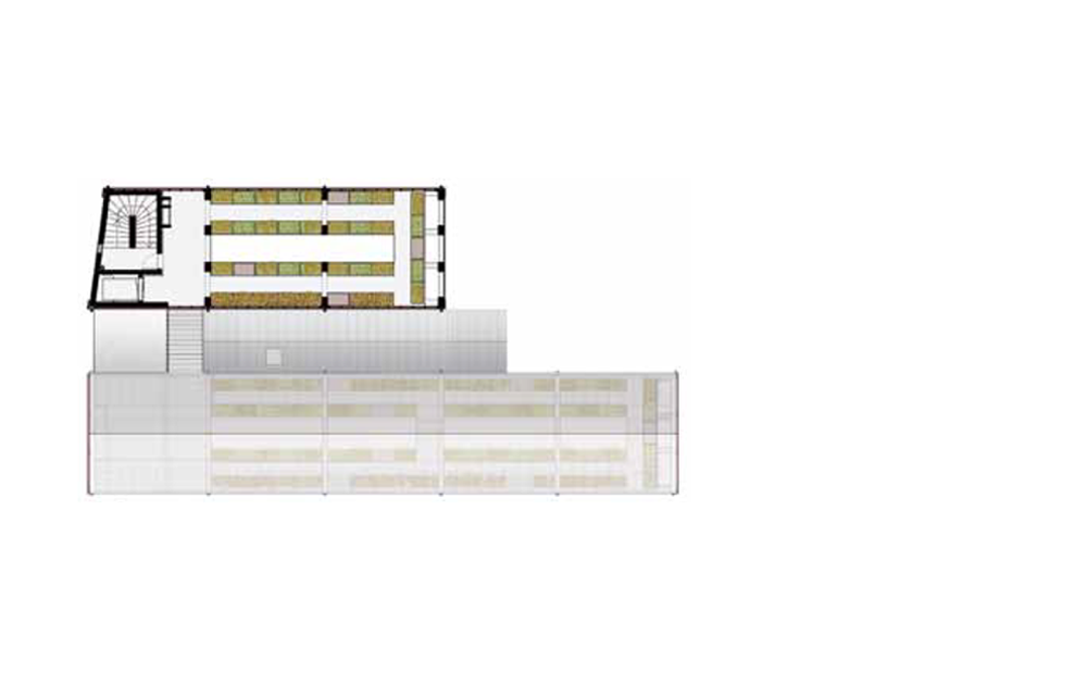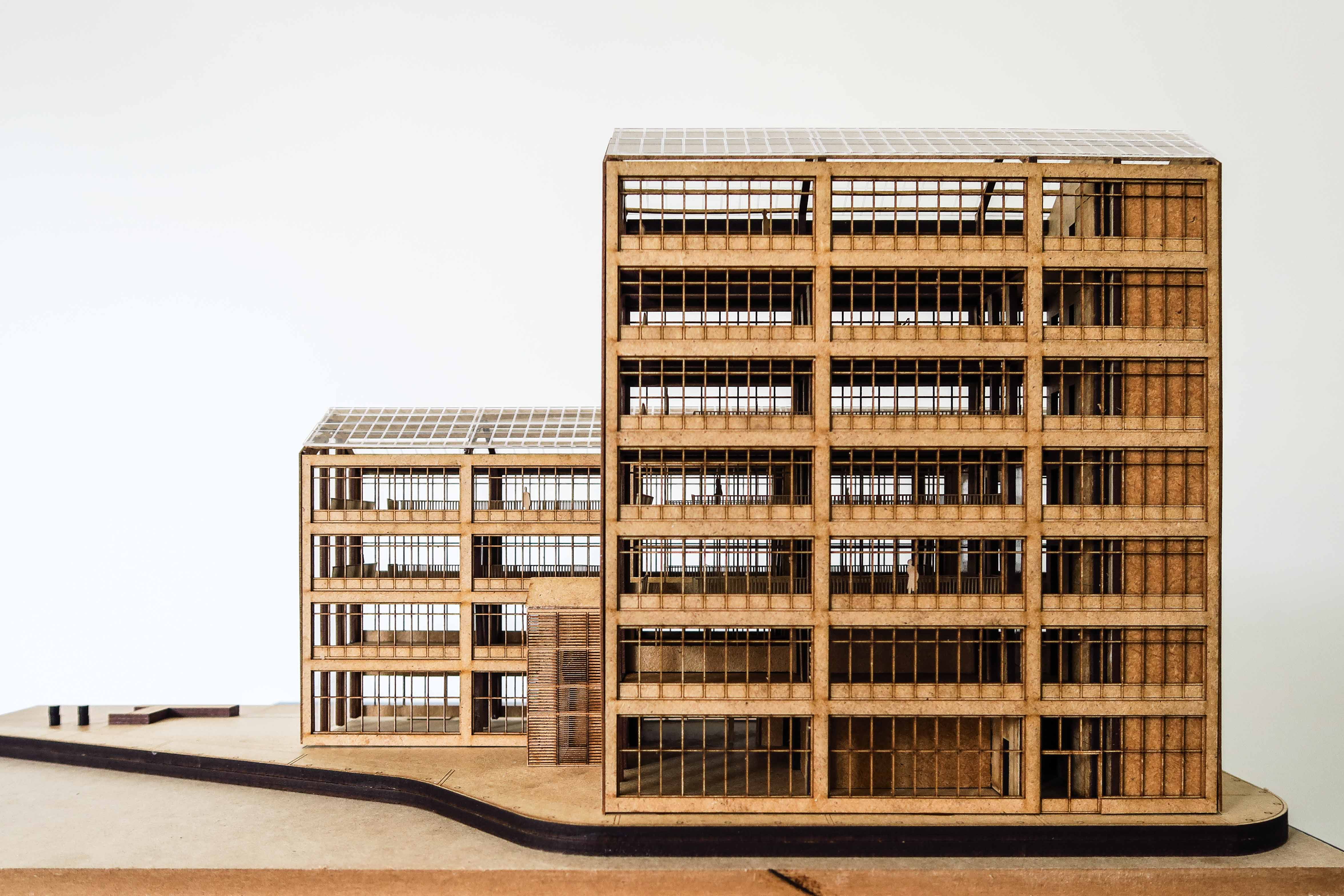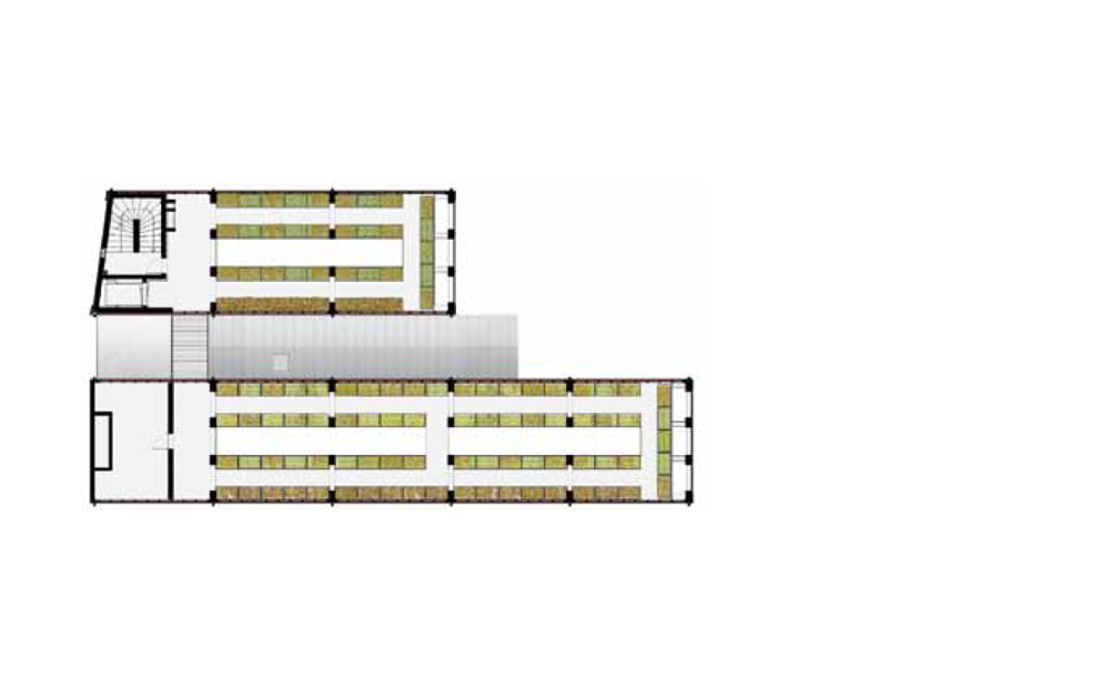 전체적인 디자인은 인접해있는 건물들과의 관계를 고려하였으며, 농업과 산업의 이미지를 결합하여 주요 재료와 텍스처를 결정했다. 수직 도시 농장의 1층은 교육용 정원과 식당, 작업장으로 계획됐다. 2층 이상으로는 작물 생산을 위한 재배 공간으로 계획됐다. 각각 원예용 온실과 산업 용도의 건물로 구분된 두 채의 건물을 잇는 교차로는 합리적이고 유연한 부피감을 주어 건물 내부에서의 동선을 자연스럽게 형성한다. 지붕과 창은 자연광을 활용하기 유리하게 설계되었으며, 짚 베일과 목재 섬유 단열재와 같은 유기 건축 자재를 사용하여 건물의 지속가능성을 높였다.
