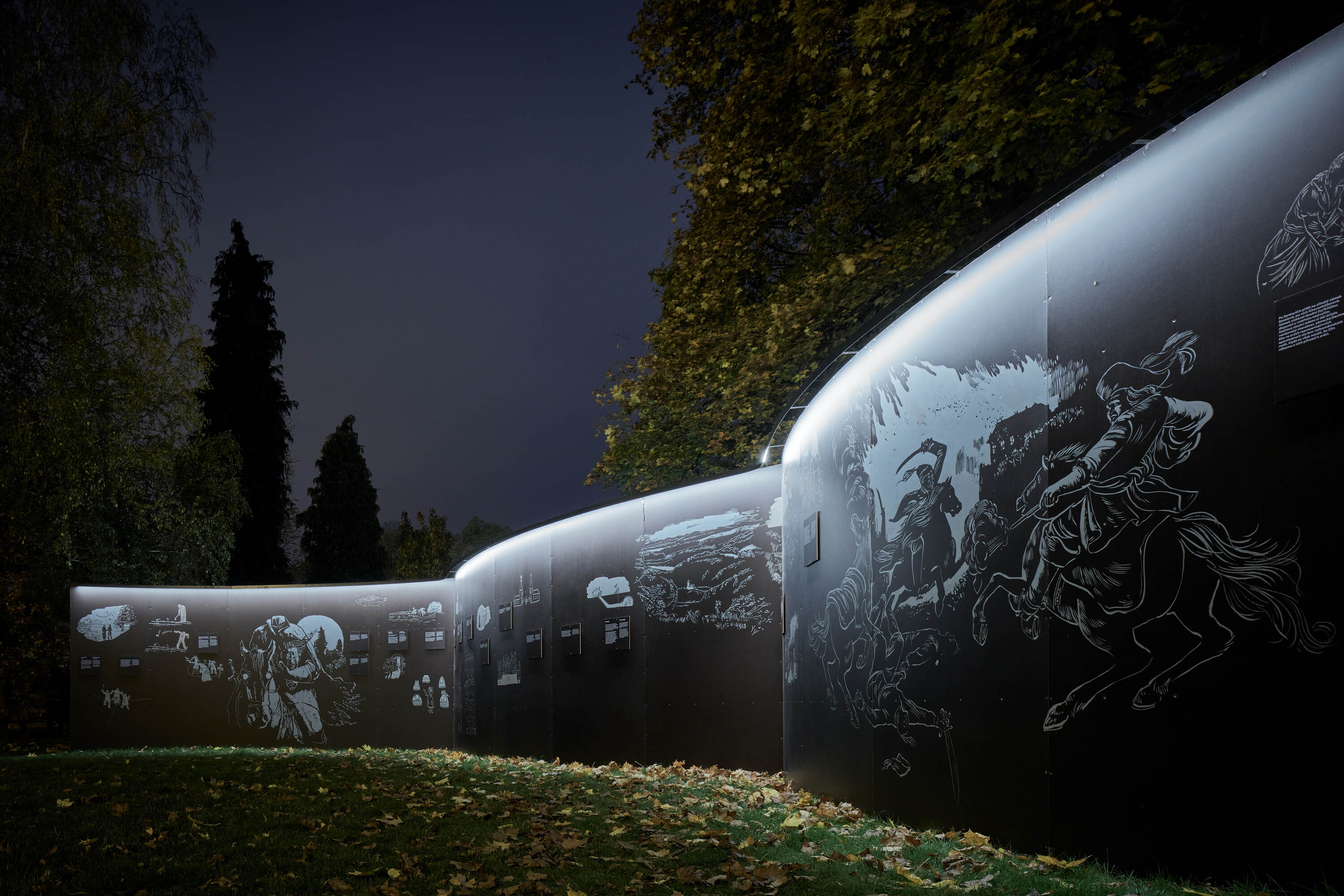 즐린의 거울은 즐린(Zlín) 지역의 700년 역사를 담아 진행된 전시회다. 건축가는 체코의 작가 파벨 코사틱(Pavel Kosatik)의 독특한 시각의 작품을 이미지화 하기 위해 텍스트와 이미지 사이의 긴밀한 대화를 시도했다. 즐린의 거울의 하이라이트는 공원의 아름다운 나무들 사이에서 별자리와 같은 유동적인 형태를 갖는 거울과 조명, 왕관 형태의 파빌리온이다. 이 파빌리온은 나무 벽을 소재로 하며, 유광의 스테인레스 마감을 통해 주변의 나무와 풍경을 역동적으로 담아낸다. 이 전시회에서는 각각 시기에 따라 파벨 코사틱의 소설에 등장하는 다양한 인물과 배경을 테마로 한 17개의 종소리를 들을 수 있다. 관람객들은 각각 다른 시간과 계절, 빛에 따라서 즐린의 순간들을 경험할 수 있다.