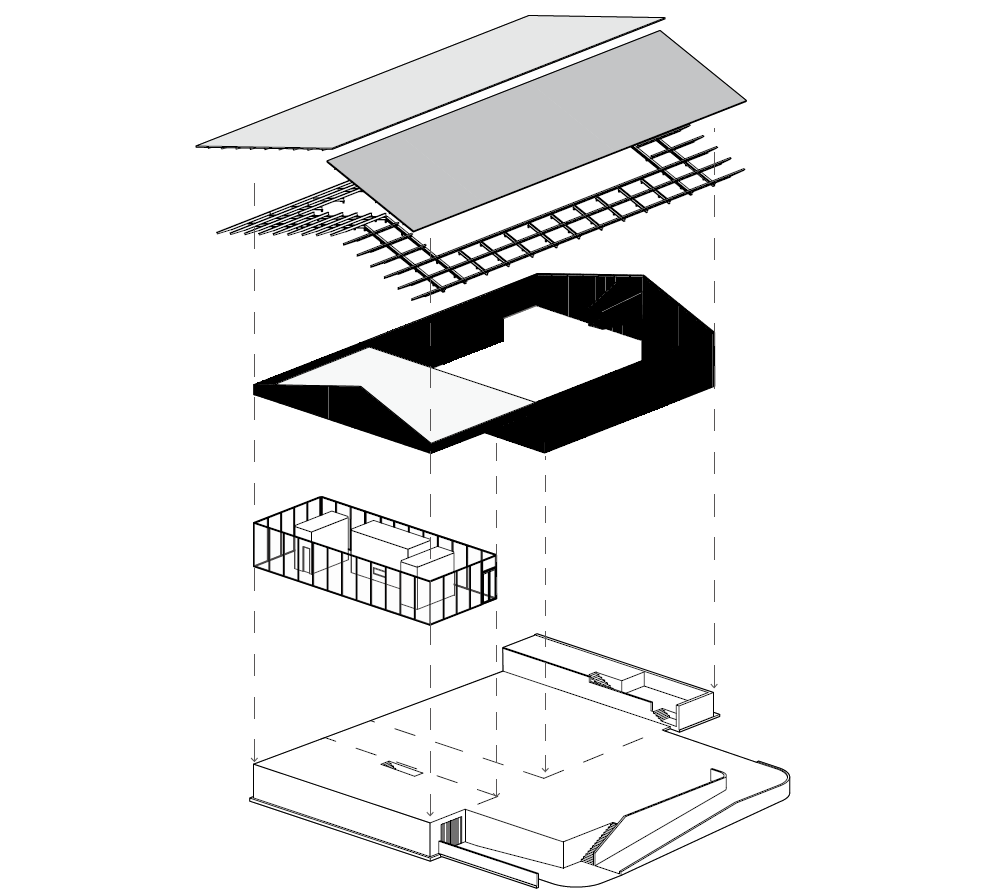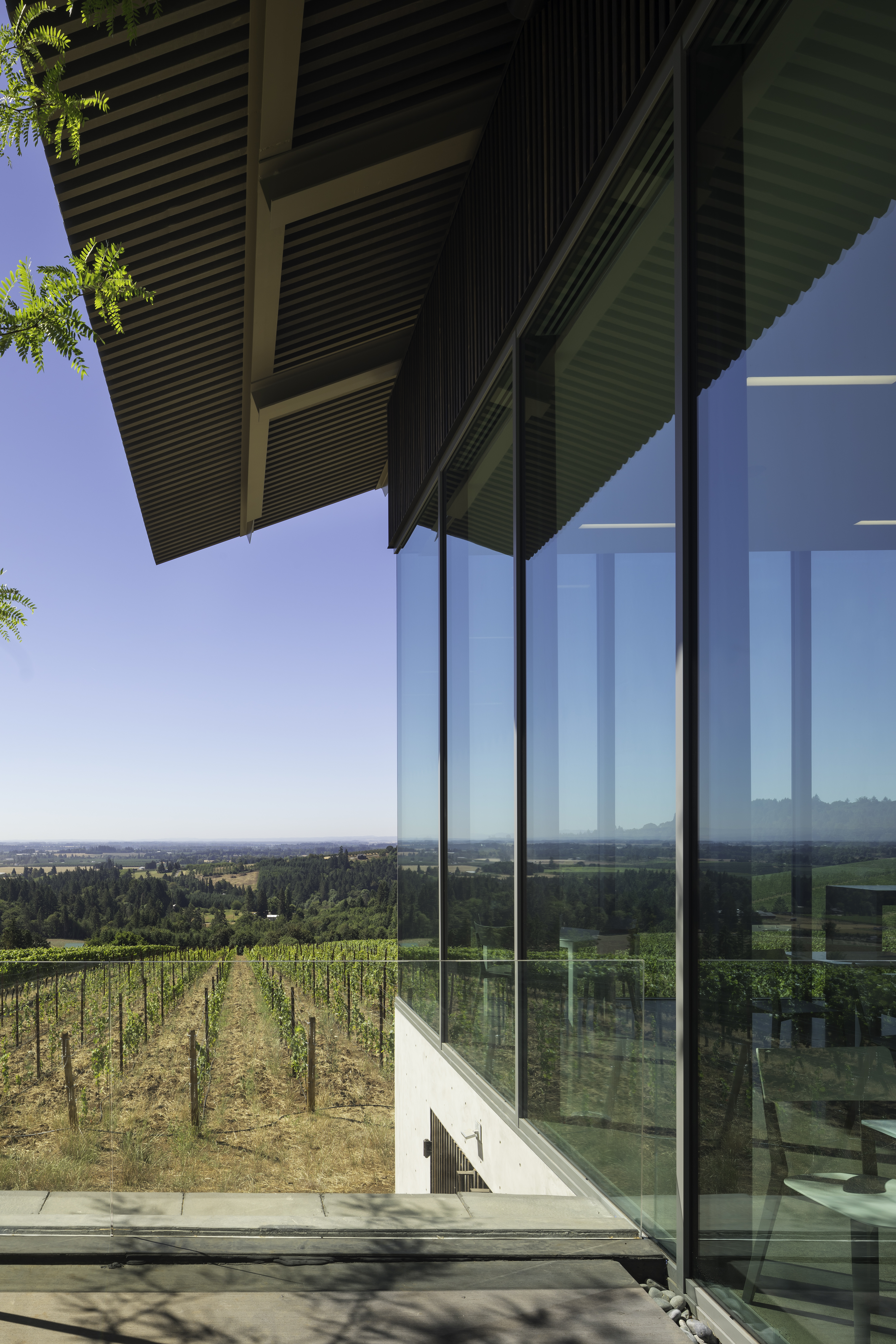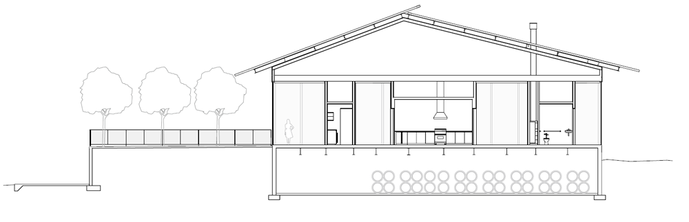 포도밭을 둘러싼 이 핵심 공간의 가장 중요한 요소는 지붕일 것이다. 오래된 요소들과 새로운 요소들이 결합하여 만들어져 있기 때문이다. 특히, 시음실을 덮고 있는 현대식 지붕은 4인치가 뻗어 나온 캔틸레버 구조의 골판지 강철 지붕이다. 지붕 사이로 공기와 빛이 자유롭게 통과할 수 있으며, 여름에는 캔틸레버의 지붕이 유리로 둘러싸인 시음실의 햇빛을 완벽하게 차단한다. 기존의 목구조의 지붕과 새로운 현대식 지붕이 공존하는 이 공간은 이제 푸리오소 포도밭의 상징이 될 것이다.