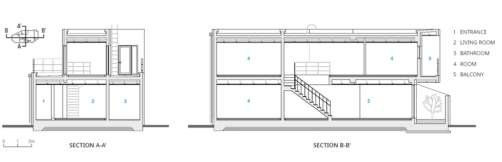 고모동 주택은 프라이버시를 보호하기 위한 요새형 주택의 개념을 새롭게 재해석했다. 외부에는 주택을 둘러싼 견고한 담벼락이 높게 설치되어 개인 정보를 보호하고 프라이버시를 보장한다. 이 담벼락은 외부적 시선을 차단하여 가족들이 안락하고 안전한 공간에서 삶을 즐길 수 있도록 한다. 담은 건축을 구성하는 벽과 일체화되었다. 벽의 개구부로 인해 주택 내부에서는 중정을 중심으로 한 개방적인 구조를 가진다. 중정은 주택 내부로 햇살과 자연적인 채광을 유입시키는 역할을 한다. 이를 통해 실내 공간은 밝고 쾌적한 분위기를 갖추게 되며 가족들은 자연과의 조화를 느끼며 생활할 수 있다. 중정 주변에는 거실, 다목적 공간, 주방 등이 배치되어 가족들이 모여 소통하고 시간을 보낼 수 있는 활동공간이 조성된다. 가족들은 중정을 중심으로 한 개방적인 구조를 통해 서로의 존재를 인지하고 소통할 수 있다. 공용 공간이나 거실, 테라스는 가족들이 모여 소통하고 즐길 수 있는 장소이다. 개별 공간들은 연결된 통로를 통해 유기적으로 이어져 있어 가족들과의 교류가 자연스럽게 이루어진다.
