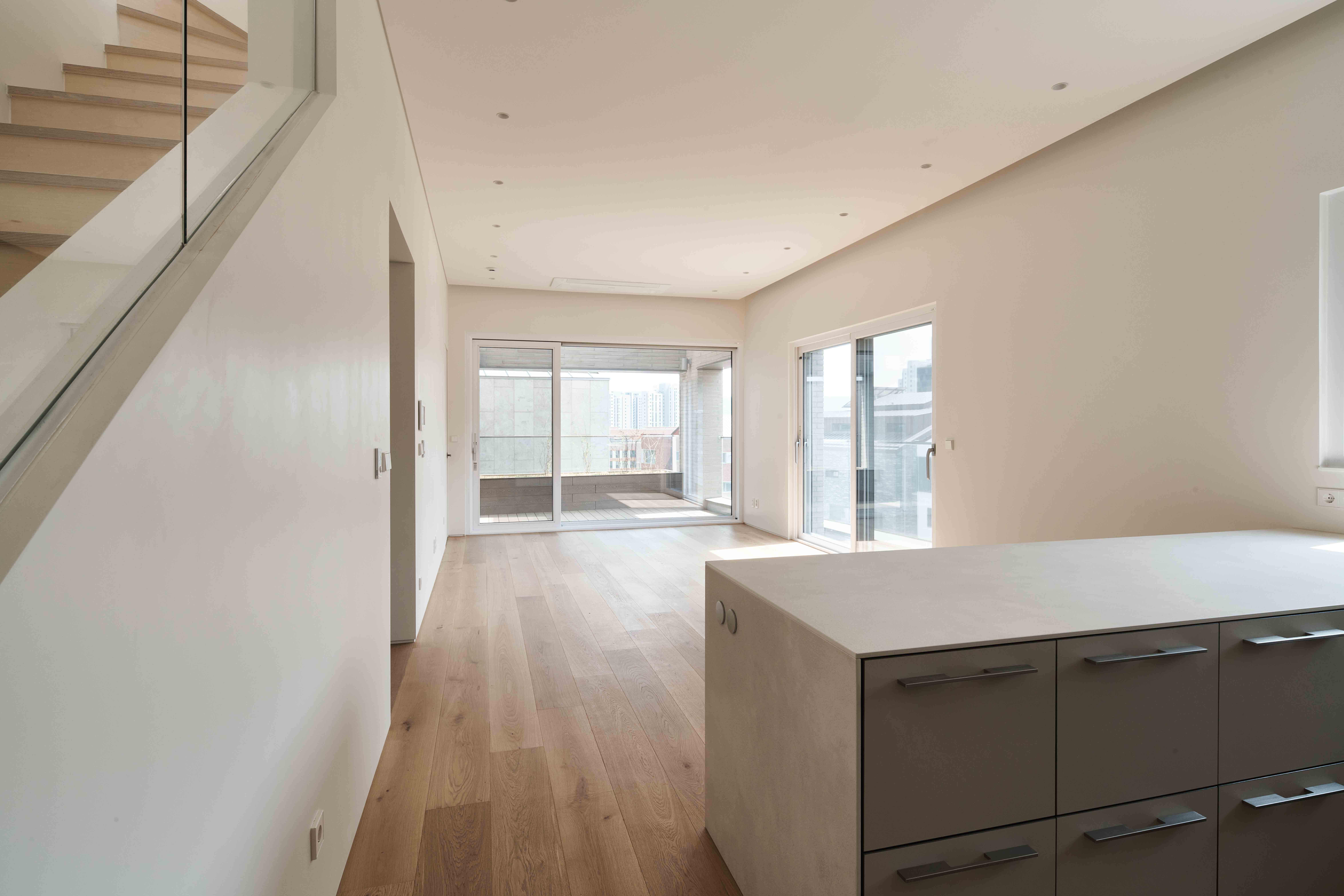 이 프로젝트는 다락의 면적이 줄어드는 것을 최소화하고자 복층 대신 4층의 전체 층고를 높이는 방향으로 계획했다. 다만, 층고 전체를 일괄적으로 높게 할 경우 다락으로 올라가는 계단이 너무 높아져 사용에 불편함이 발생하는 점을 감안하여 층고가 높을 필요가 없는 침실이나 화장실 공간은 기존의 층고를 유지하는 스킵플로어 형태로 계획했다.