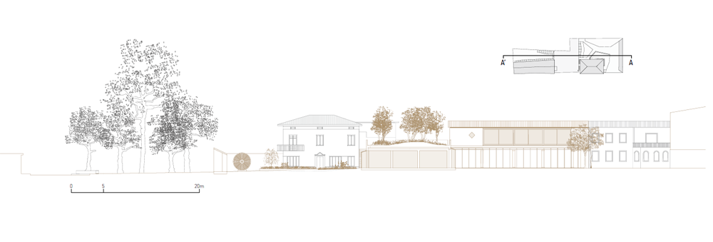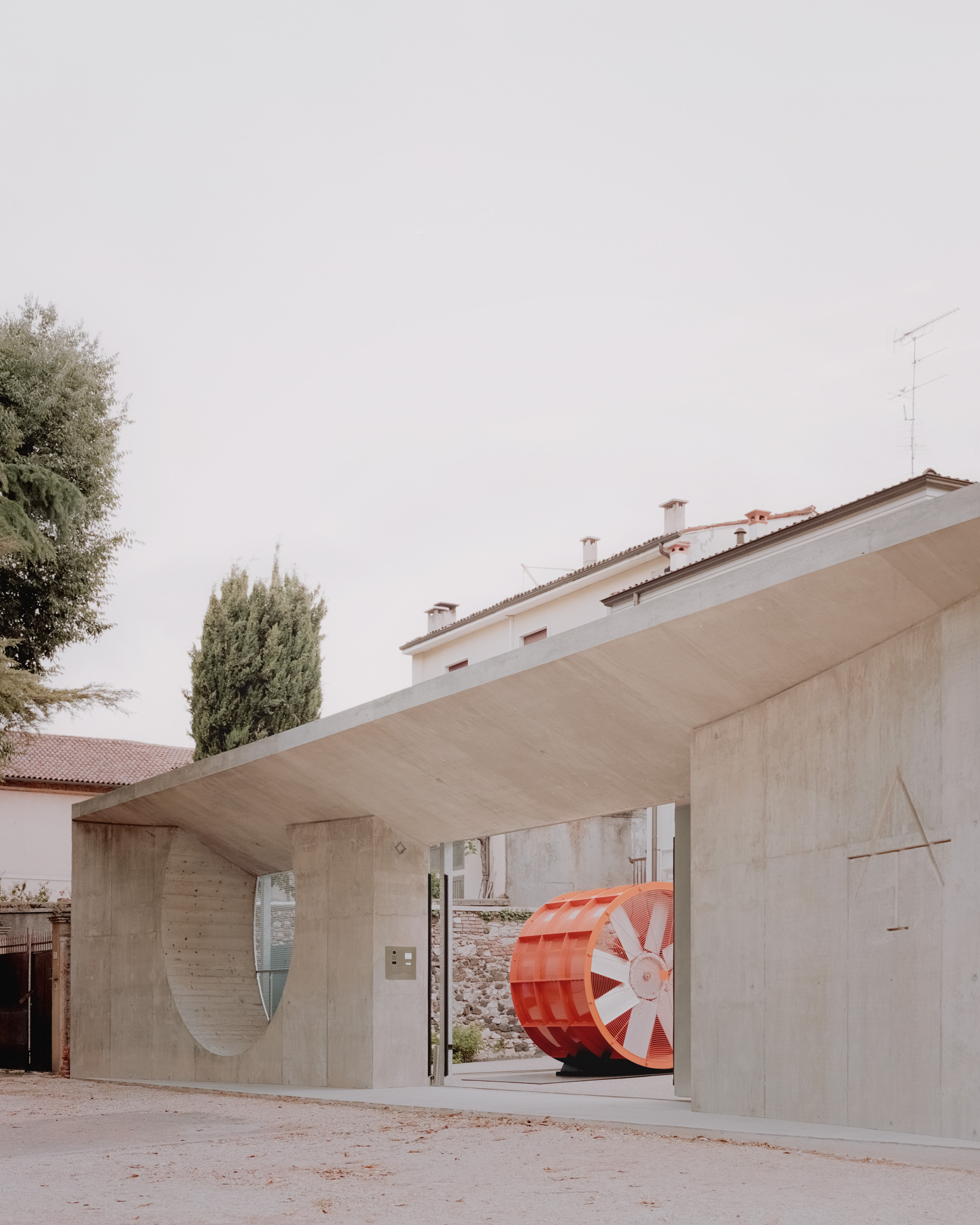 아티포그라피아 갤러리는 마츠 베르그퀴스트(Mats Bergquist)의 작품에 경의를 표하는 공간이다. 문턱을 넘어야만 만날 수 있는 이 공간은 입구부터 예술 작품이다. 예술 작품의 프레임처럼 내부로 오목한 모양은 공간의 경험폭을 넓힌다. 첫 번째 ‘비밀’ 정원에 도달하면 관람객들은 완전히 다른 차원으로 들어갈 수 있다. 주변의 혼란스러운 도시 맥락 속에서 예술이라는 오직 하나의 목적을 위해 만들어진 공간은 관람객들에게 정리되고 차분한 공간의 언어로 평화를 선사한다. 길을 따라 접근하면 가장 먼 쪽에서 전시 구역 안으로 자연스럽게 접근할 수 있다. 일련의 교차로를 따라 한 번에 하나의 문턱을 따라 점진적으로 모습을 드러낸다. 이전에 헛간이었던 공간에 대한 기억은 완전히 다른 공간을 발견하는 것으로 변화되었다. 가시적인 철근 콘크리트의 구조는 나무 슬래브와의 대비를 이룬다. 마티아 보스코(Mattia Bosco)의 조각품들이 흩어져 있는 일본 정원을 연상시키며 특권적인 관점과 휴식의 순간을 제공한다. 아틀리에에 들어가기 위해서는 하나의 문턱을 더 넘어야 한다. 천연 강철로 된 큰 미닫이문은 마지막으로 가장 순수한 공간에 쉽게 접근할 수 있도록 회전식 창이 설치되어 있다.