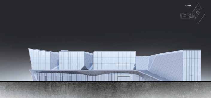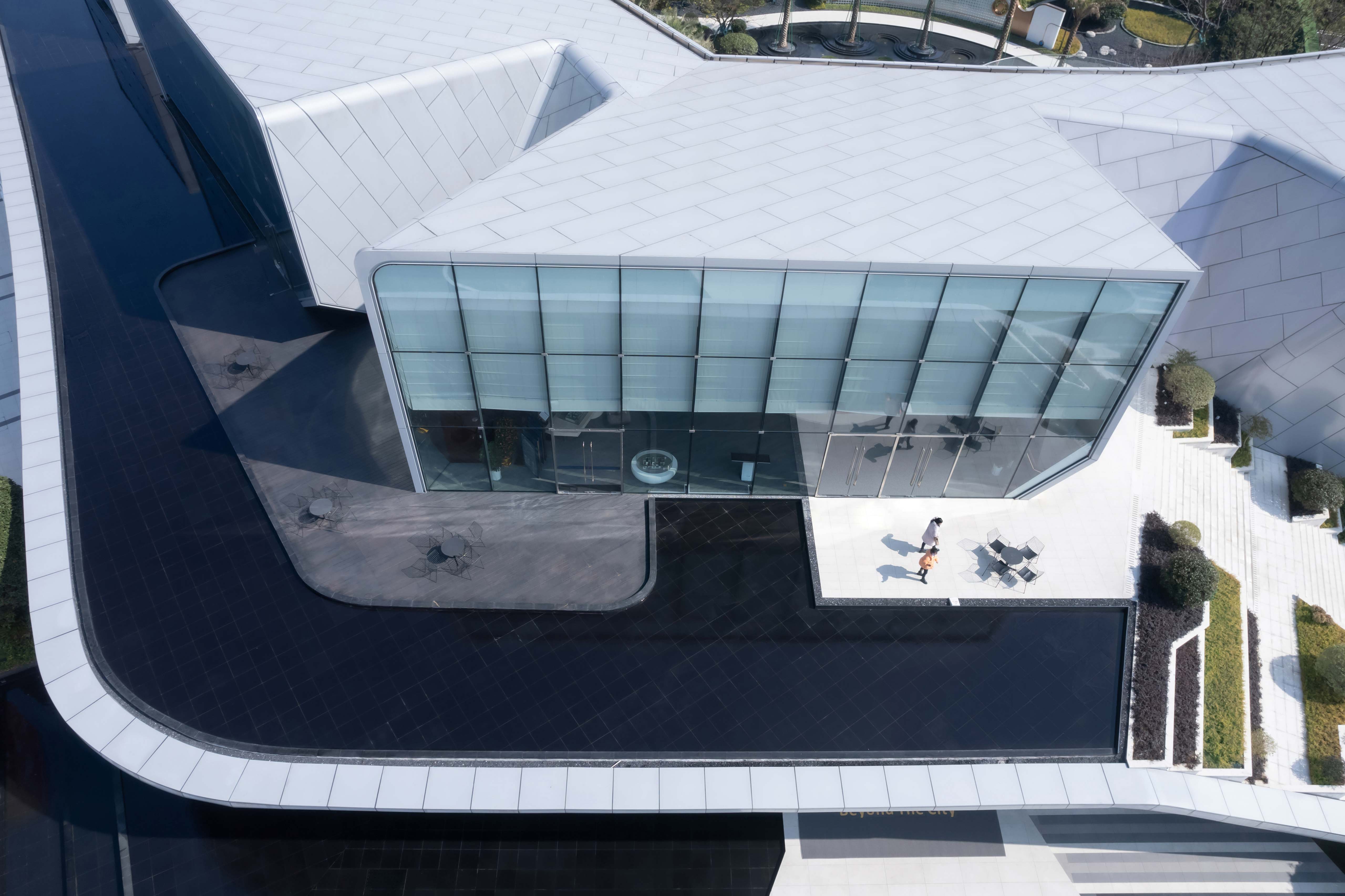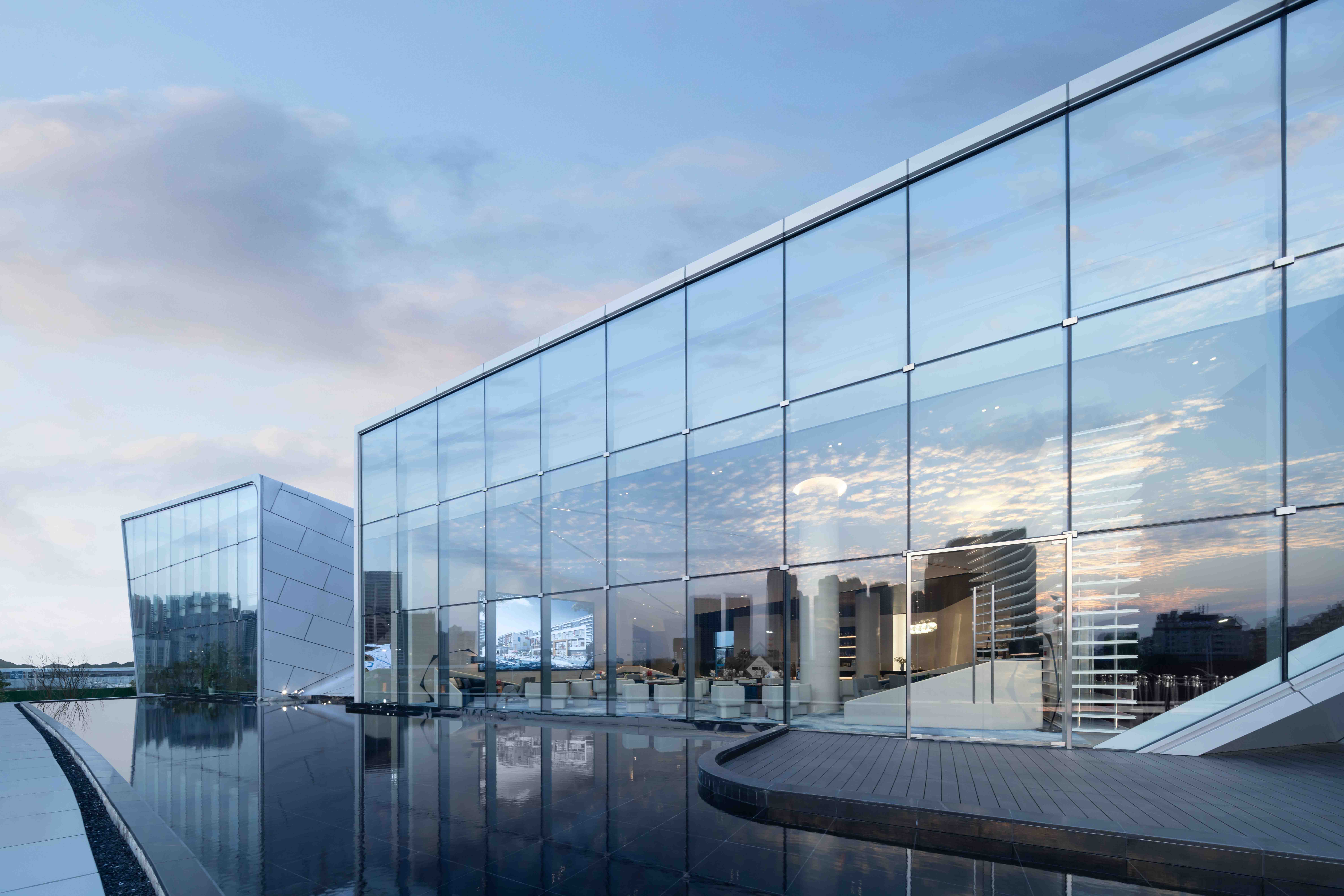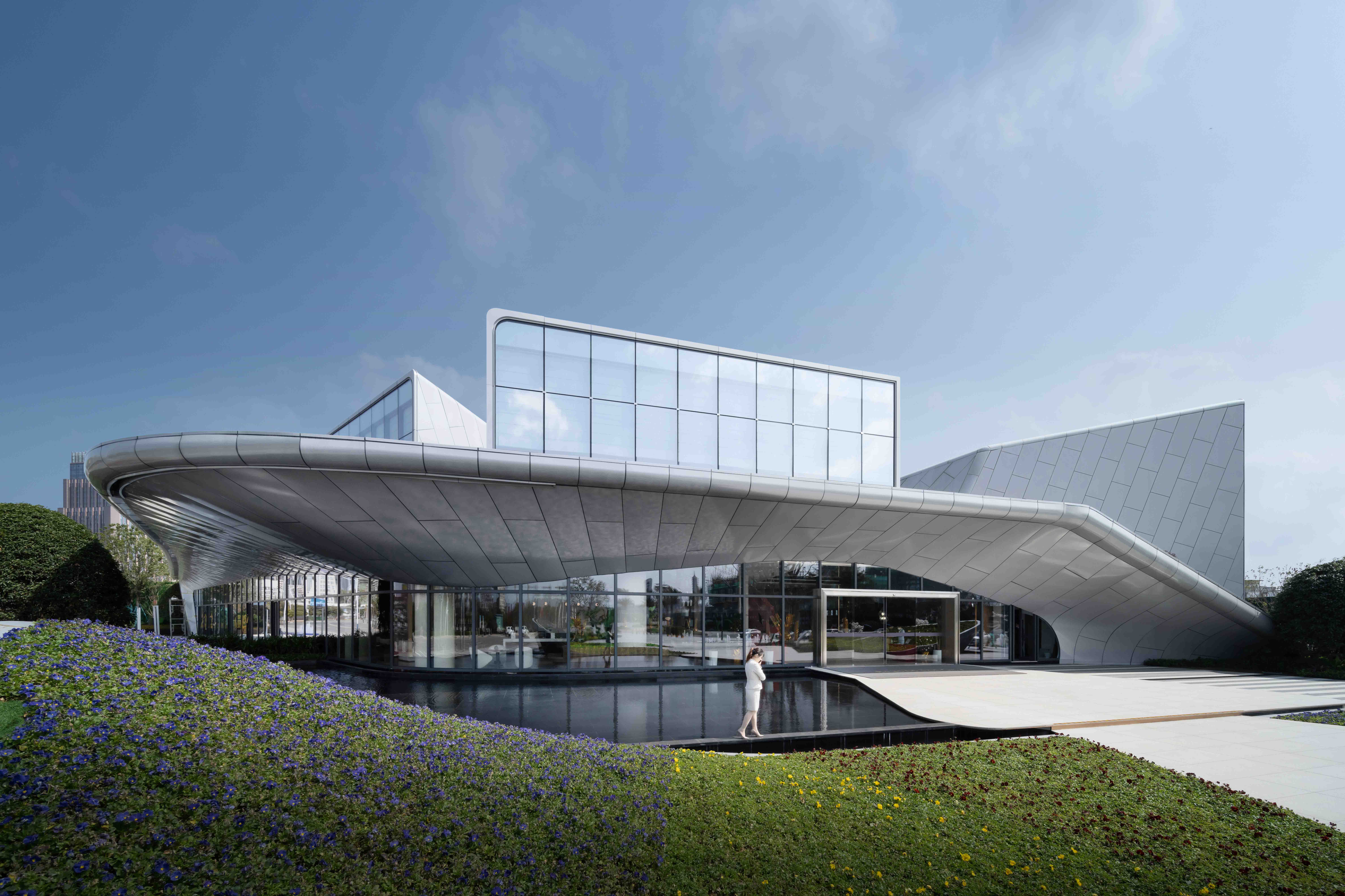 This case is located on the shore of Zhangjiang River in Ganzhou City. The site has great environmentalcharacteristics and atmosphere. The designeristellinga story of water in architectural language, soas to makethe buildingbe bornin water and integrated into thelandscape. Overlooking from distance, the building looks like a technology ark floating on the water.Its pure coloredmetal shell is integrated into the environment of same colored water and sky. When looking close,itsshapeis like waves, surrounded bywaterscapeand water curtain, creating a technology ark on the water.Itsdesignis based on the largeareafloor to ceiling windows and the smooth, concise and powerful shape, extendedalong the riverincombinationwith the terrain, and rotated to match the site. The blocks aresegmentedtoform a frame view.Taking the building as a boundary, the landscape design of the entrance square is regularand adopts simple geometric lines,itriseslayer by layer andis consistent with the building platform, just likethe rise of water waves to the shore.It presents a high-grade gray system as a whole, with auxiliarydetailssuch as aluminum plate, minimalist lines and diamond cutting surface, combing the beauty of light and shadow,and complementing the river scenery.