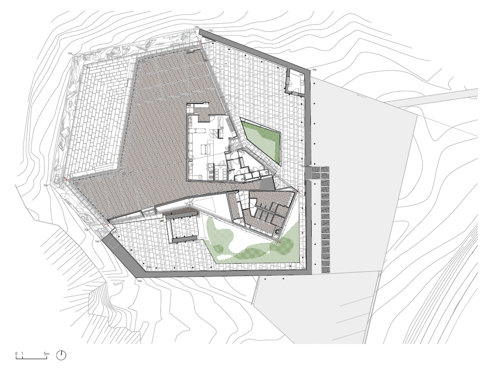 크리즈미나 요새가 자리한 대지는 바위투성이의 협곡과 모래 해변, 작은 조약돌 해변과 같은 특이한 경관과 생태학적 특성을 지닌다. 건축가는 주변 환경의 맥락을 존중하며, 건물과 이어지는 비포장도로를 그대로 유지하고 별도의 식생을 설치하지 않은 야외마당을 고수했다.