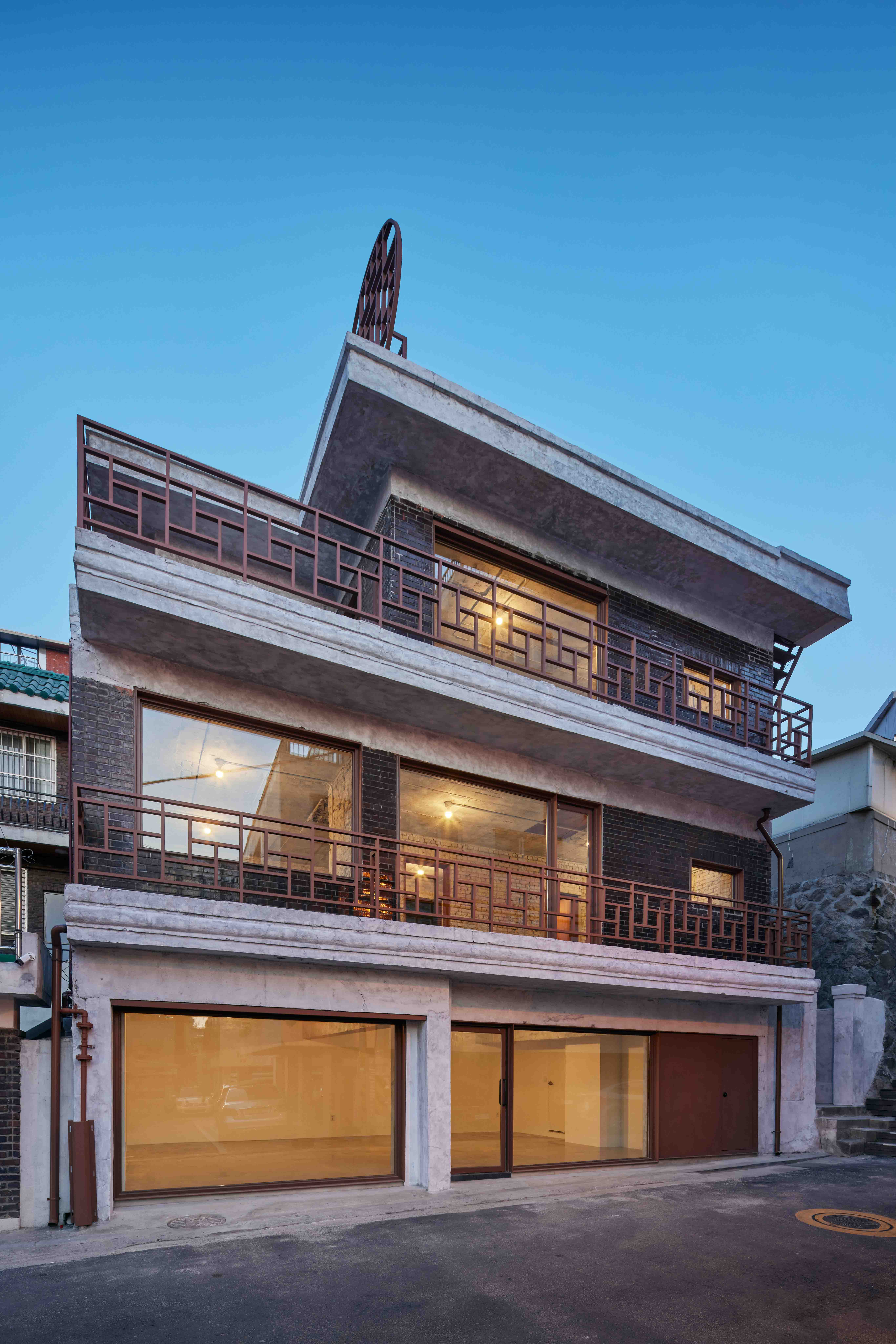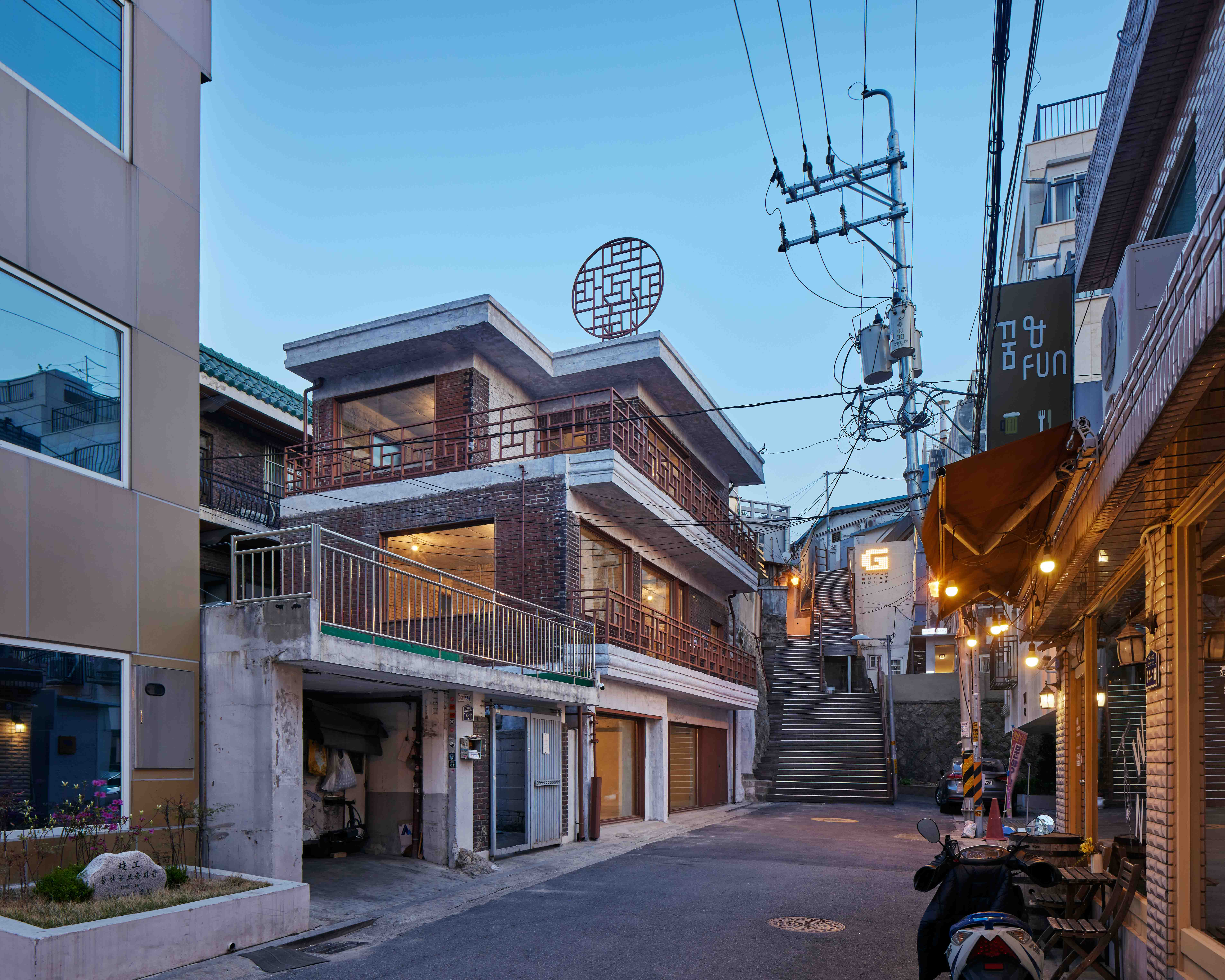 때론 어찌할 도리가 없다. 변화하는 상황에 대응하여 차선을 선택하는 것. 건축물을 계획하면서 가장 마주치기 싫은 설계변경이란 상황에 대한 이야기다. 해당 건물은 1969년에 준공한 연와조 주택으로 당시 용산구청장의 사택으로 지어졌었다. 지금도 주변에서 흔히 볼 수 있는 검박한 벽돌 주택이었지만 신축 아닌 리모델링을 통한 개발을 해야하는 건축주 요청에 의해 다시금 공간의 재생과 그에 대한 가치를 논하는 기회가 되었다. 당초 계획안은 2개층을 증축하는 야심찬 안이었으나, 코로나19에 대응하여 도입된 대규모 경기부양책이 급격히 축소되며 부동산 시장에 먹구름이 드리웠다. 급격한 금리변동과 함께 크고 작은 금융계 악재들이 터지며 건축주는 미리 자금 조달 협의를 해두었던 금융사로부터 추가 대출 불가통보를 받았다. 개인들로 구성된 소규모 그룹이었던 건축주는 이미 상당한 자본을 부동산 매입에 사용한 상태였기에 결국 공사예산은 당초의 ¼로 줄어든 상황이었다.