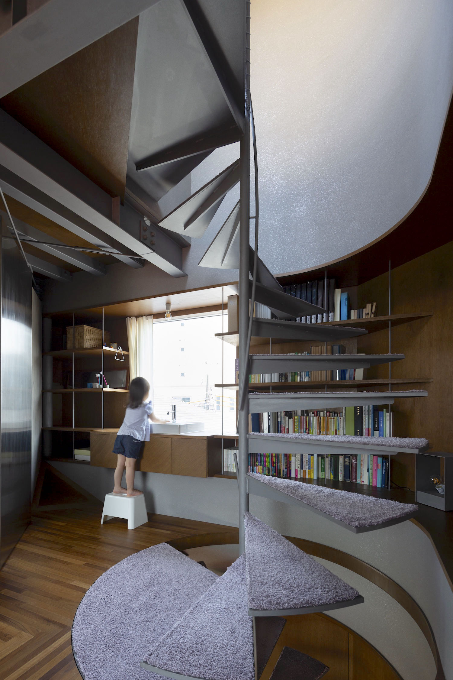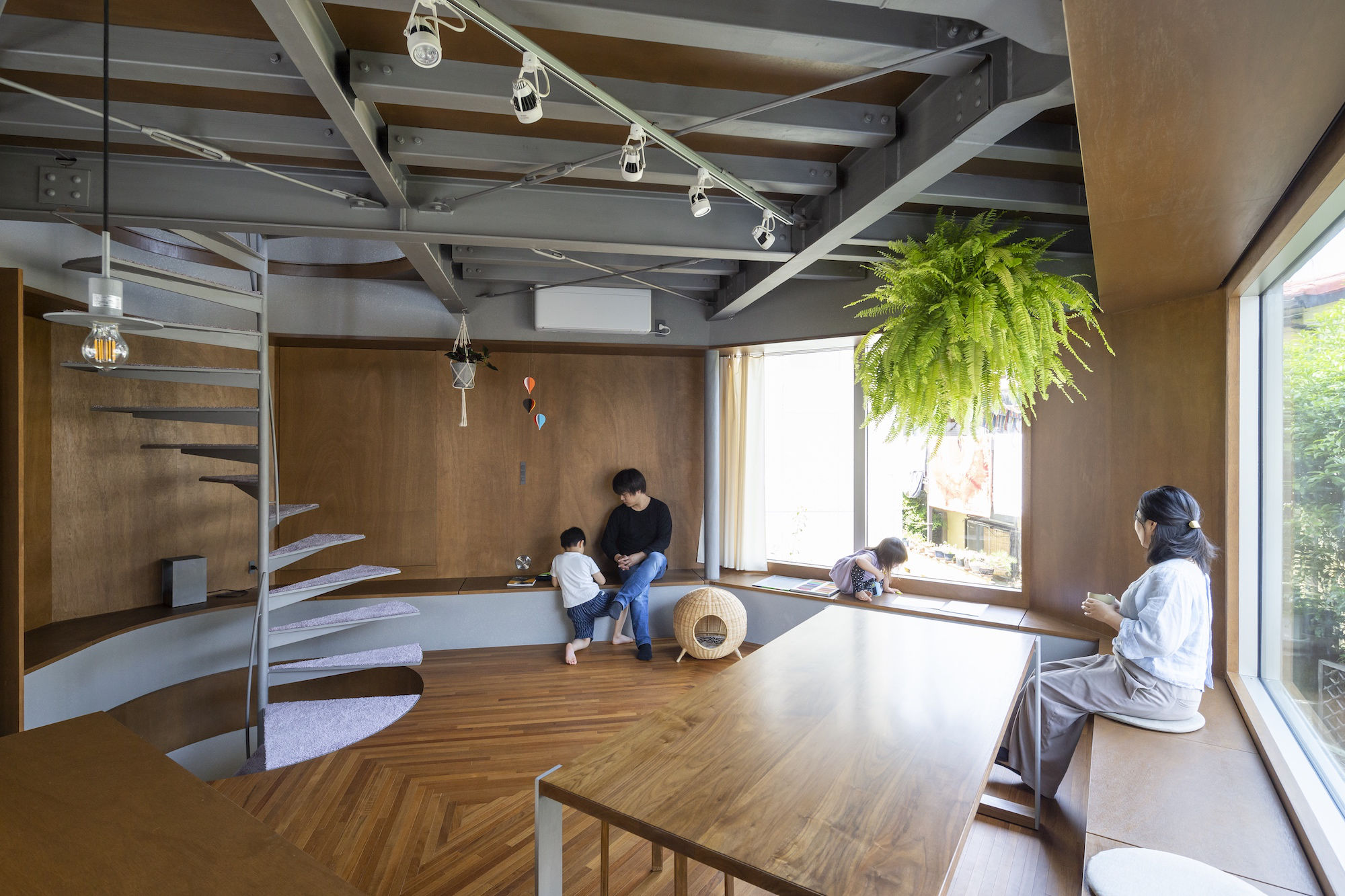 부부와 두 자녀, 그리고 두 마리의 고양이를 위해 지어진 주거 공간과 사무실이 결합된 이 집은 사방에 창문이 설치된 것이 특징이다. 모든 층과 모든 면에 베이(Bay)를 갖추고 있어 거주자들이 여가와 휴식을 취할 수 있는 공간을 선택할 수 있게 했다. 단독주택으로 둘러싸인 도심 속 작은 부지에 새로운 건물을 신축하면서 이웃집의 창문을 막아버리면 갑갑함을 주게 된다. 이 문제를 해결하기 위해 건물 모서리를 잘라 부지의 네 모서리에 공간을 만들었다. 또, 에너지 사용량을 줄이기 위해 주변의 미기후를 분석하여 세 가지 유형의 창문을 고안했다. 결과적으로 이 집은 계절과 시간, 방향에 따라 환경이 달라지는 다양한 공간을 제공한다.
