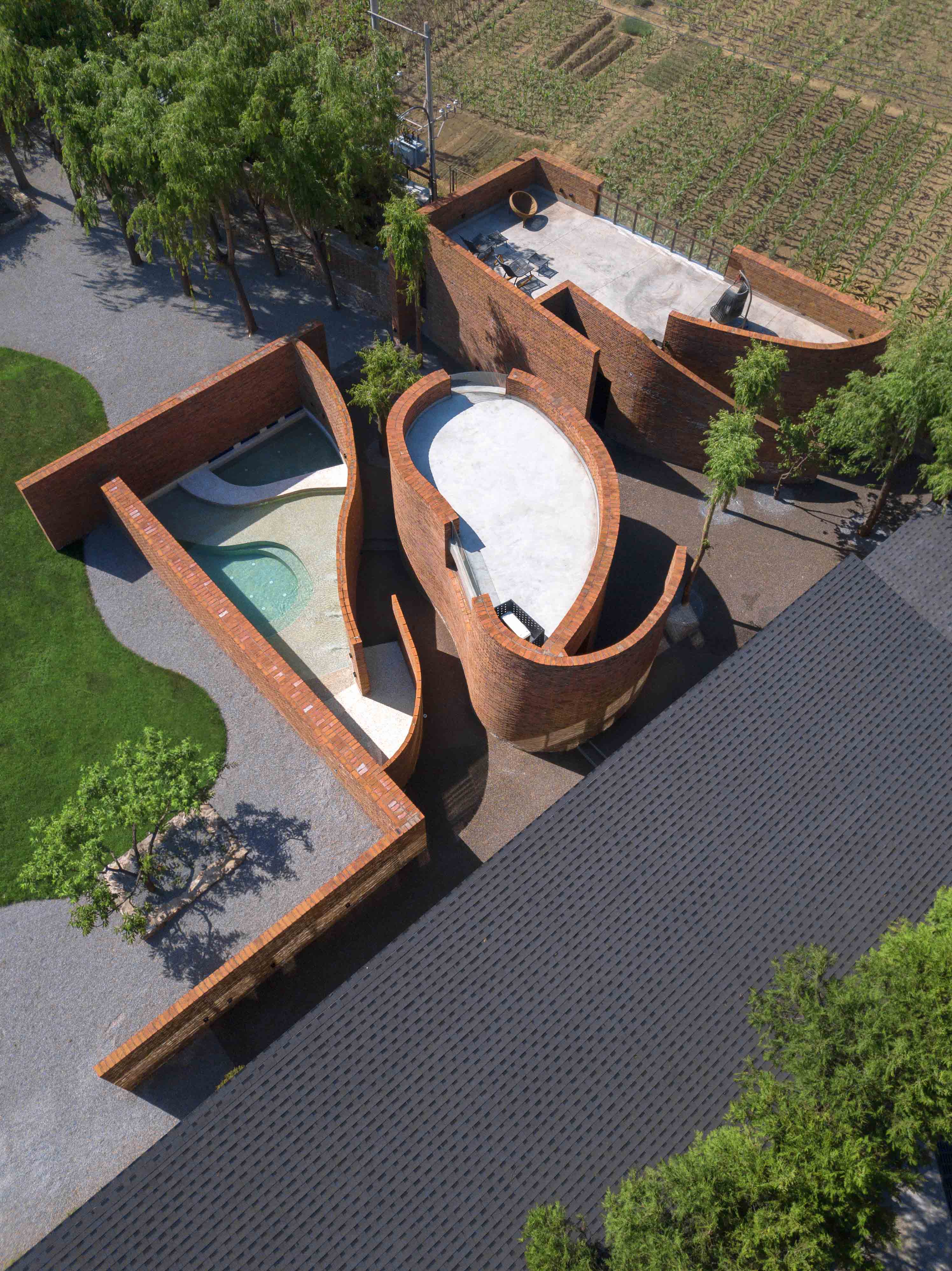 브릭야드 치유센터는 이 지역의 도시 재생 프로젝트 중 하나다. 이 건물의 리노베이션은 유약이 발린 타일, 오래된 가마, 붉은 벽돌을 중심으로 이루어졌다. 이러한 요소들은 기존의 공장이 갖고 있던 문화유산과 공간의 건축적 역사, 마을의 지역 문화를 반영한다. 마당 남측의 본관을 중심으로 프로그램이 구성되어 있는데, 기존에 기와를 굽는 가마가 있던 공간이다. 바닥에는 건축적, 역사적 중요성을 반영하여 자연색과 밝은색의 유약 타일이 사용되었다. 북측 안마당은 붉은 벽돌을 사용했고, 무티아뉴 만리장성의 탁 트인 전망을 제공한다. 이곳에는 조용한 휴식공간과 창의성을 위한 공간을 조성하고자 했다.