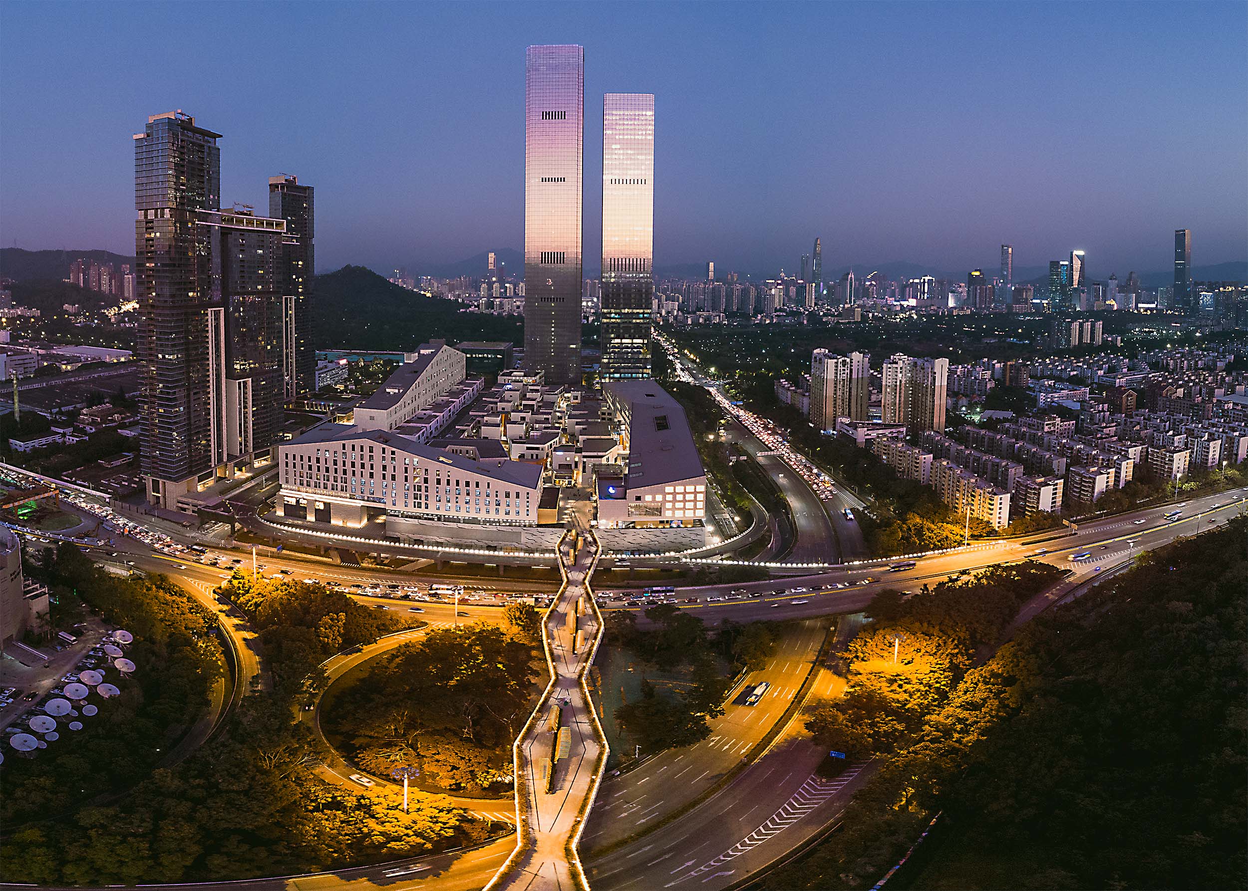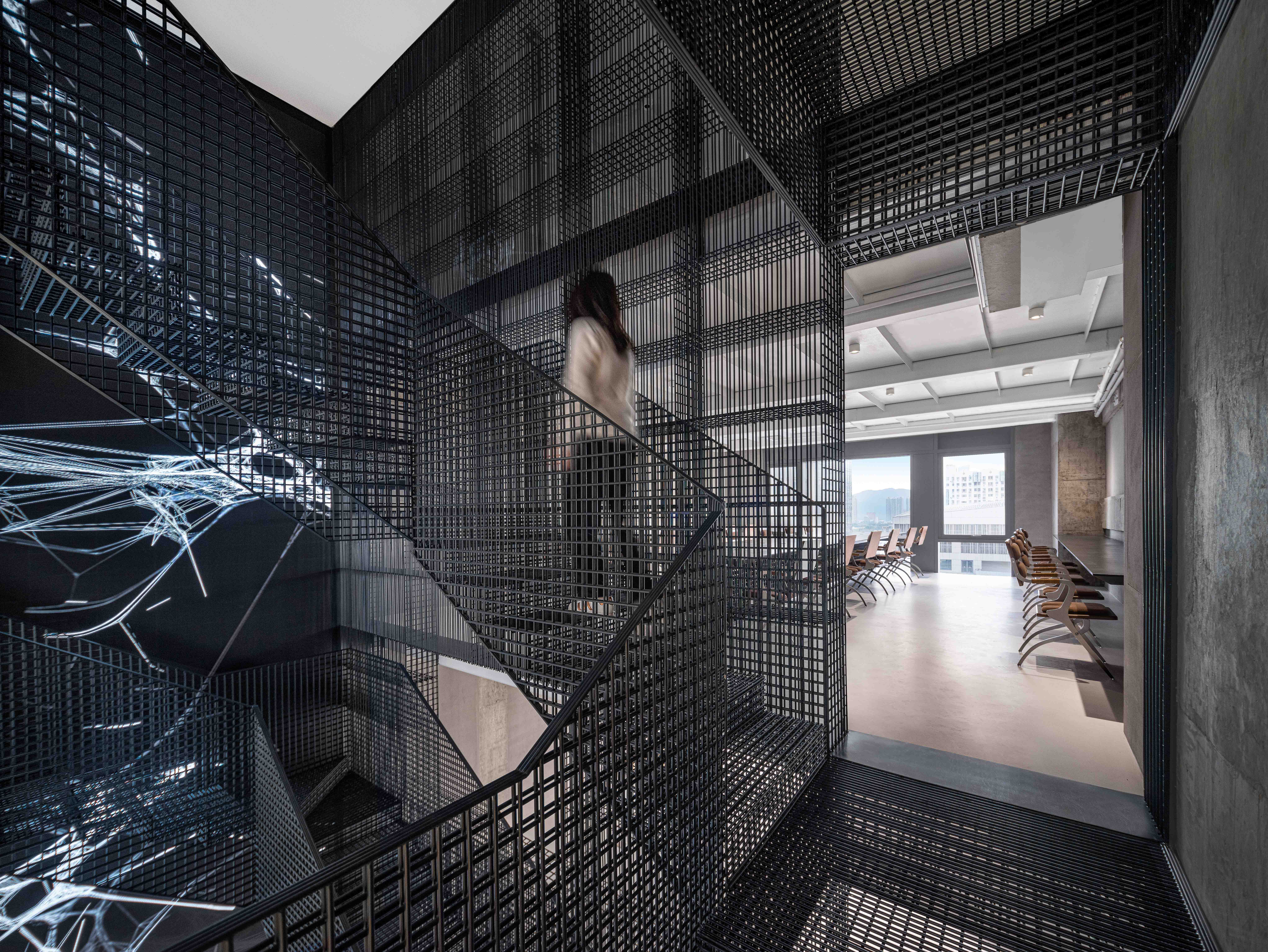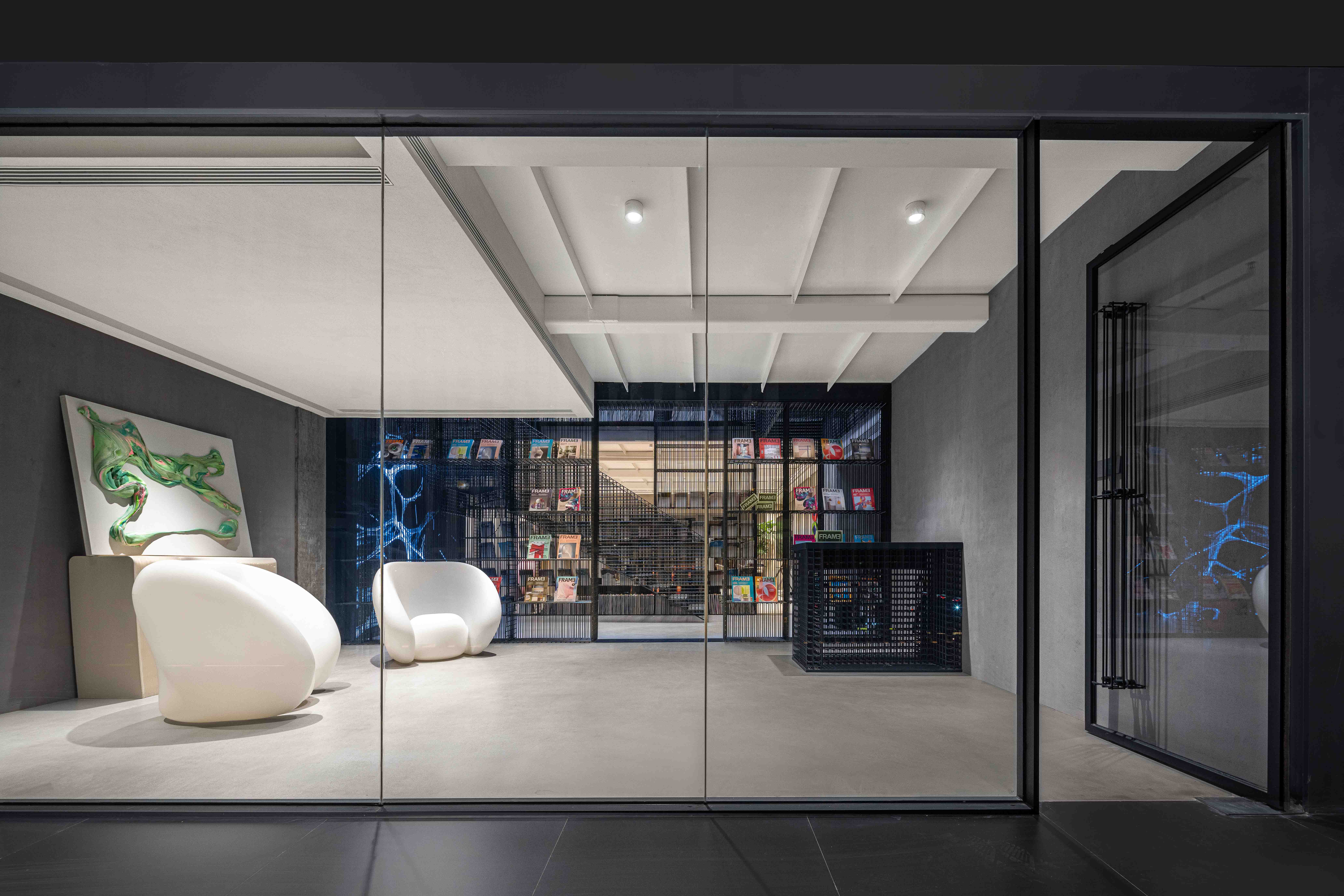 프레임(FRAME)은 홈 인테리어와 제품을 디자인하고 홍보하는 미디어를 운영하는 회사로, 선전 지역에 새로운 사무실을 만들며 독특한 국제 문화와 상업적 분위기를 연출하며 개방적이고 포용적인 협력 문화 플랫폼을 마련하고자 했다.전체적인 디자인 컨셉은 ‘프레임’(Frame)을 주제로 하여 공간, 구조, 형태, 재료를 재해석 했다. 층고 8.8m의 로프트 공간을 기준으로 내부 공간 배치를 재구성했다. 프레임 구조는 공간 전체의 확장감과 투명성을 보장한다. 이는 다양한 시간대에서 변화하는 자연광 아래에서 공간과 사람들을 통합하며 신선한 분위기를 제공한다.