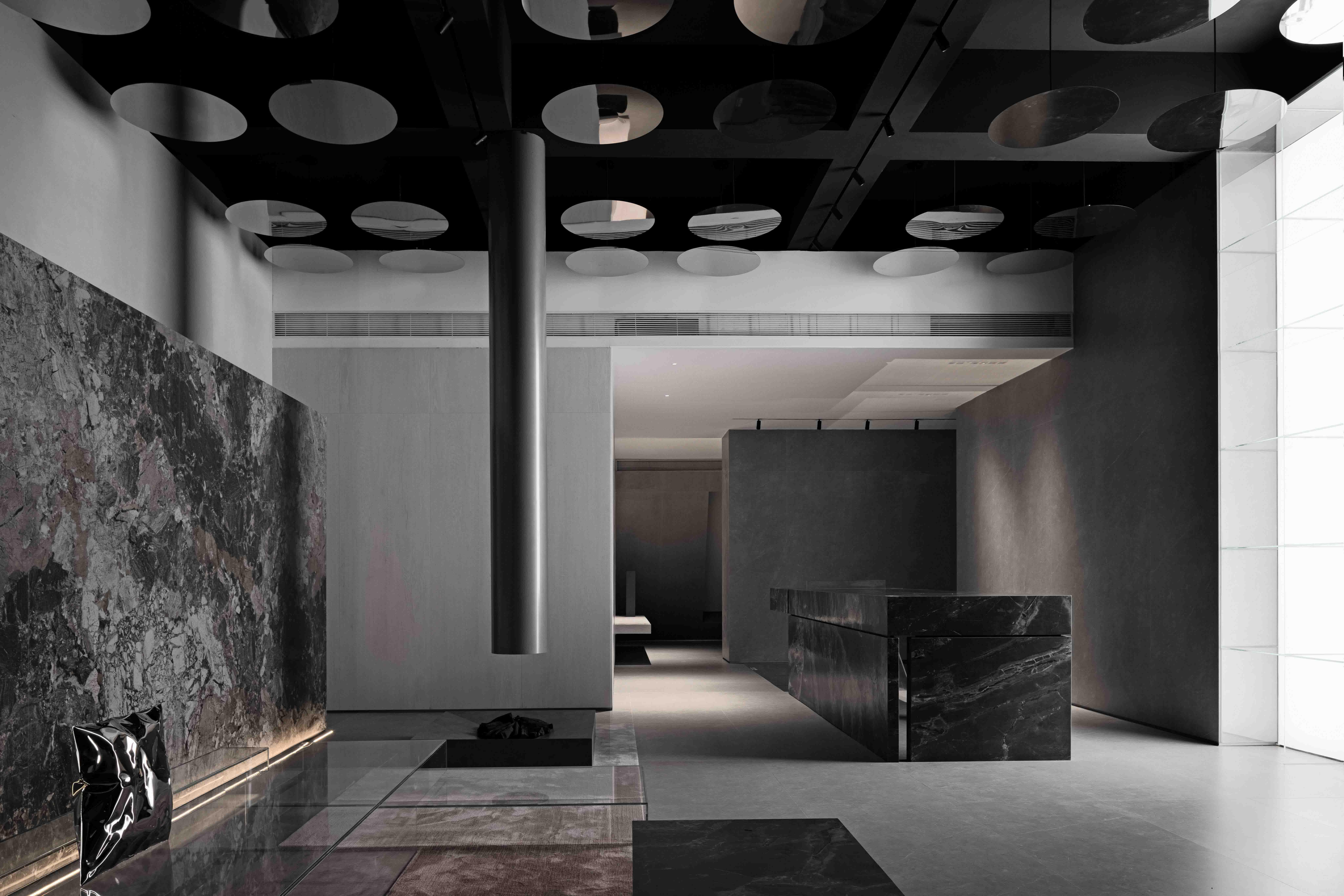 체이싱 라이트 쇼룸은 기존 전시실의 균일한 디자인과 전시 방식을 깨면서 공간, 자연, 사람, 시간에 제품이 공명하는 것을 보여준다. 자유로운 내부의 형태는 제품의 고유한 특성을 보여주기 위한 것으로 다양한 재료들을 위한 공간을 만든다. 내부 기둥의 규칙을 깸으로써 프로젝트는 자유롭고 편안한 분위기를 만들어낸다. 또한, 방문자들은 정해진 길을 따라 걸으며 모든 교차점을 경험하면서 제품들을 느낄 수 있다. 우뚝 솟은 공간에 있는 리셉션의 낮춰진 천장은 장난스러우면서 강렬한 장면을 만든다. 이 천장은 시각적으로 내부 공간을 넓히고 폐쇄된 공간에서 느껴지는 답답함을 없애준다.
