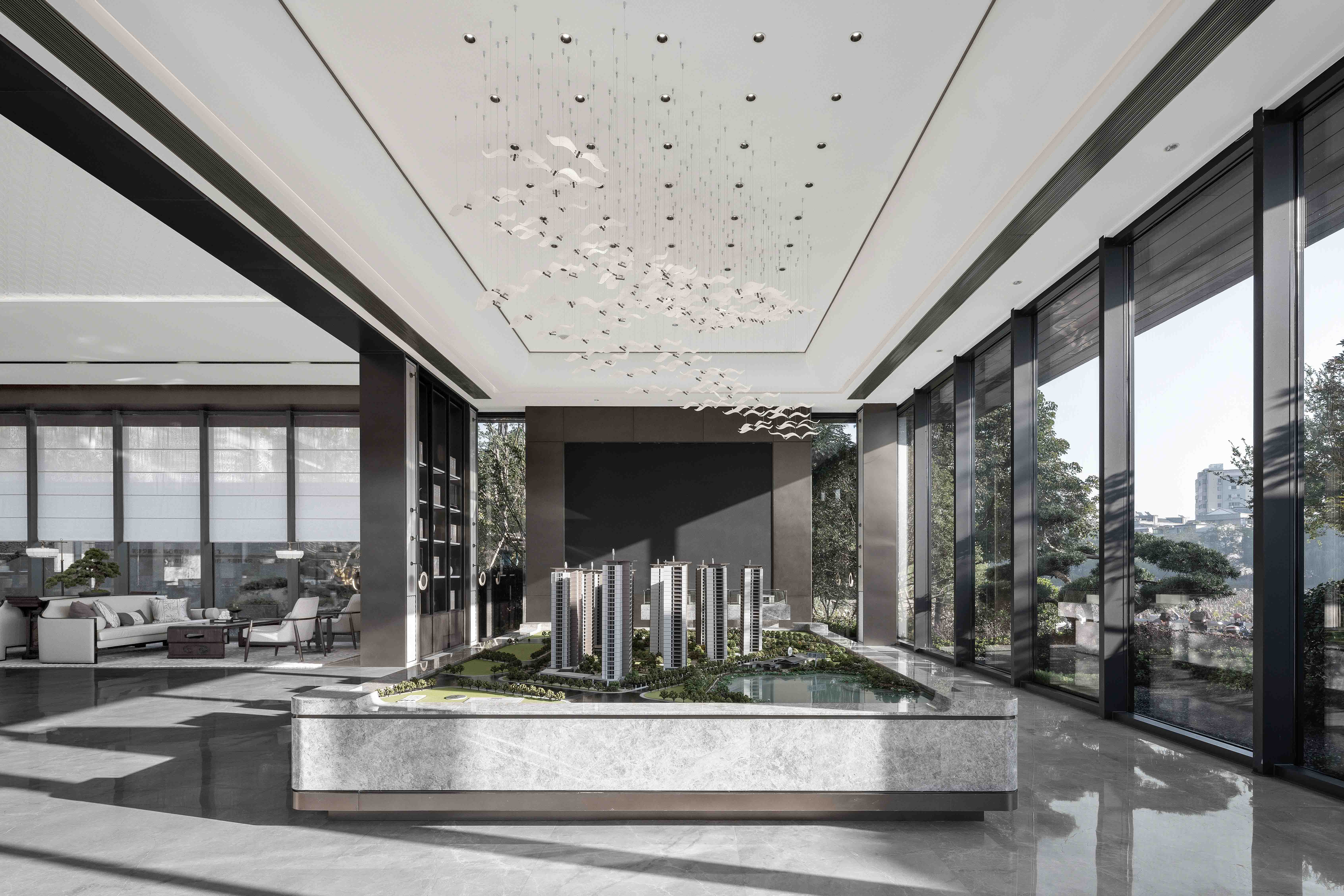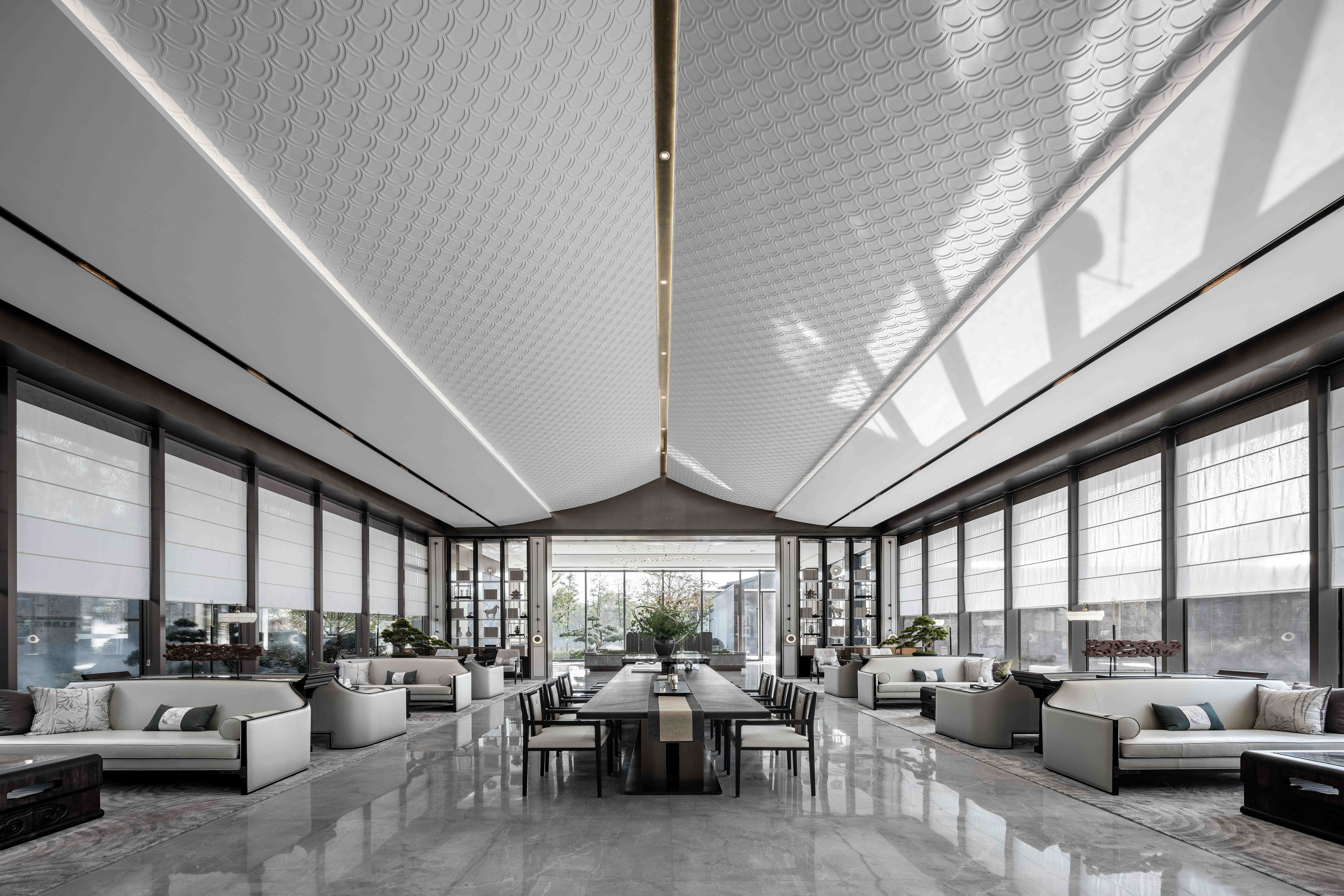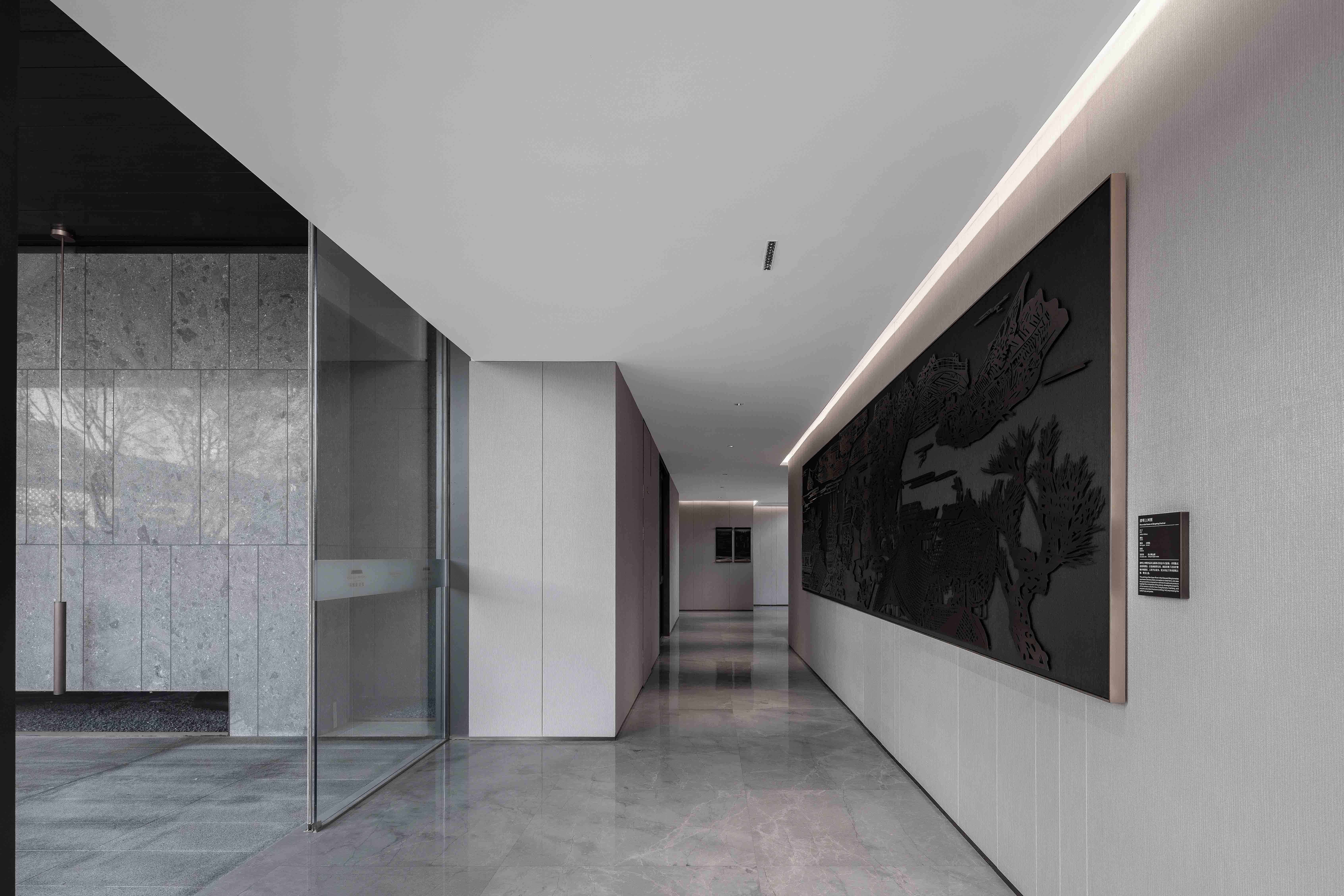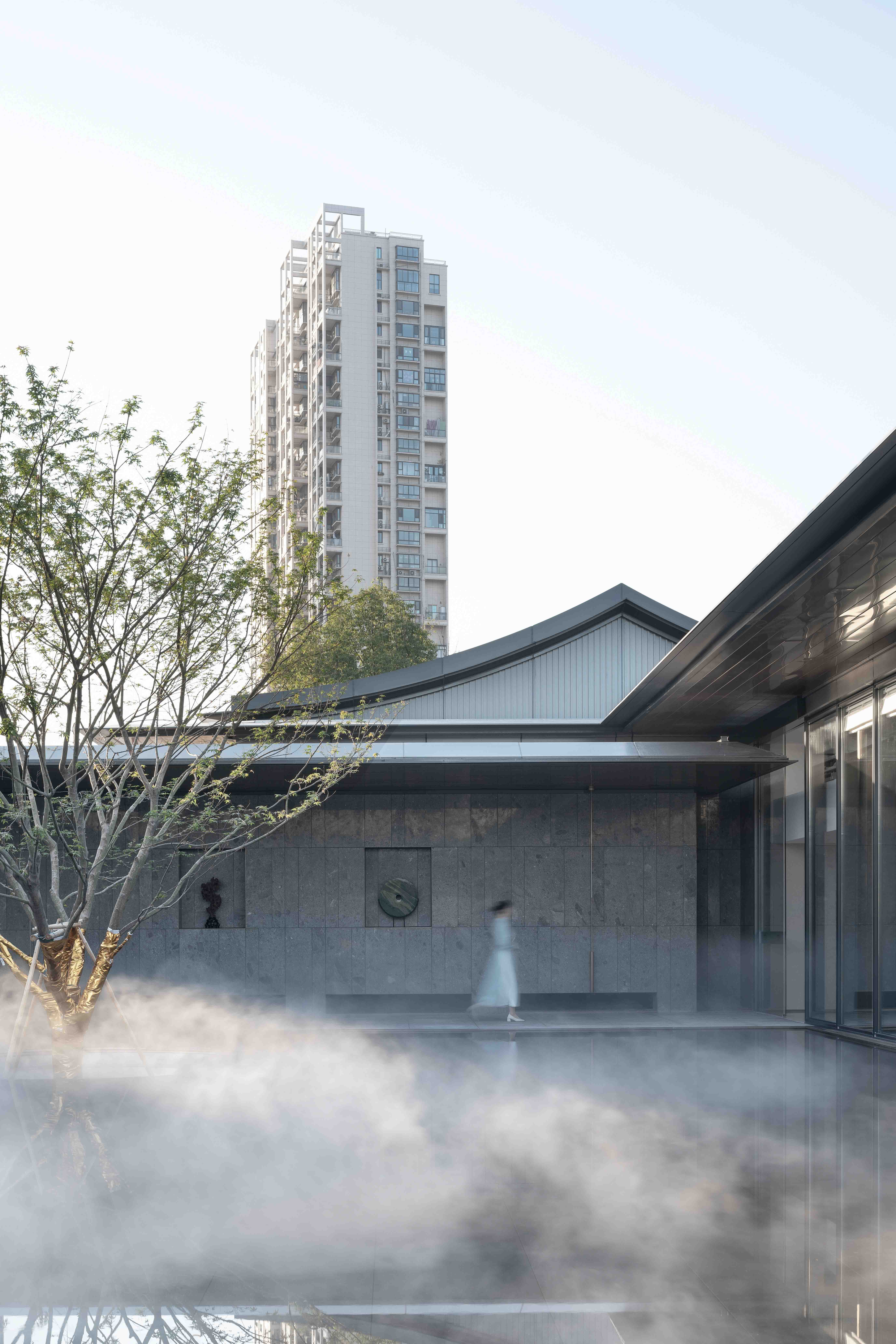 중국 이우의 중심지에 있는 친탕 맨션 인쇄 센터(모델하우스)는 슈후 호수에서 영감을 얻어 만들어진 곳이다. 아름다운 호수를 닮은 공간을 통해 잠재적인 부동산 구매자들에게 인상적인 경험을 제공하고, 이곳의 삶을 생각하도록 유도했다. 자연을 품으면서 당나라와 송나라 고유의 문화적 맥락을 계승한 마당형 생활공간을 조성했다. 공간은 단정하고 대칭적으로 마당을 향해 열린다. 협상 공간의 천장은 중국 남부지방의 전통 마당 처마처럼 아름다운 곡선을 이용하여 온화함과 부드러움을 섬세하게 표현되어 있다. 현대적 디자인 논리를 바탕으로 디자인된 이 공간은 동양적인 정신을 전달하면서, 새로운 시대에 맞는 문화적뿌리를 찾고 있다.