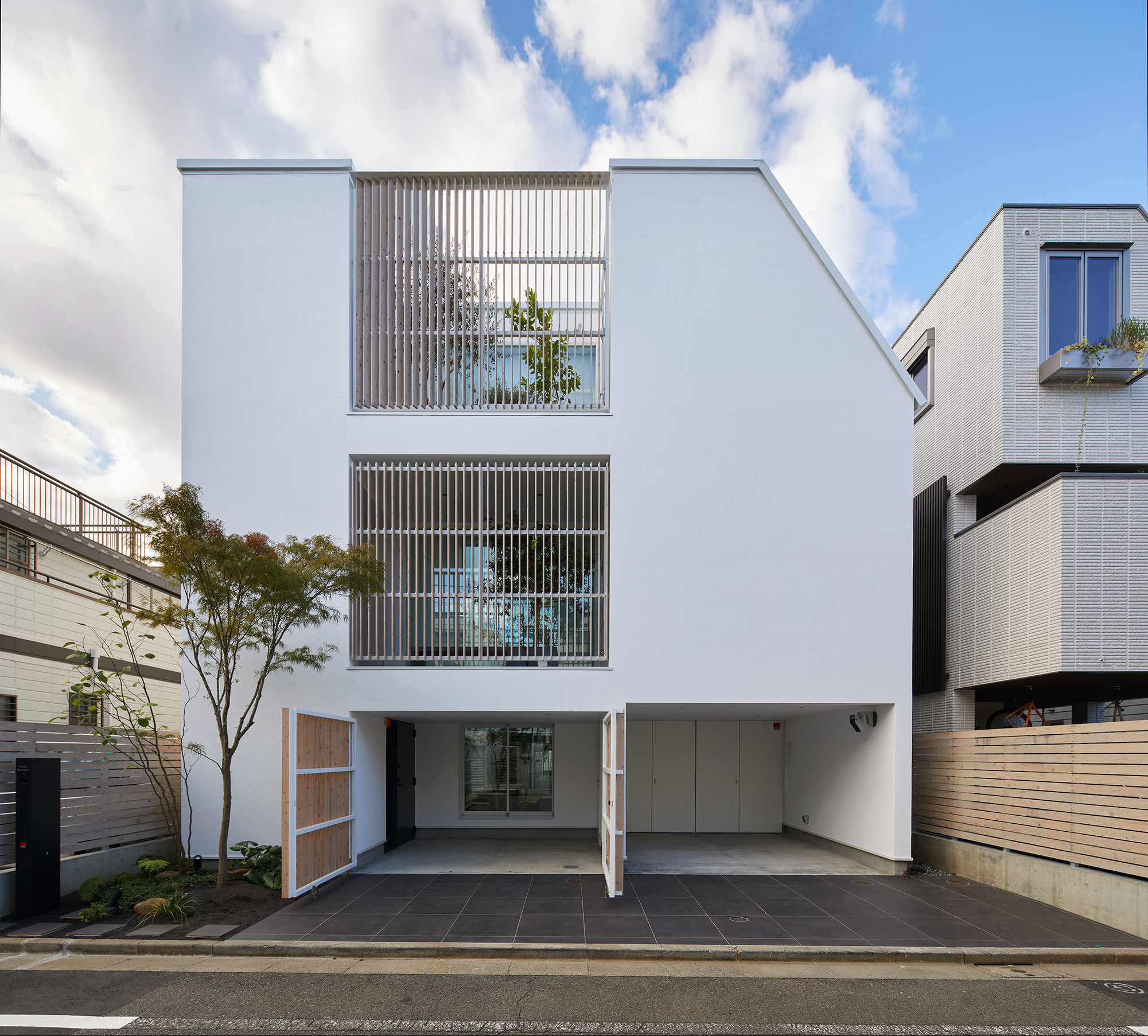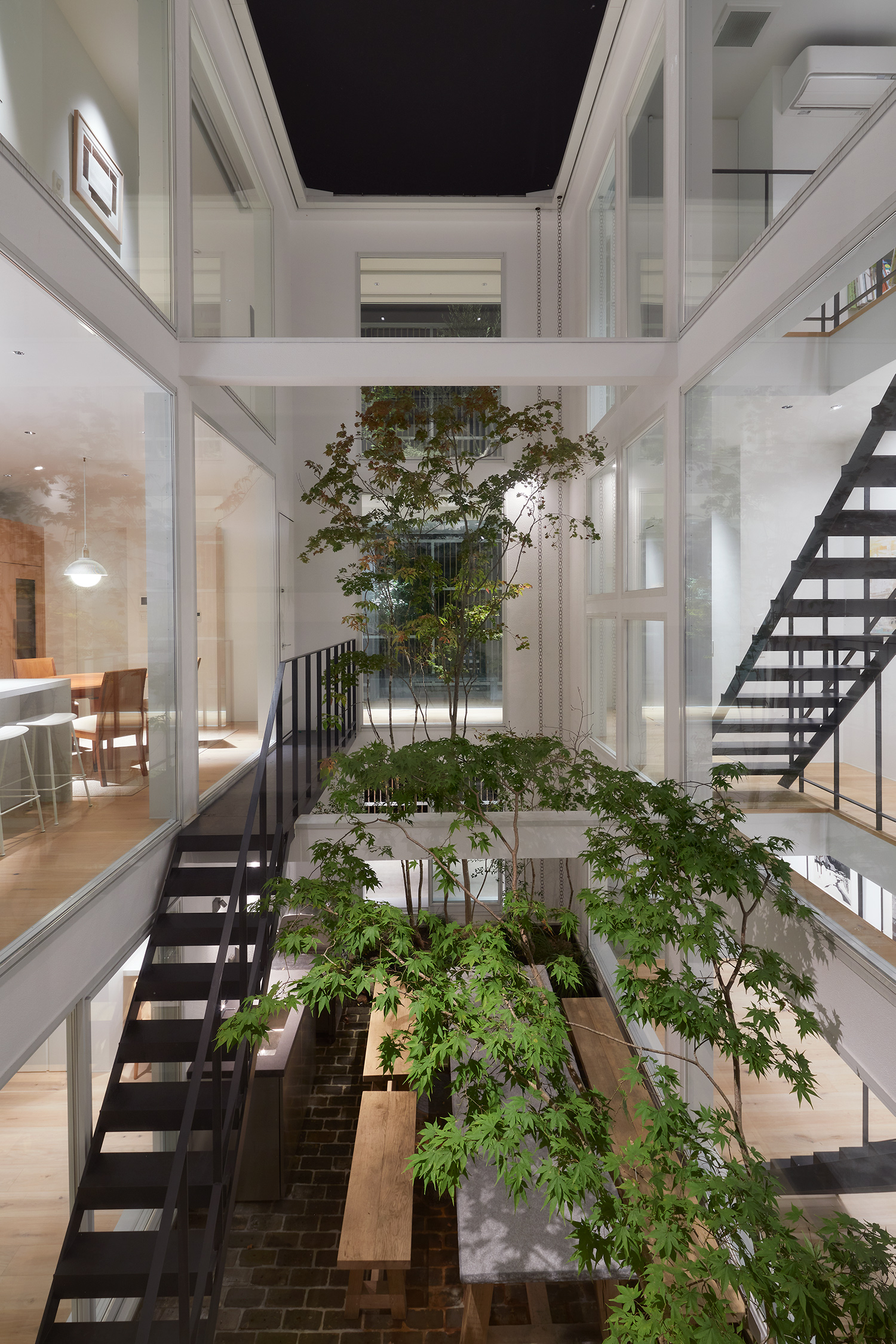 이 집은 약 10평의 중정이 있는 3층 높이의 주택이다. 중정은 유리창을통해 각 공간을 시각적으로 연결하며, 가족들이 서로의 존재를 섬세하게 느낄 수 있도록 한다. 마당에는 3층에 이르는 낙엽수, 낮은 나무들과 덤불들이 함께 심어져 있다. 야외로 연결되는 중정의 계단과 기둥은 실내와 같은 색으로 설정하여 전체적인 통일감을 준다. 유리창의 크기는 극대화되어 중정의 안과 밖의 구분을 최소화해 일상생활에서 마당을 실용적으로 활용할 수 있는 집이다.