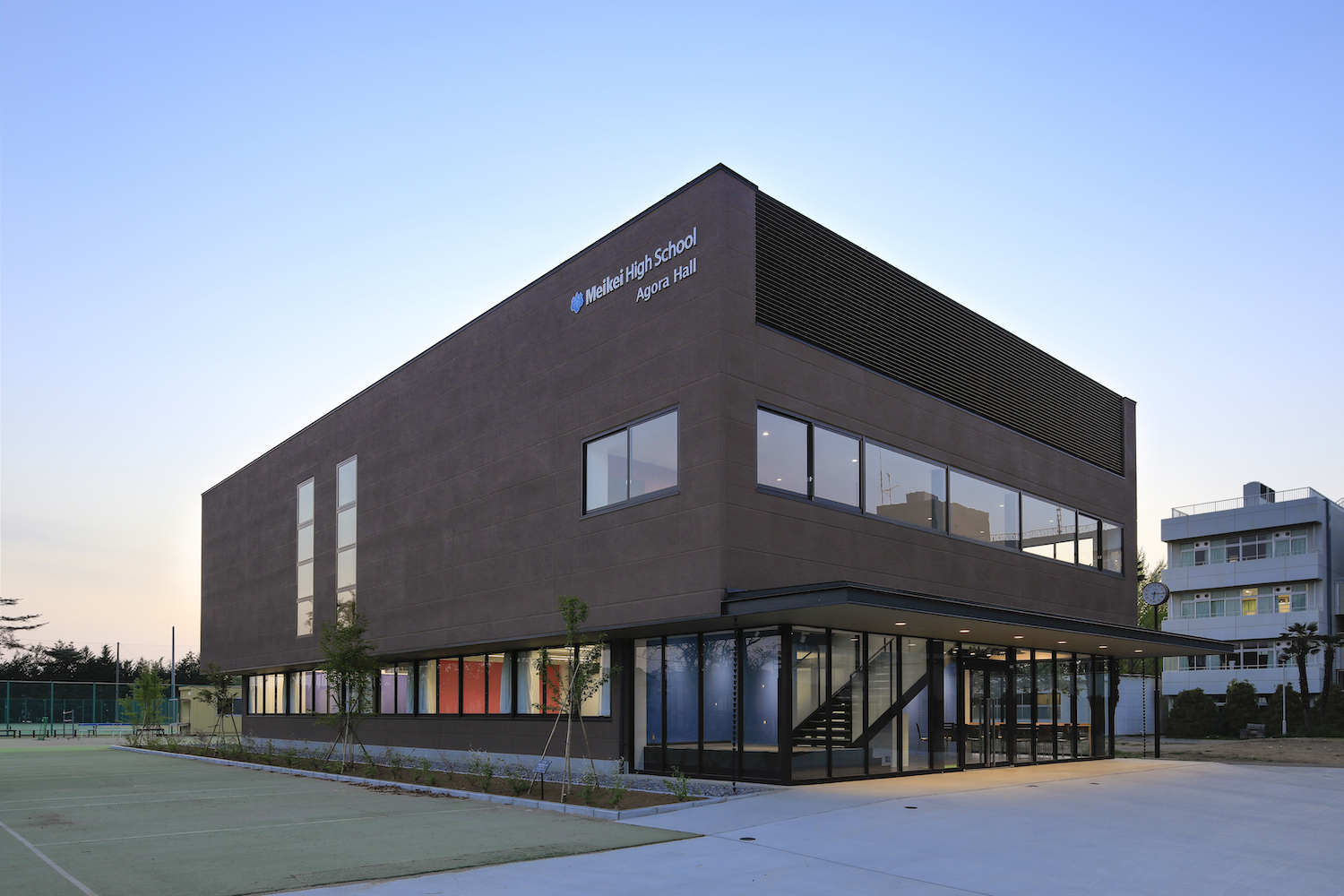 쓰쿠바 과학도시에 설립된 메이케이 고등학교는 세계에서 활약할 수 있는 인재 양성을 목적으로 설립됐다. 이 사업은 설립 30주년 및 국제 바칼로레아 학교(International Baccalaureat School) 인증을 계기로 실현됐다. 지상 1층에는 다양한 교육 프로그램을 위해 이동식 벽으로 분리된 휴게실과 작은 교실이 있다. 위층에는 300개의 이동식 좌석이 있는 갤러리 겸 다목적 아고라 홀이 있다. 외부와 내부 공간의 색은 프쿠바 지역의 전통적인 색상이다.