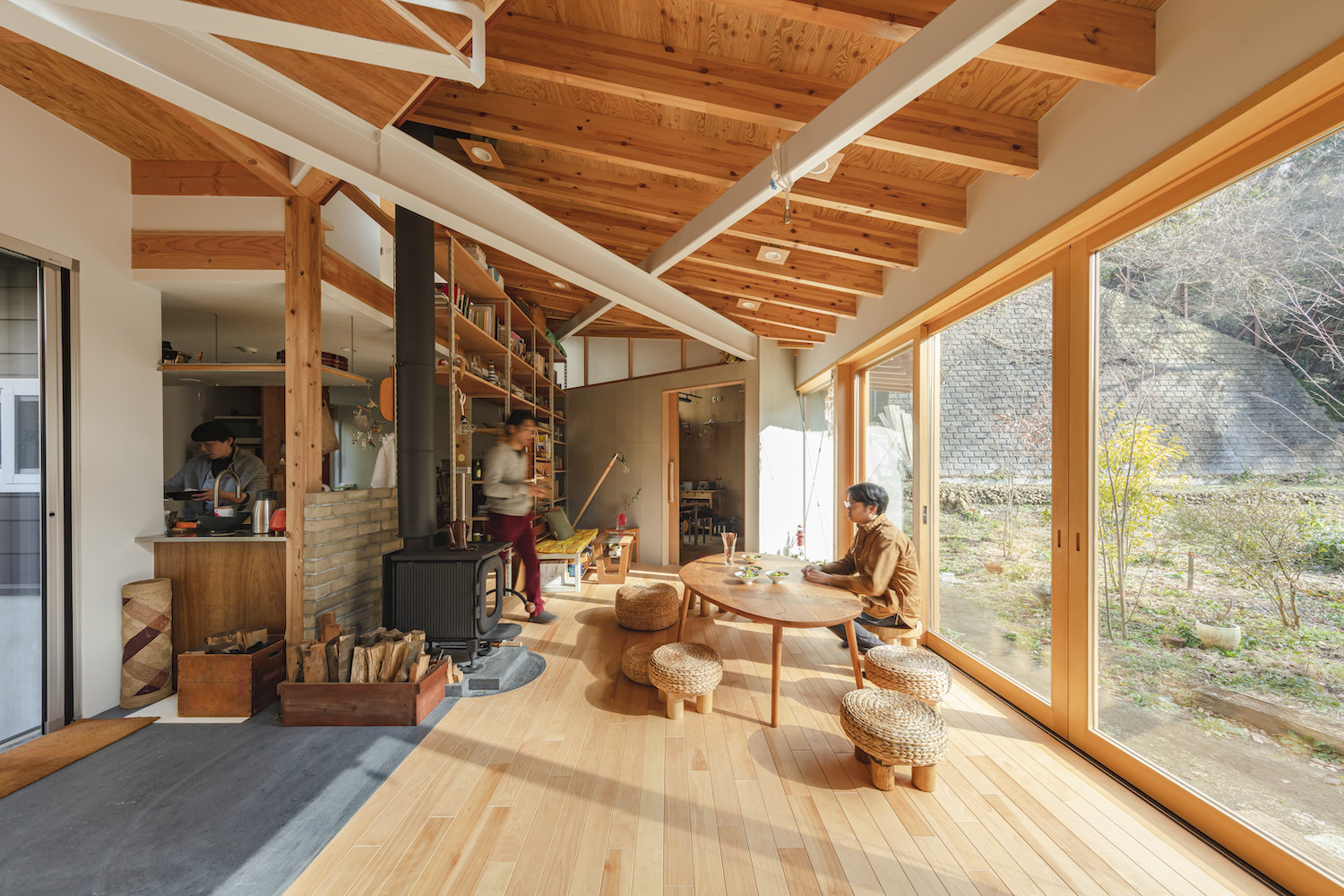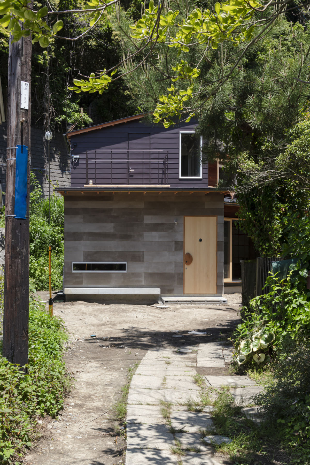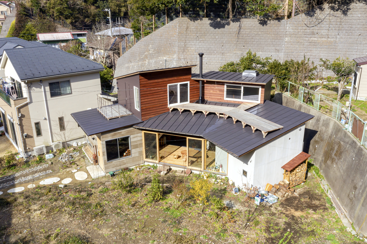 대지는 가마쿠라 인근 미우라 구릉지대의 계곡 끝에 있다. 옹벽을 따라 주변에 초목이 무성하게 자란 지역이다. 현대 미술가인 건축주는 대지의 환경을 좋아했다. 이에 따라 건축설계는 대지 환경과 거주자의 생활습관 사이의 조화를 연구하는 데서 시작됐다. 건축가는 건축주와 함께 자재를 만들고자 했다. 서로 불완전하게 연결된 옹벽, 구조 부재, 건축 재료들은 거주자들에게 삶을 느낄 기회를 만들었다.