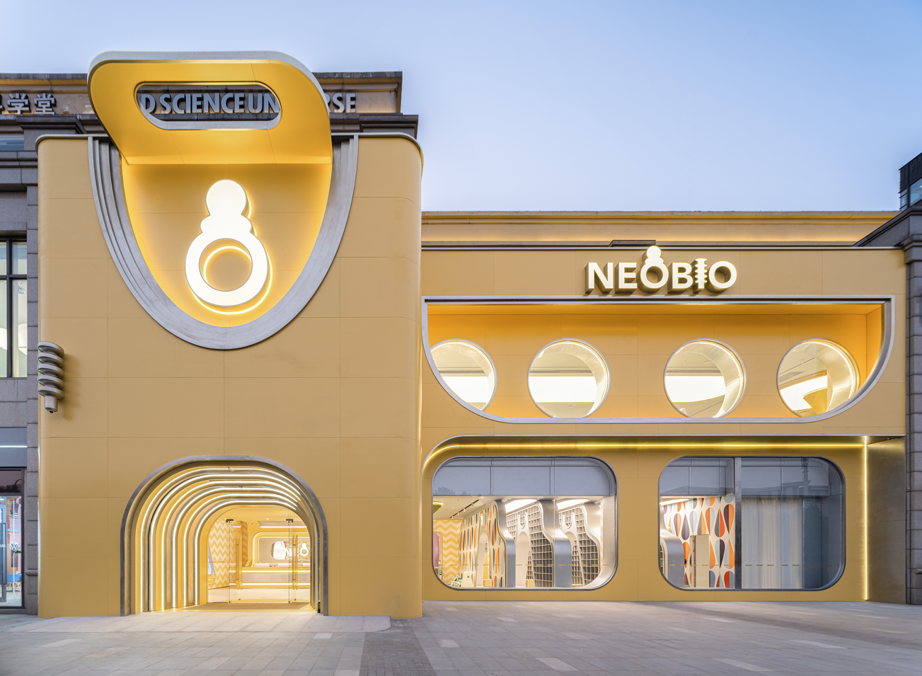 이 프로젝트는 상하이 푸둥신구에 있는 장장에 위치해 있다. 상하이에 문을 여는 네오비오의 키즈 카페에 새로운 매장은 지역의 건축환경과 대조되는 외계 생물체 같은 독특한 모습을 특징으로 한다. 층층이 쌓이고 비정형의 입구는 빛과 그림자의 대비가 뒤섞인 동굴을 모방했다. 주 공간은 풍부한 깊이와 인테리어 가구가 담긴 2단의 볼륨으로 구성된다. 자유로운 순환로는 일련의 공간을 연결하며, 다양한 측면에서 이용자에 중점을 두고 있다.