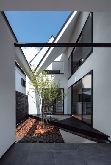 남쪽에 정원이 조성된 ㄱ자 형태로 배치된 이 집은 모녀를 위해 계획됐다. 1층에는 어머니 침실, 거실 및 다이닝 공간과 주방, 욕실이 있고 딸을 위한 공간은 2층에 배치됐다. 정원은 아늑한 분위기를 더하기 위해 나무 울타리로 둘러싸여 있고, 처마 밑에는 햇빛과 그늘이 잘 어우러지도록 돌출된 처마의 일부를 잘라낸 것이 특징인 집이다.