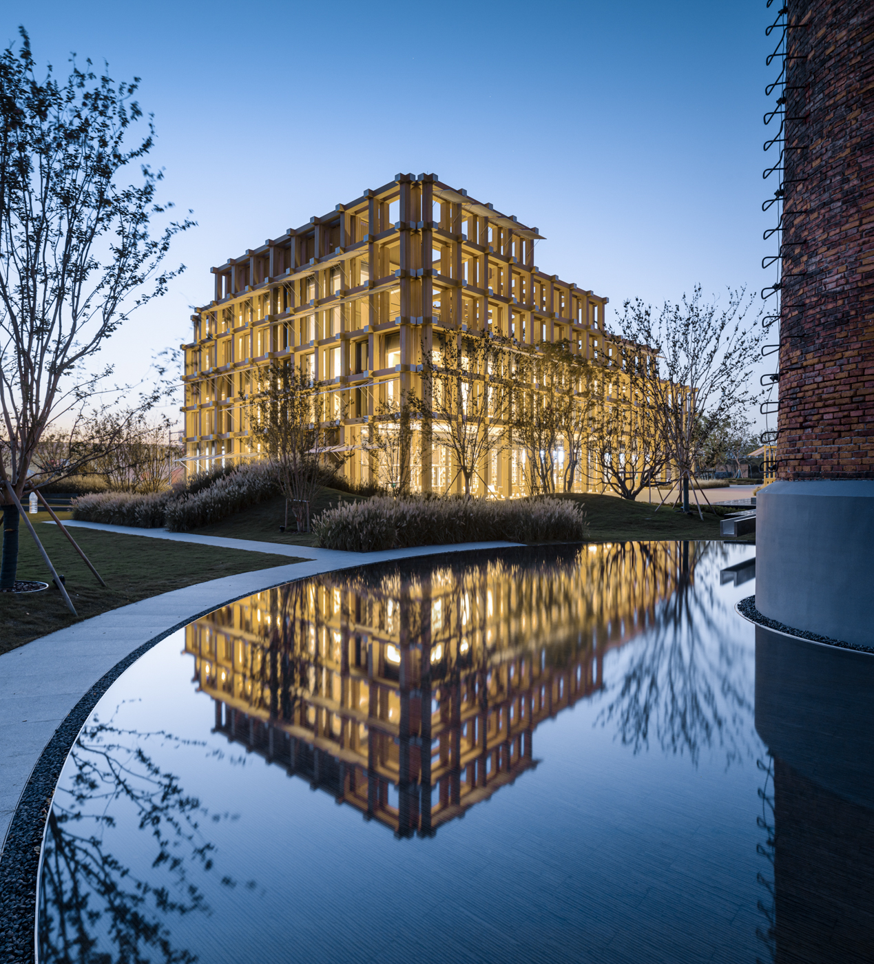 Rice wine has a long history and is deeply embedded in the culture of the Shaoxing region. The project site is the center of the region’s rice wine business, and the existing building, which was once a rice wine production workshop, has been remodeled, with vestiges such as red brick chimneys retained