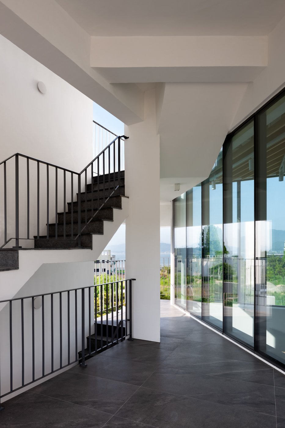 이에스씨 프레임은 북동쪽으로 후포항, 남서쪽으로는 마니산 끝자락이 조망되는 강화도 해안도에 접한 사이트에 계획된 베이커리 카페와 펜션 프로젝트다. 건축주는 서해임에도 불구하고 온종일 바닷물이 빠지지 않고, 새우잡이 철에는 그물을 펼친 어선들이 마치 하얀 요트들이 떠 있는 것 같은 풍경을 보고 경치를 선사할 수 있는 공간을 요구했다.