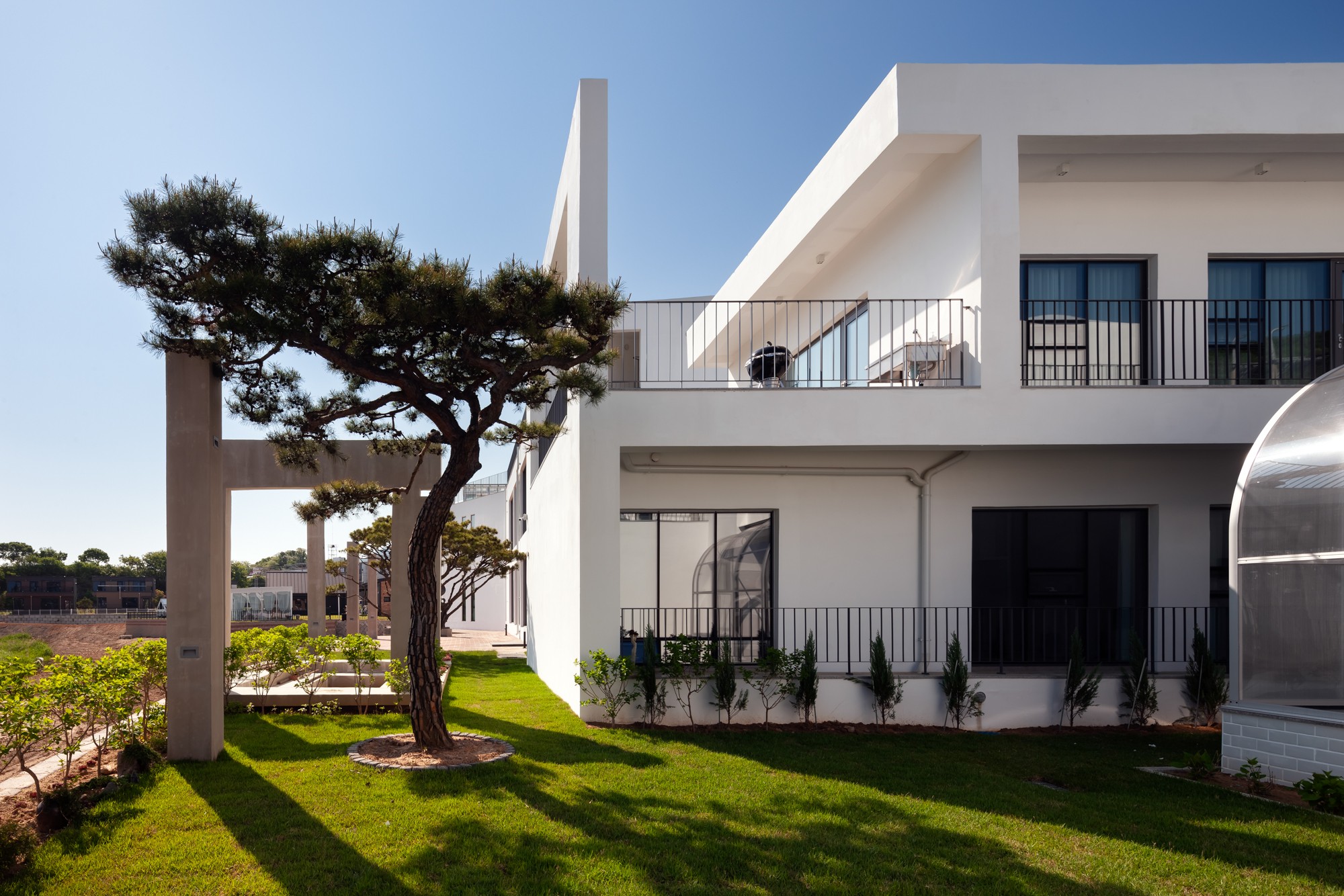 With the landscape as the protagonist, hexahedrons made up of the floor, walls, and ceiling were stacked on the site, and a frame was installed for each element to bring the mountains, sea, and fields that change with the seasons and time of day into the interior. Flowers, trees, sculptures, and various shapes of the sky are encased in between the buildings. The walls (ground) were painted white inside and out so that the ever-changing natural figures would stand out, and frames were created throughout the interior to display the couple’s succulents. Each potted plant looks like a miniaturized version of mountains and fields, which is also a gift from the client to visitors. The building, whose name stands for “Everyday Special Coffee,” reflects the hope that closed visual devices (VISTA) will become a tool to reset the urban rigidity of those who visit this place to the heart of nature (ESC). Although it was not intended at the time of design, the wishing rock, which was not visible from the ground level, quietly appeared as a figure in all the living room windows of the building. We hope that people who visit this place will relax and find peace of mind while looking at the wishing rock.