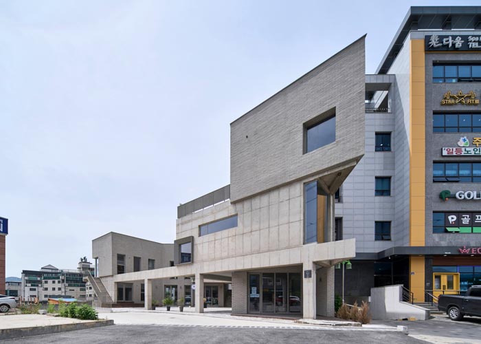 Damun-ri is the most densely populated neighborhood in Yongmun-myeon, Yangpyeong-gun. Mom’s Garden Center is located in Yongmun, a quiet streetscape. The client, born and raised in Yongmun, wanted to build neighborhood facilities on the land he inherited. The biggest challenge for the architects was to come up with an ideal form of neighborhood facilities located on the outskirts. Unlike neighborhood facilities in Seoul, where the population density is high and the building-to-land ratio and floor area ratio are maximized, the architects had to determine a space and scale that could be consumed locally.