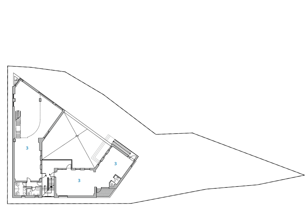 건축가는 엘리베이터를 이용하지 않더라도 사용 제한이 크지 않은 3층 규모로 계획했다. 3층은 2층과 복층으로 계획하였고 마당에서 이어지는 별도의 동선과 베란다 등을 설치해 부족한 접지성을 보완하였다.