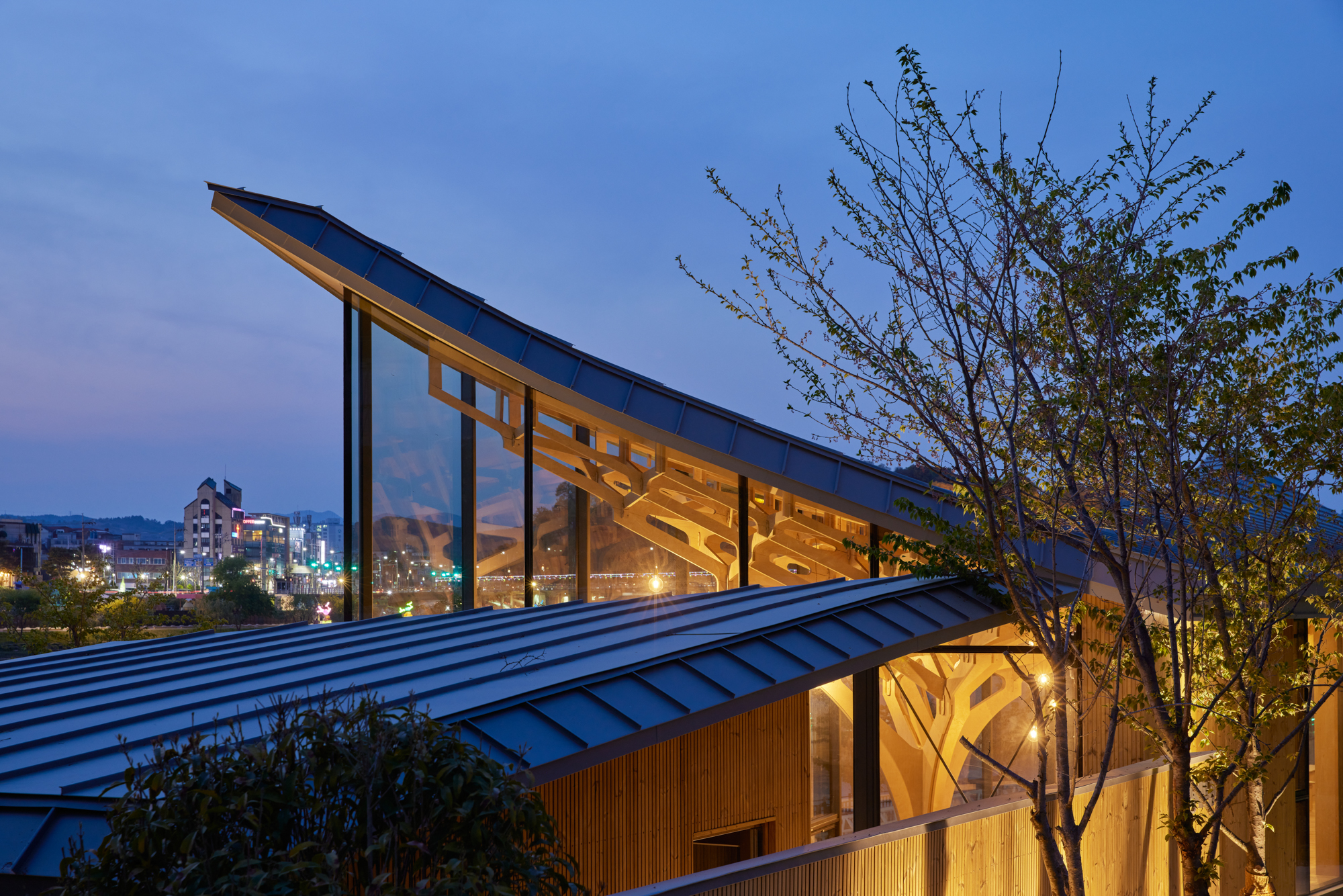 The architecture in Jinju is building its identity through traditional Korean architecture and modern interpretation, based on the memories of the Namgang River and the historicity of Chokseok-ru (14th century). The site of the Pavilion of Floating Lights is located along the Namgang River, facing the Jinju National Museum (1984) and Gyeongnam Culture & Art Center (1988) on the east and west sides, respectively. The architects accepted the challenge and inherited the perspectives of the two modern architectures, which reinterpreted traditional architecture, and viewed tradition from the perspective of creation rather than inheritance.