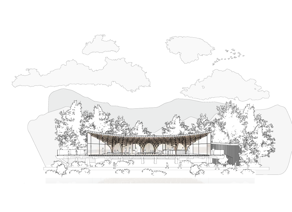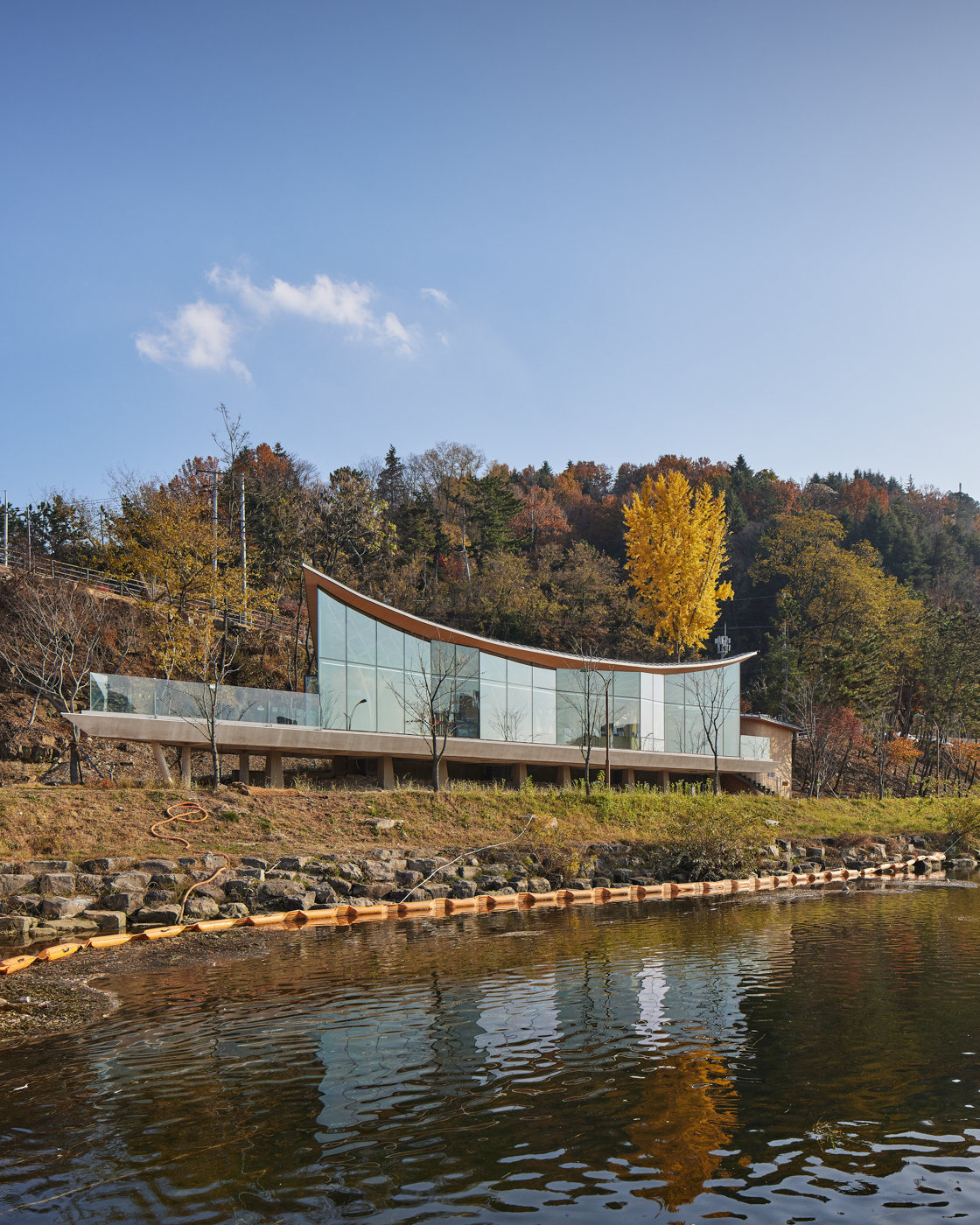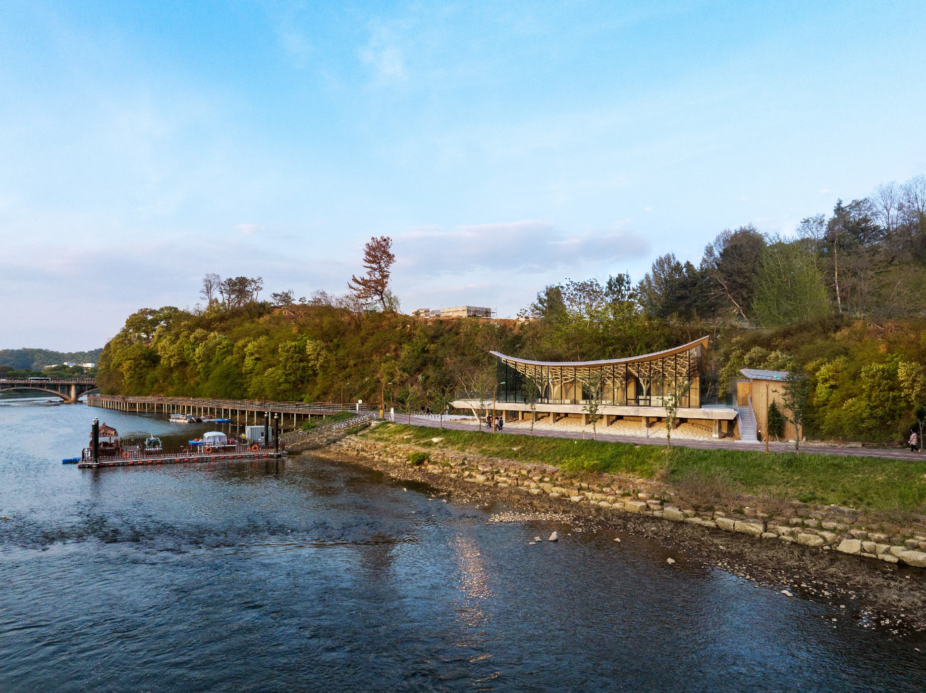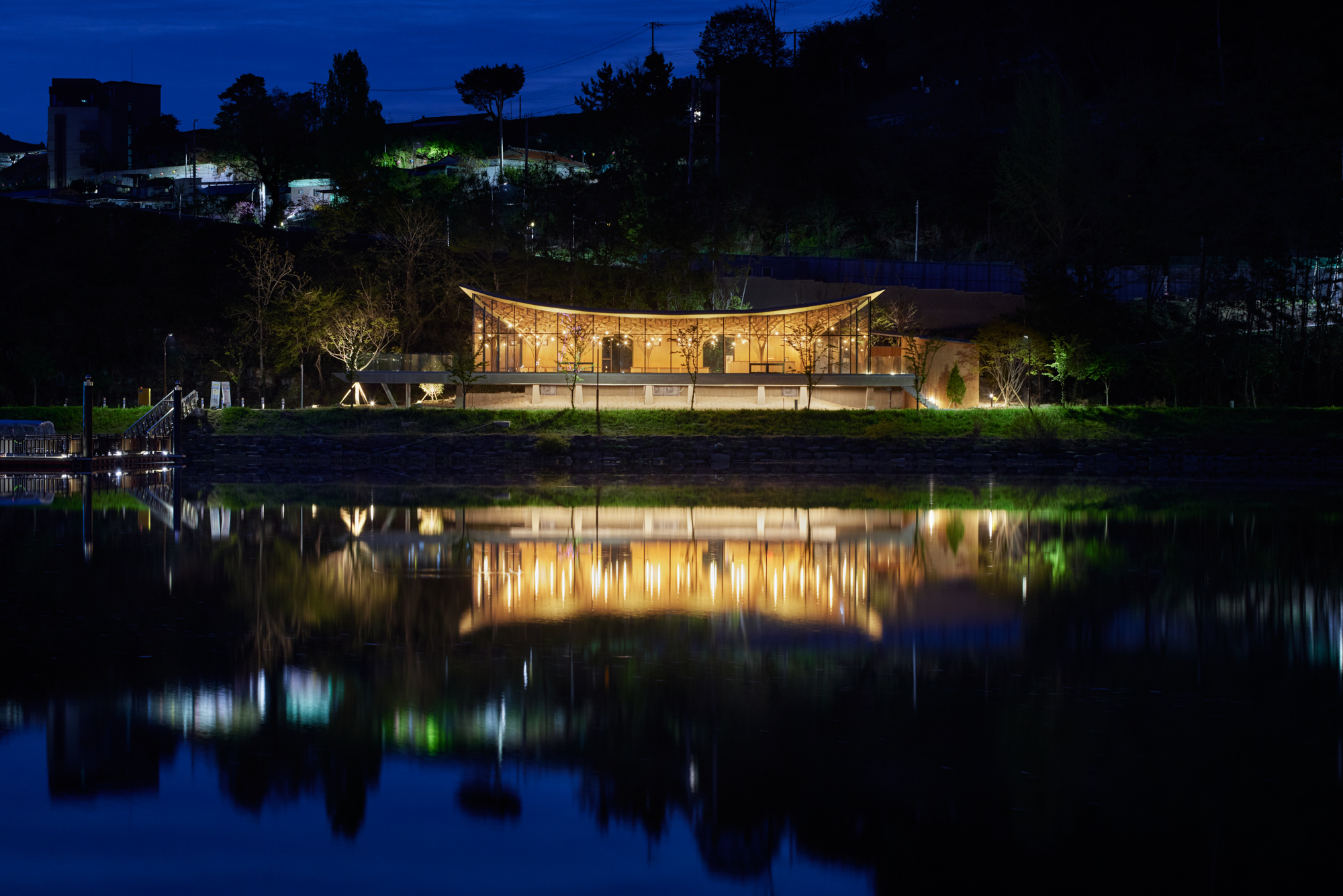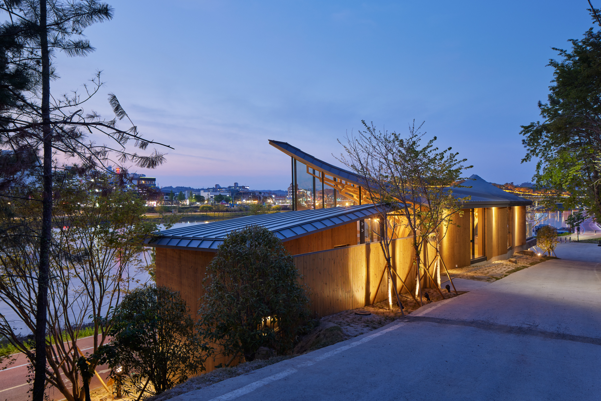 The architecture in Jinju is building its identity through traditional Korean architecture and modern interpretation, based on the memories of the Namgang River and the historicity of Chokseok-ru (14th century). The site of the Pavilion of Floating Lights is located along the Namgang River, facing the Jinju National Museum (1984) and Gyeongnam Culture & Art Center (1988) on the east and west sides, respectively. The architects accepted the challenge and inherited the perspectives of the two modern architectures, which reinterpreted traditional architecture, and viewed tradition from the perspective of creation rather than inheritance.