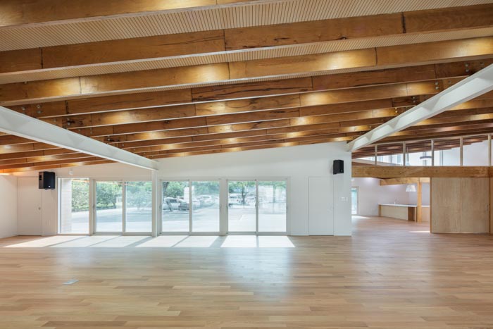대지의 입구에 자리한 새로운 문화센터 건물은 기존의 면사무소의 접근성을 보완하여 심리적, 물리적 장벽을 낮췄다. 1층에서 2층으로 이어진 경사지붕의 형태와 목구조가 노출된 내부공간은 접근 장벽을 낮추는 형태적인 요소다. 1층의 다목적 프로그램실과 공용부엌을 통해 주민들의 문화접근성을 높였고, 외부의 열린 마당은 주민 누구나 쉬어갈 수 있는 공간이자 인근의 다른 공간과 연계한 활동이 가능하다. 공간 내의 질서를 재구축하기 위해 보차분리를 명확하게 제시한 점이 돋보인다. 기본에는 보행과 차량의 주차 및 이동동선이 혼재하여 보행약자의 위험성이 항상 내재되어 있었다. 건축가는 이를 개선하기 위해 외부 주차공간의 주차대수는 유지한 채 보행전용 통로를 마련하여 공공건축으로서의 접근성을 최대로 확보했다.