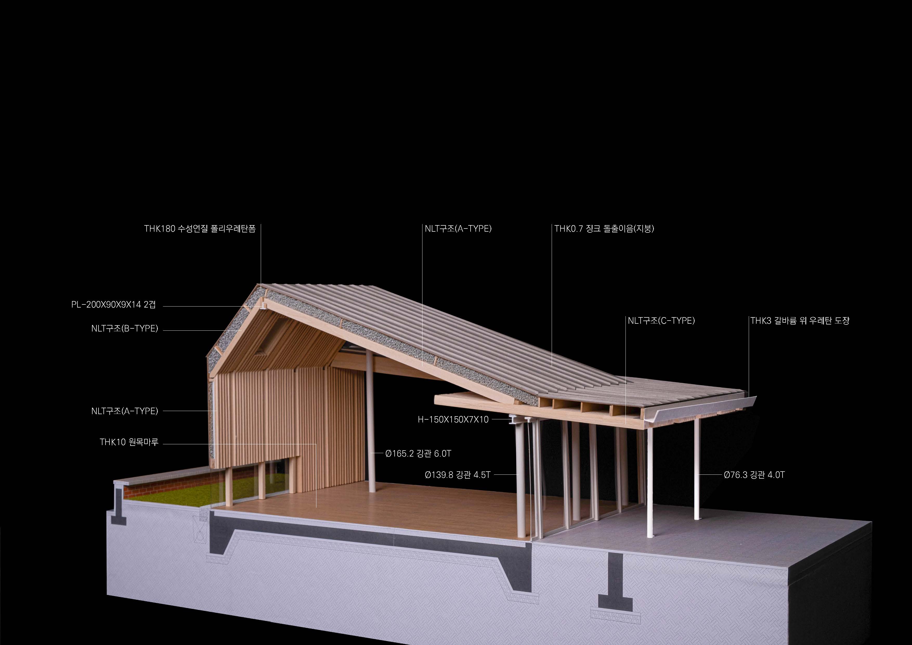 Munsan-eup Community Center is located in the center of the community, giving it a geographical advantage and a high value to the local community. The architects planned the community center as a gathering place for residents where facilities such as the village senior center and village cultural center, as well as the public health branch of the neighboring town office, are concentrated.
