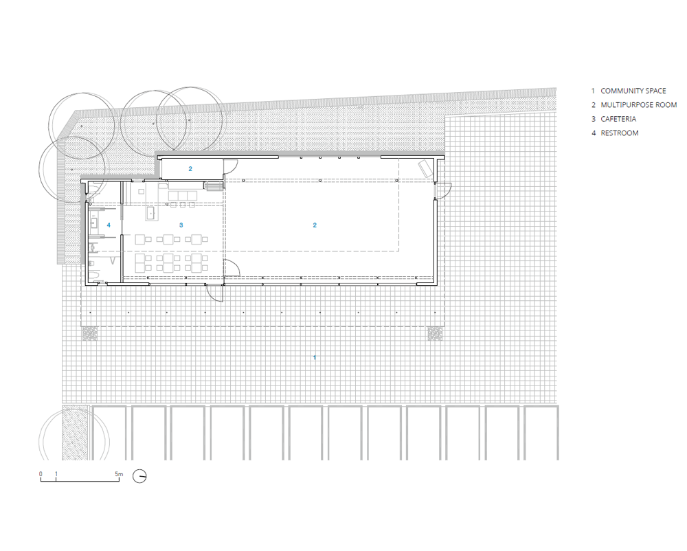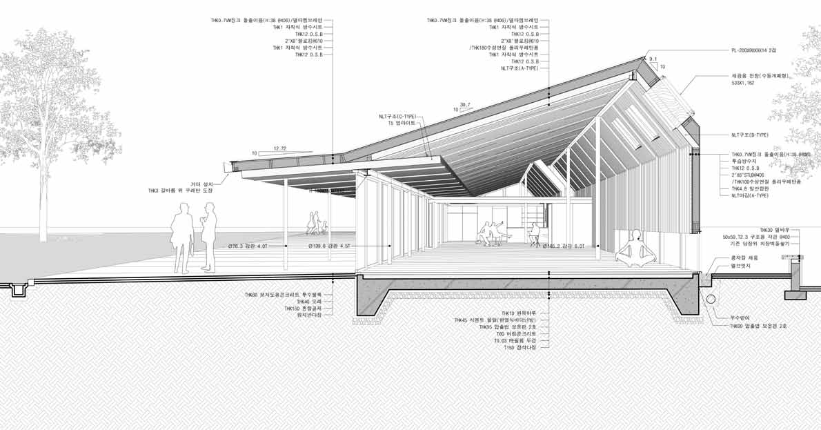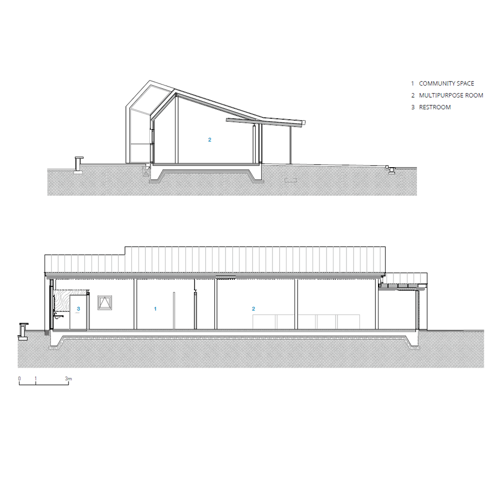Munsan-eup Community Center is located in the center of the community, giving it a geographical advantage and a high value to the local community. The architects planned the community center as a gathering place for residents where facilities such as the village senior center and village cultural center, as well as the public health branch of the neighboring town office, are concentrated.