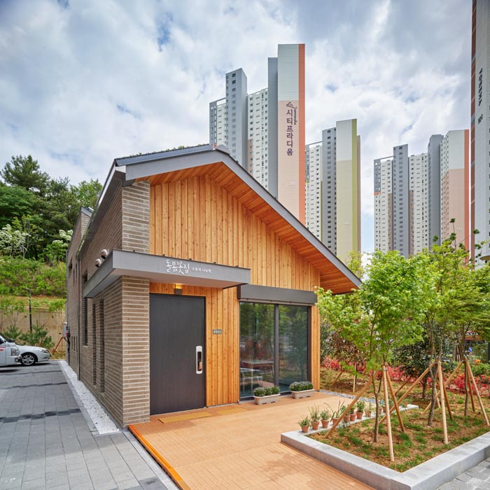 Jinju Dolbom Flower Shop is a public building that uses a wooden structure to form a warm and welcoming space for locals, supporting various programs and providing a space to experience emotional safety. It includes a gardening space, rest area, and reception room for locals, and is expected to serve as a base facility to promote harmony among residents and build a dense social safety net within the community.