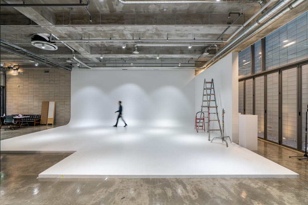 벽은 사용자의 위치에 따라 달라지는 편집된 풍경을 보여 주고, 일조의 시간대에 따라 다채로운 그림자를 연출하여 생경하게 느껴지는 스크린이 되기도 한다. 업무 시간 동안 마주하는 지루한 벽이 아니라 일상의 틈에 시선을 멈추고 ‘감상하는 벽’이 되길 바랐다. 가장 중요한 촬영 스튜디오는 넓은 공간과 높은 층고를 위해 지하 2층에 배치하였다. 지하 공간에 과감하게 3개의 선큰을 교차로 배치하여 빛을 끌어 들이고, 자연 환기가 가능한 쾌적하고 에너지 효율이 높은 환경을 계획하였다. 계단은 도로에 면한 주차장과 선큰의 여유 공간에 마련된 건축물의 진입로와 겸한다. 계단은 양옆이 열려 있어 마치 공중을 걷는 듯하다. 계단 끝의 서울 스카이라인이 보이는 전망대와 넓은 데크는 탁 트인 풍경 속에서 비일상의 여유를 주리라 생각한다.