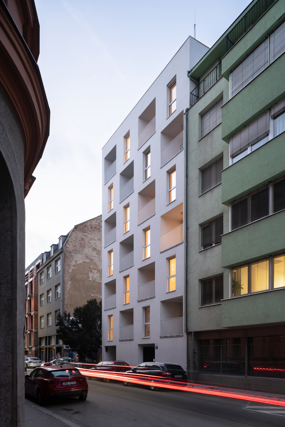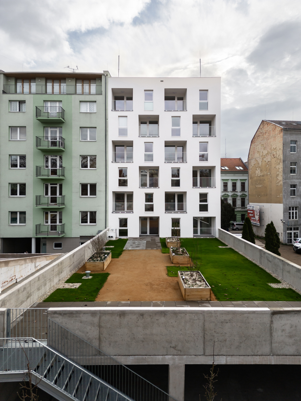 Apartment Block Bratislavská 51 is a rental housing development project for low-income people. The main goal was to ensure a high quality of life for vulnerable groups and young people at a reasonable cost. In the city center of Brno, Czech Republic, there is a street with unfinished residential facilities left behind from before the war. This street, called the Brno Bronx, is being transformed from its former state into a modern residential area.