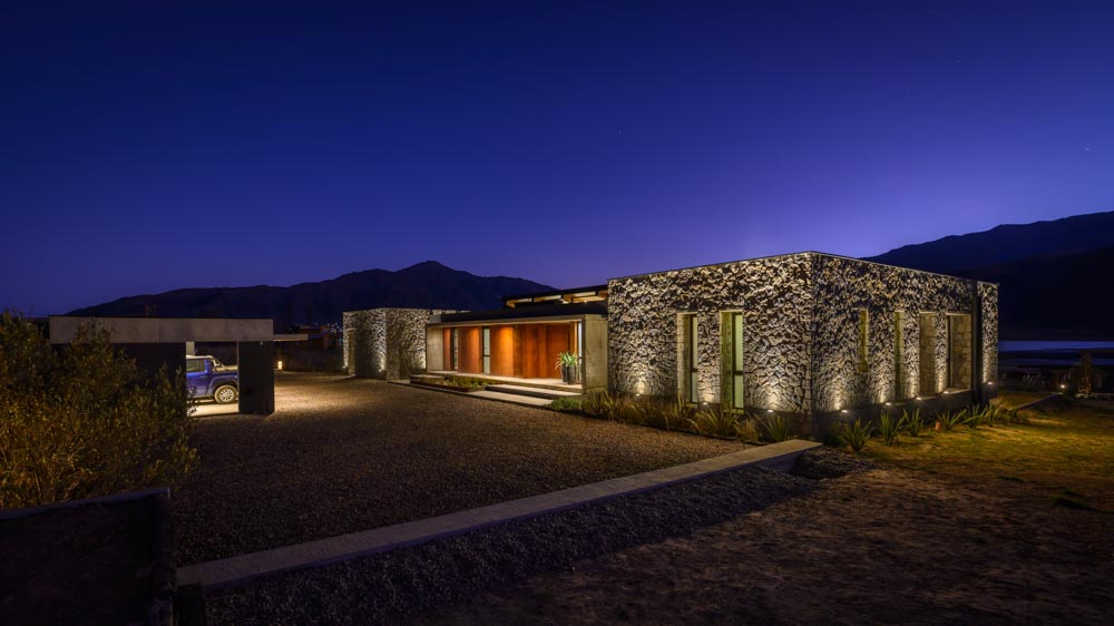 카사 피에드라는 아르헨티나의 광활한 자연환경과 공존하는 별장이다. 투쿠만의 프라이빗한 마을 라스 시링기야스(Las Siringuillas)의 가장 높은 곳에 자리한 대지에서는 라 앙고스투라(La Angostura) 댐 등의 풍경을 파노라마로 볼 수 있다. 이 여름 별장은 사막의 일교차가 큰 기후를 고려해 자연환경과 어우러지도록 계획됐다. 경치를 방해하지 않도록 단층으로 계획하고, 마치 땅 위에 나무 블록을 늘어놓은 듯한 형태로 디자인됐다. 공간의 성격에 맞게 세 개로 분할한 매스는 경사진 지형과 어우러진다. 스페인어로 돌을 의미하는 ‘피에드라(Piedra)’라는 이름처럼 지역에서 나는 석재로 외장을 마감하여 자연스러움을 더했다.