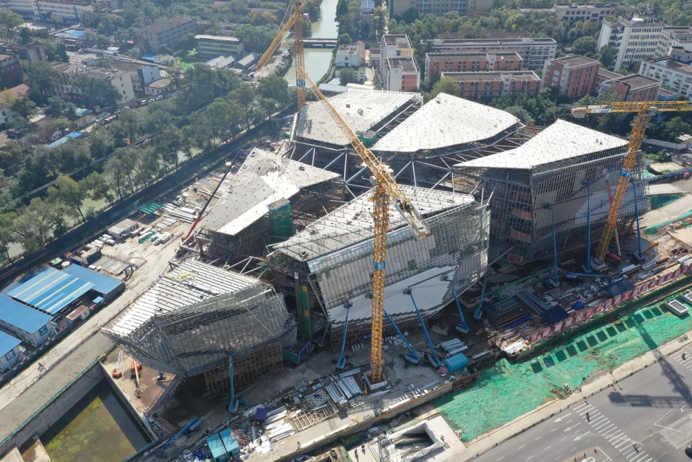 관람객을 반기는 넓은 캐노피의 주 출입구를 통해 건축물에 들어서면 중앙의 아트리움 공간을 만나게 된다. 아트리움을 가로지르는 브릿지는 목재로 마감하여 옛 청두의 물길에 놓인 다리를 표현했다. 화강석 마감의 솔리드한 매스를 균열처럼 가로지르는 유리창을 통해 주변의 도시와 조경을 조망할 수 있다. 박물관 외부 조경에는 고장에서 자라나는 식재와 수로를 계획했다. 건축물의 경계를 따라 이어진 미러 폰드 등의 수공간은 지역 유산인 쓰촨강과 둥펑 운하를 상징한다.