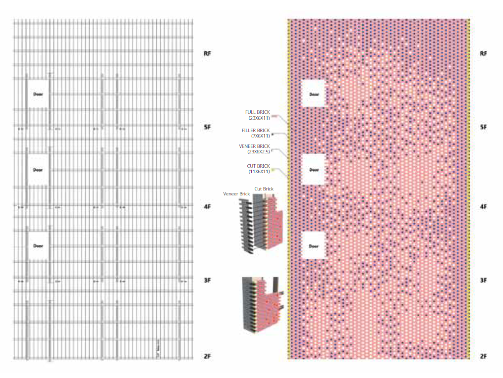 베일 하우스는 가오슝의 붉은색 벽돌 건축물을 현대적으로 재해석하여 주택이 마주한 다양한 문제를 입면 디자인을 통해 적극적으로 해결한다. 1899년 세워진 벽돌 공장은 가오슝을 번창시켰고 도시는 노동자로 붐볐다. 이러한 역사를 반영하듯 붉은 벽돌 건물은 가오슝에서 많이 찾아 볼 수 있지만 베일 하우스는 벽돌을 불규칙하게 비워 내 모던하게 디자인했다. 무게감 있는 재료인 벽돌을 사용해 가볍고 직물처럼 보이는 입면으로 완성한 것이다.