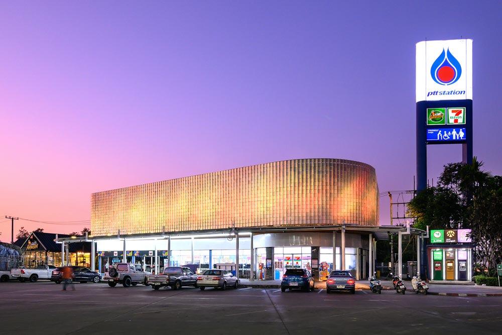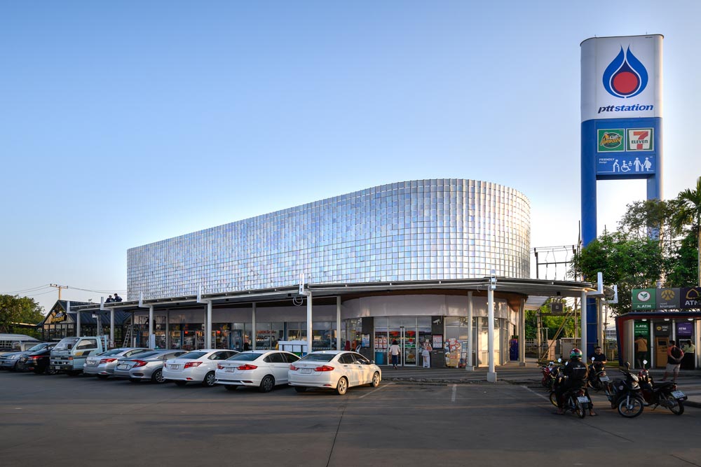 태국의 피티티 사라피 주유소는 치앙마이 장인의 손길로 리노베이션된 지역 주민을 위한 특별한 공간이다. 피티티 주유소의 디자인을 주관한 PTTOR의 파일럿 프로젝트로 진행된 피티티 사라피 주유소는 지역 사회에 공헌하는 공간을 목표로 시작됐다. 건축가는 공예에 중점을 두고 다양한 스케일의 프로젝트를 수행하며 기존 건물의 구조는 유지하되 기와를 사용한 새로운 외피 디자인을 적용했다. 기와를 건축 재료로 선정한 이유는 란나(Lanna) 건축 양식에서 사용되는 진흙 기와에서 감명을 받았기 때문이다. 기와 세라믹은 외벽에 흔히 쓰이는 재료여서 외장재로 사용하기 적합했다. 또한 다양한 공예품을 만드는 장인이 모여드는 치앙마이의 지역 특색을 반영하여, 장인이 수공예 기술을 발휘할 수 있는 재료를 선택할 수 있었다.