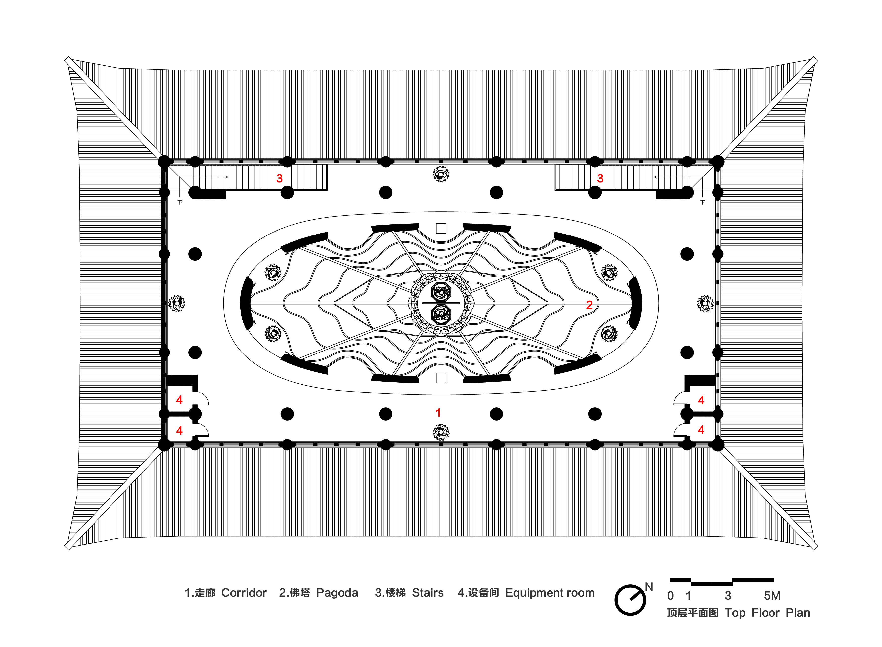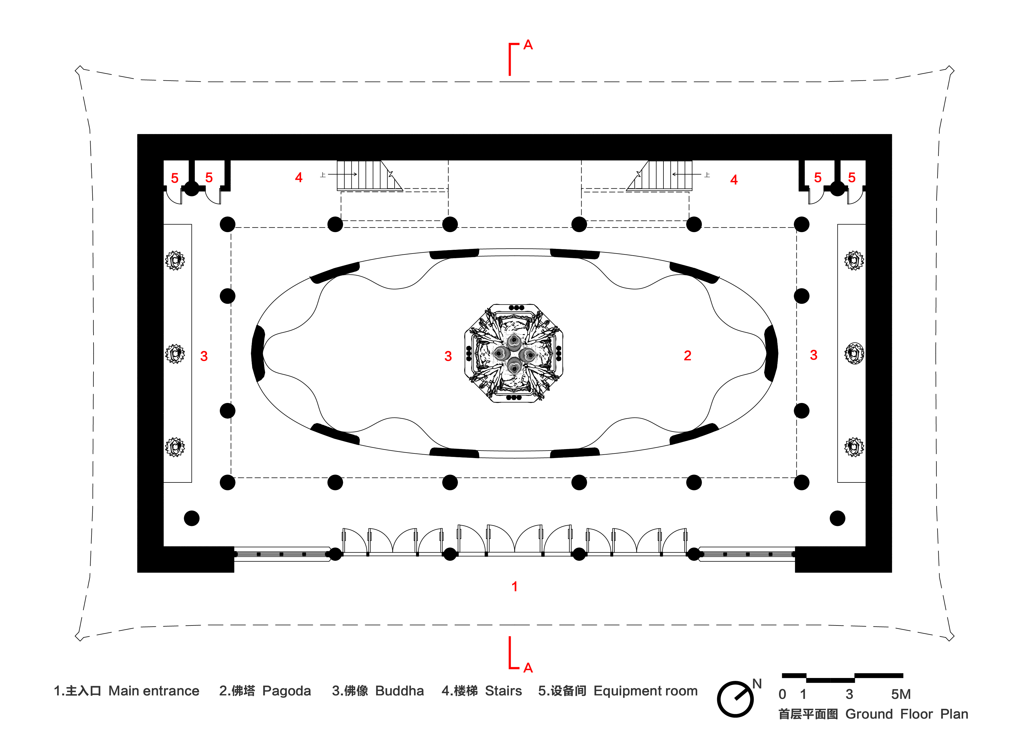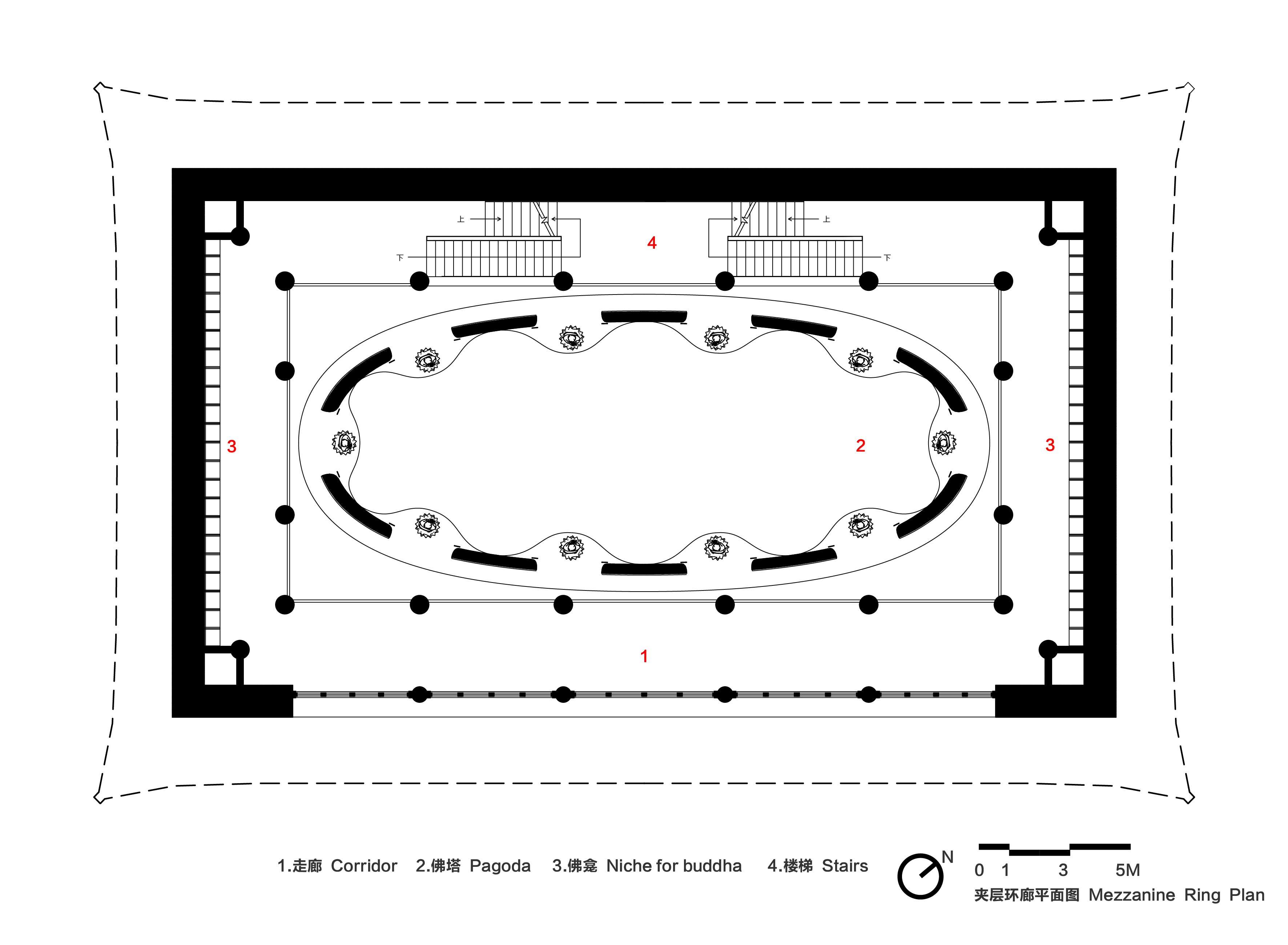 10m의 단차를 자연스럽게 극복하는 수단이다. 메인 홀의 목불 전시 공간은 ‘파고다’를 모티브로 디자인했다. 위로 갈수록