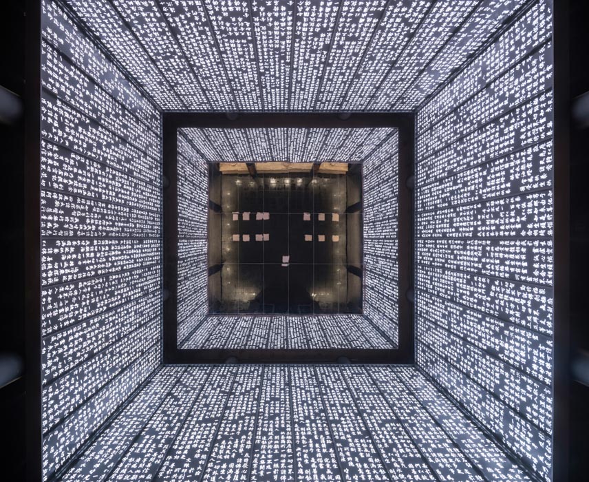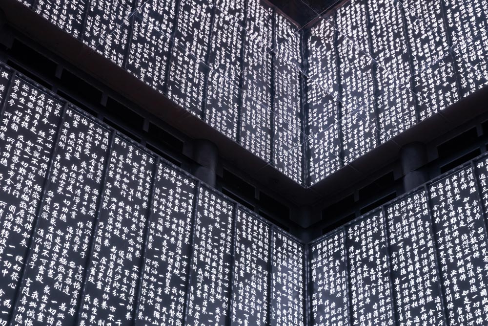 효과를 최대화했다. 교육장으로 활용하는 부속실의 벽에는 금속판에 새긴 경전이 11m 천장까지 이어져 있고, 조명을