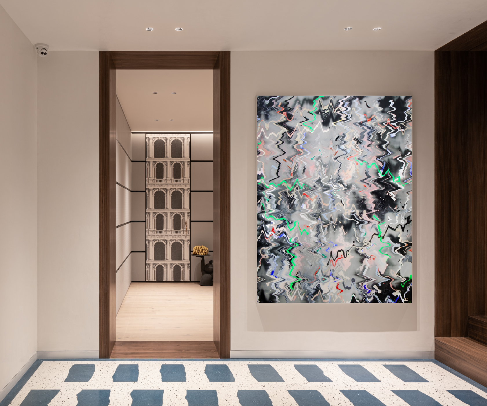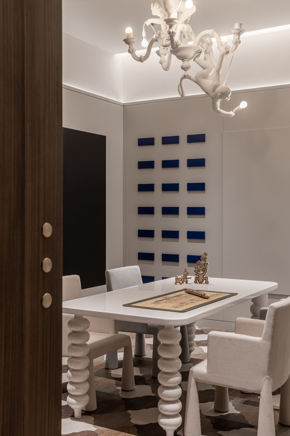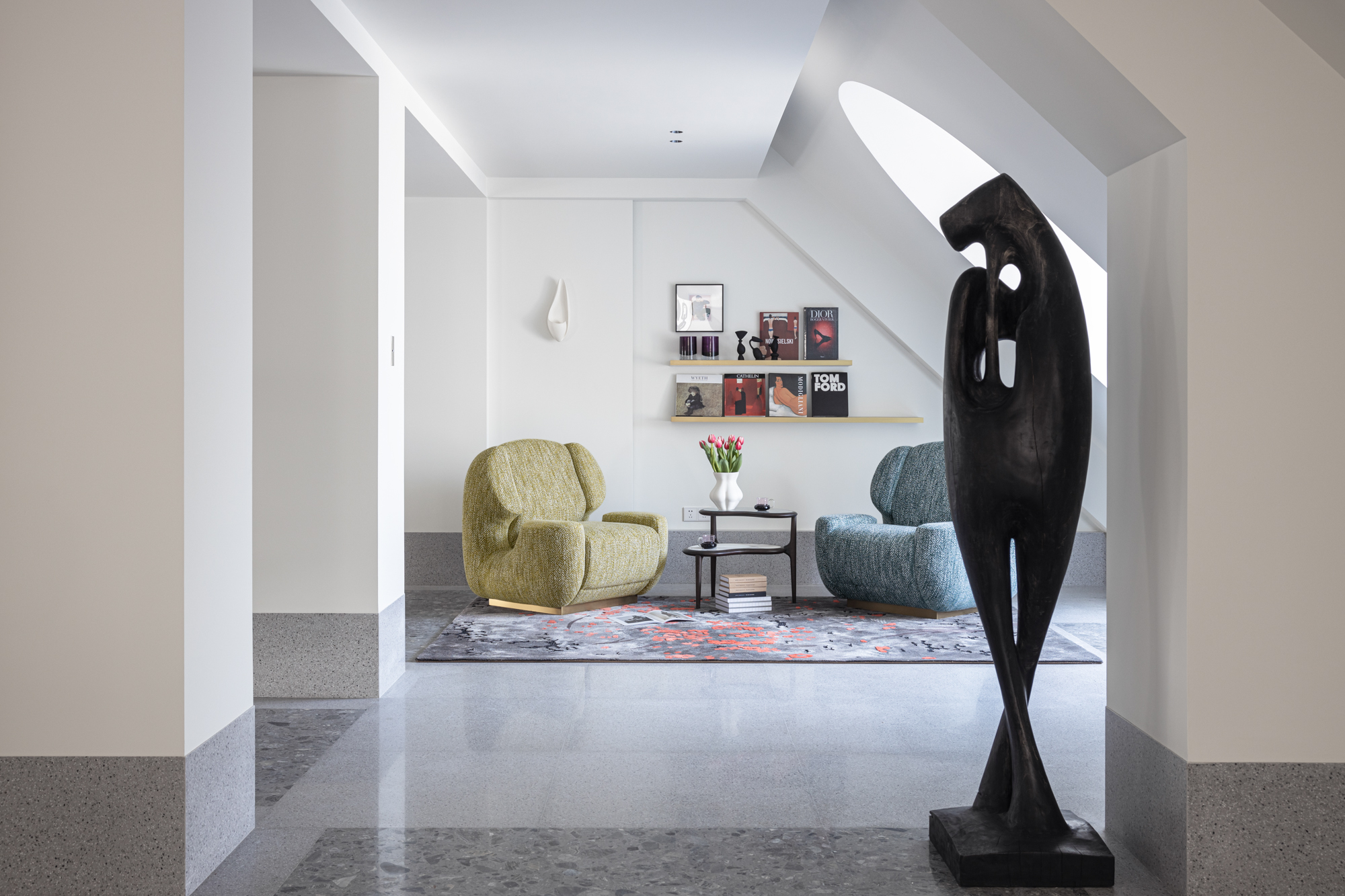 공존한다. 조각상, 조명, 그림 등의 예술품이 공간에 자연스럽게 녹아 있지만, 새하얀 도화지 같은 벽이 많이 보이도록