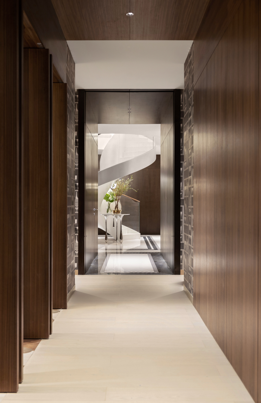 계획하여 조화를 이뤘다. 천장에서 쏟아지는 자연광 또한 건축물의 힘을 보여주는 디자인 요소로 활용했다. 정오가 되면 거실 천장에 있는 아치형의 오프닝에서 반원형의 자연광이 들어와 마치 돔 안에 서 있는 듯한 특별한 경험을 선사한다. 집의 중심에 있는 나선형 계단은 자칫 단조로울 수 있는 공간을 부드럽게 마무리했다. 갤러리 같은 다락, 아이를 위한 놀이방, 여가 공간이 포함된 마스터 침실은 다양한 마감재와 예술품이 어우러져, 삶과 예술이 균형을 이루고 있다.