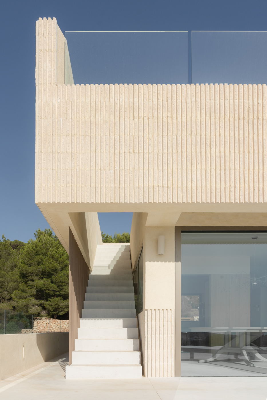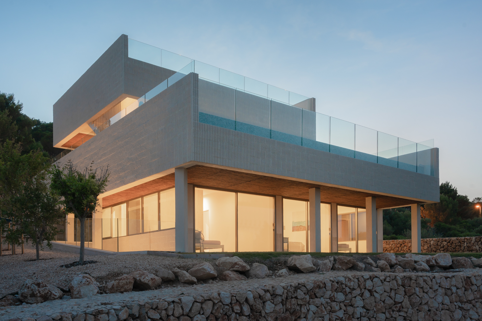 시프트 하우스는 스페인 메노르카의 바다를 바라보는 별장이다. ‘시프트(Shift)’라는 이름처럼 한정된 대지 안에서 다이내믹한 미학을 느낄 수 있도록 계획했다. 단순한 사각형 볼륨을 어긋나게 배치하고, 무게감 있는 콘크리트 매스는 창문을 선처럼 둘러 주변 환경에 어우러지는 수평적인 띠 형태로 완성했다. 세로로 홈이 새겨진 콘크리트 벽에 틈처럼 계획된 유리창은 흥미로운 대비감을 준다.