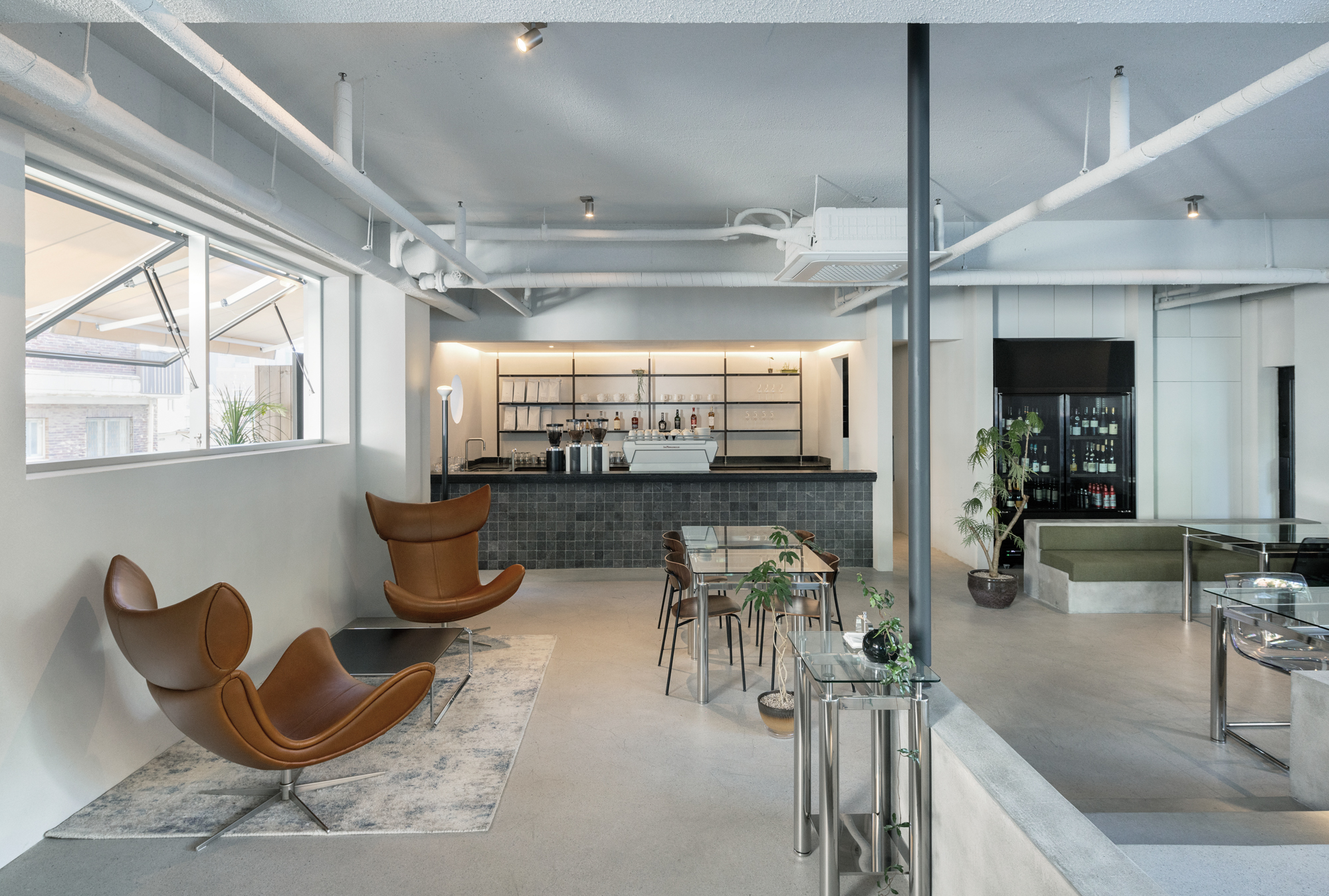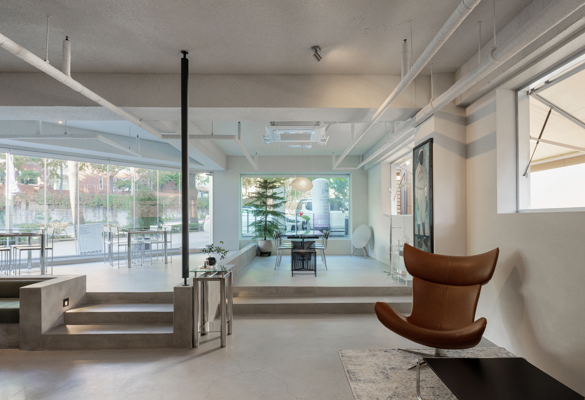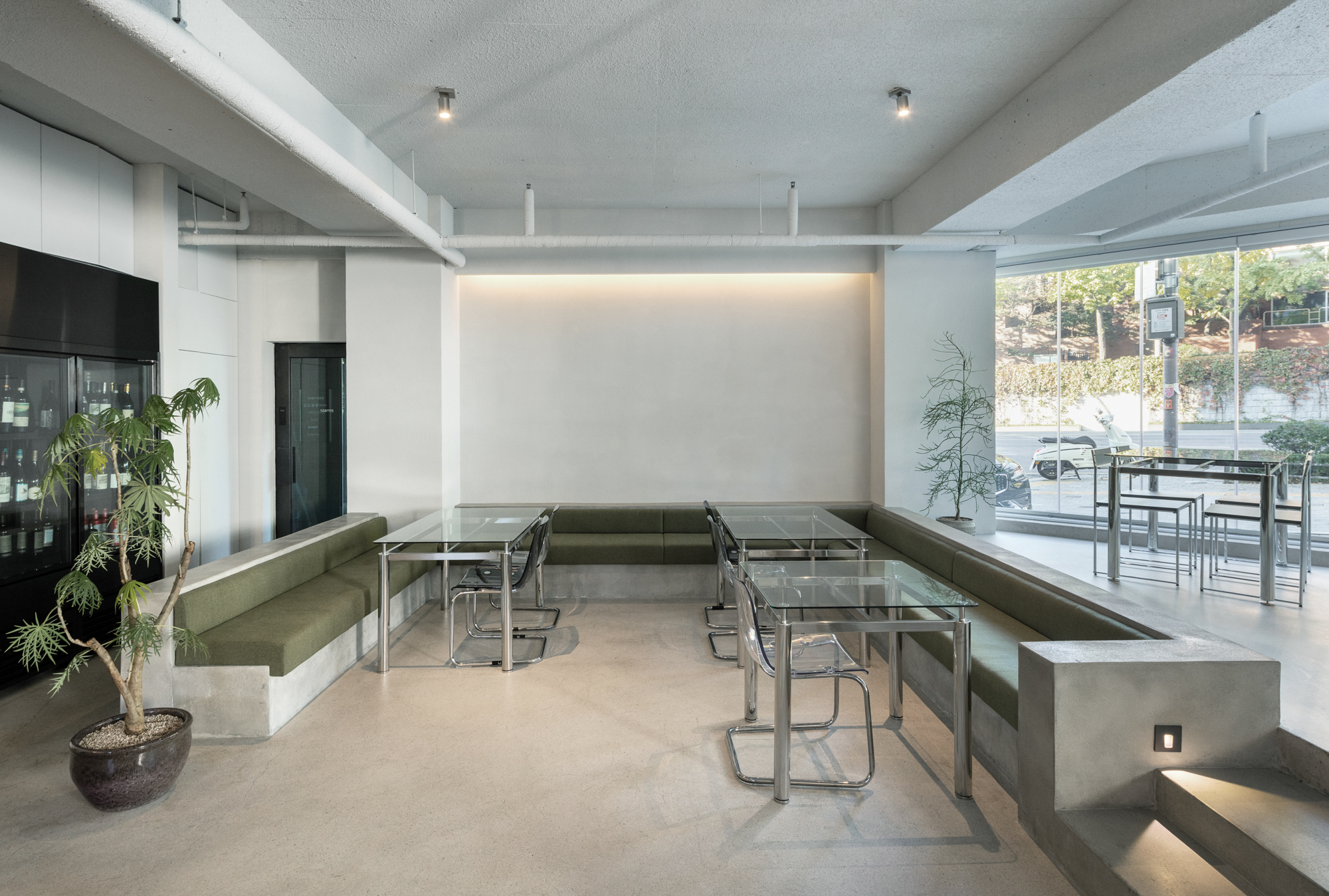 At first, this space had semi-basement conditions. However, we wanted to break the visual rules by creating a platform, half of which was on the same level as the outside and half on the same level as the inside. Therefore, when entering from the outside, the space is divided into layers, allowing each individual to feel a different sense of space. So, these elements meant that this space was “liberated” in a spatial sense. In this way, we wanted to create an open space that is not defined through the keyword of liberation.