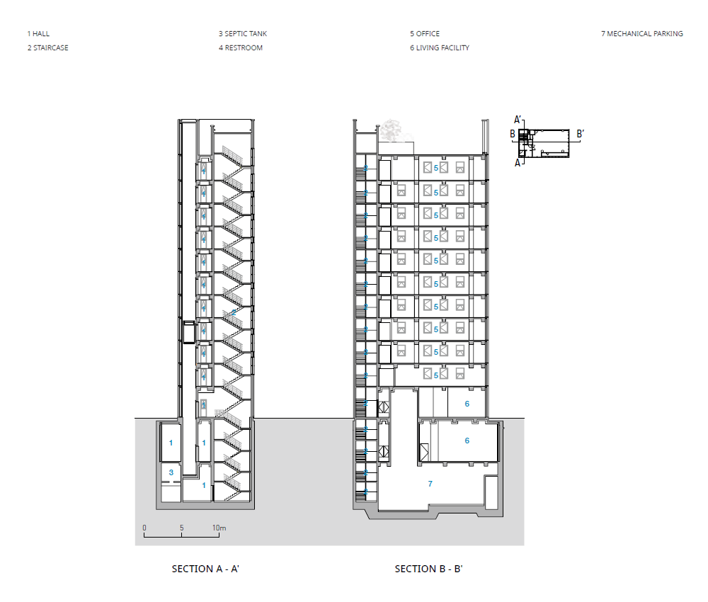 서울은 현재의 도시다. 도시의 많은 부분은 20세기 후반의 짧은 시간에 형성되었다. 엘트리타워가 위치한 강남은 1980년대부터 본격적으로 개발되기 시작하여 서울에서 가장 번화한 지역이 되었다. 그렇게 강남은 역사보다는 현재가 존재하는 곳이다. 기존 건물들은 철거되고 새로운 건물들이 끊임없이 올라가며 매일 새로운 상업시설이 생기고 사라진다. 과거는 사라지고, 현재와 미래가 혼란스럽게 공존한다. 기존 대지에는 1980년대에 지어졌을 것으로 추정되는 4층 규모의 벽돌 건물이 있었다. 이미 신축된 주변의 높은 건물 사이에서 조용히 자리를 지켜 왔던 옛 건물 대신, 건축주를 위한 새로운 오피스 용도의 건물을 지어야 했다.