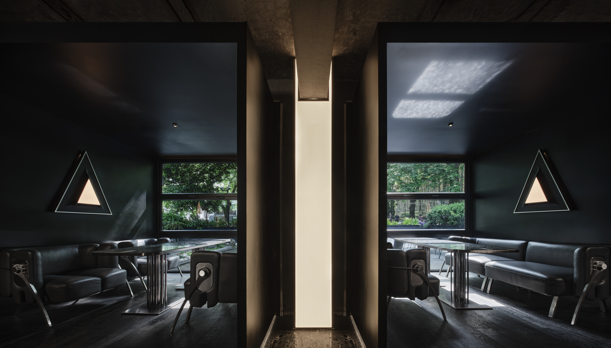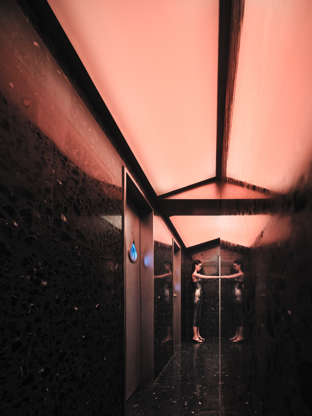 에이지 하우스는 시간의 이야기를 전하는 공간이다. 칭즈우 지역의 건축물은 대부분 농가였으나, 인근 호수의 아름다운 자연과 문화유산을 찾아 방문하는 관광객이 늘며 숙박시설과 상업시설이 들어서기 시작했다. 에이지 하우스 또한 녹지에 자리한 농가를 식당과 바 공간으로 리모델링한 프로젝트이다. 90년대부터 바를 운영하던 건축주는 20년간 이 지역의 흥망성쇠를 모두 목격했고, 옛 도시와 새로운 도시의 이야기가 쌓이는 캔버스 같은 공간을 만들길 원했다. 피그 디자인은 기존 구조는 최대한 보존하되, 새로운 세대의 라이프 스타일을 반영한 공간을 설계했다. 기존의 흰색 외장재 대신 회색 벽돌을 사용한 파사드 디자인은 차분한 거리의 색채에 자연스럽게 어우러진다. 원형의 출입구는 마치 다른 세계로 향하는 문처럼 신비로운 느낌을 준다. 천장으로 이어지는 와인 수납 공간과 기하학적인 디테일은 철학적인 콘셉트를 펼치는 피그 디자인의 미학을 경험할 수 있는 공간이다.