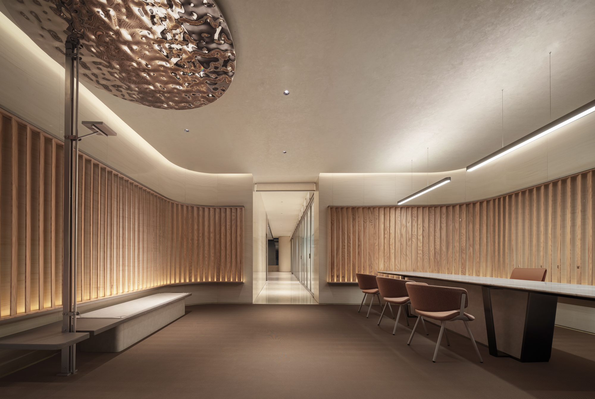 중국의 부동산 개발 업체 씨알 랜드(CR Land)는 혁신적인 브랜드 가치를 반영한 세계적인 수준의 복합시설을 계획했다. 상업, 주거, 숙박, 업무시설이 포함된 대규모 개발 사업을 디자인 트렌드를 이끌 공간으로 계획하는 것이 목표였다. 토모 디자인은 ‘믹스 랜드(Mix Land)’라는 키워드로 브랜드를 새롭게 정의했다. 효율적인 레이아웃과 함께, 세 가지 공간적 테마를 통해 주변 바다를 닮은 강렬한 시각적 경험을 디자인했다. ‘믹스 랜드 인 갤러리(Mix Land In Gallery)’에서는 바다에서 영감을 받은 다이내믹한 곡선으로 특별한 전시 경험을 제공한다. ‘믹스 랜드 인 파크(Mix Land In Park)’는 다양한 미팅에 활용될 업무 공간으로, 바다를 연상시키는 파란 카펫과 산호 장식을 적용했다. ‘믹스 랜드 인 워크(Mix Land In Work)’는 빛과 그림자를 활용한 정적인 공간으로, 아치형의 천장 등으로 클래식한 느낌을 준다. 바닥부터 천장까지 이어지는 높은 창문에서 보이는 광활한 바다의 모습은 회사가 지향하는 열린 사고와 닮아 있다.
